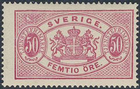 Sweden. Official Facit Tj22A ★★, 50 öre red, perf 13, type I. SEK 5000