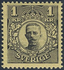 Sweden. Facit 77 ★★, 1 Krona black, watermark crown. Superb copy. SEK 2900