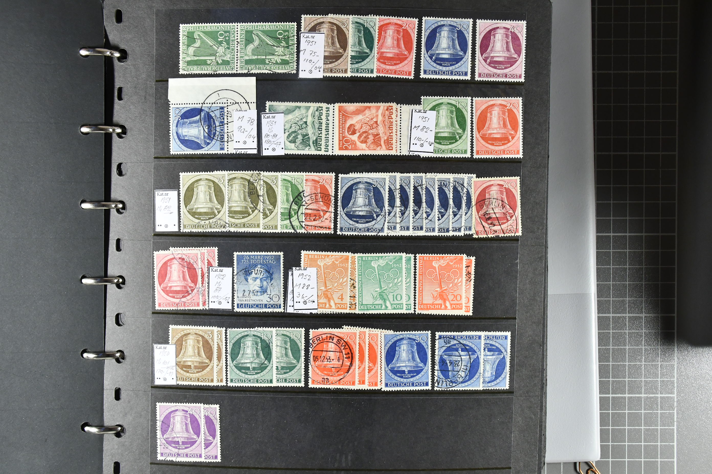Germany, Berlin. Collection/accumulation ★★/★/⊙ 1945–1985 in visir album. To some extent a stock material, however with many better stamps . Also a number of FDCs from the period included. Please see a selection of scans at www.philea.se. Favourable reserve. Mostly fine quality. (>2000)