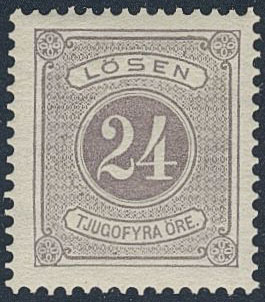 Sweden. Postage due Facit L17a ★, 24 öre grey-lilac, perf 13. SUPERB copy with almost invisible shade in gum. SEK 2800