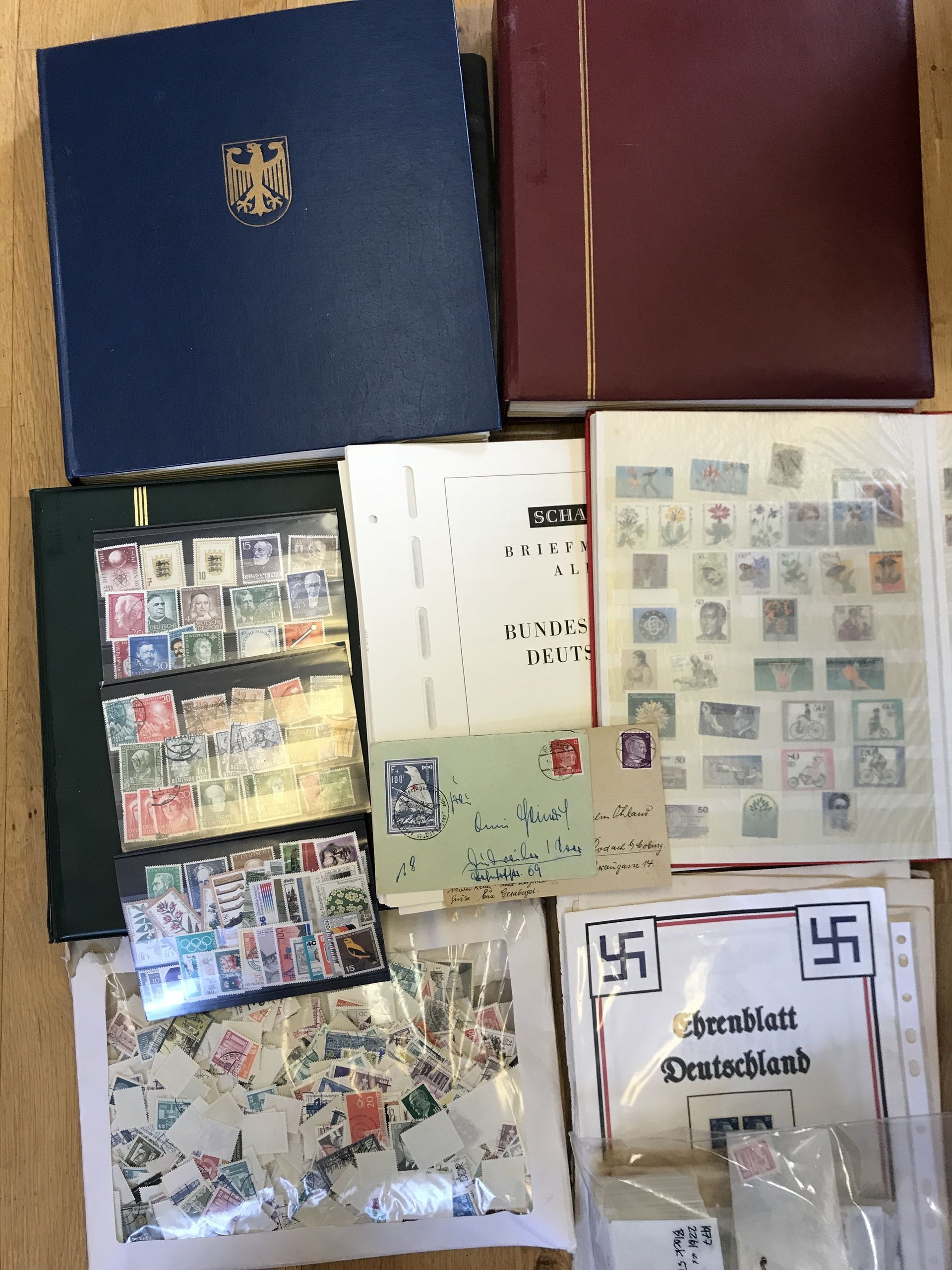 Germany, mixed. ★★/★/⊙. Box with much ** incl. collections Berlin 1955–90 and BRD 1956–1991 in Schaubek albums + leaves. 1000s of **/o DDR, some Reich, covers, etc. Approx. 11 kg.