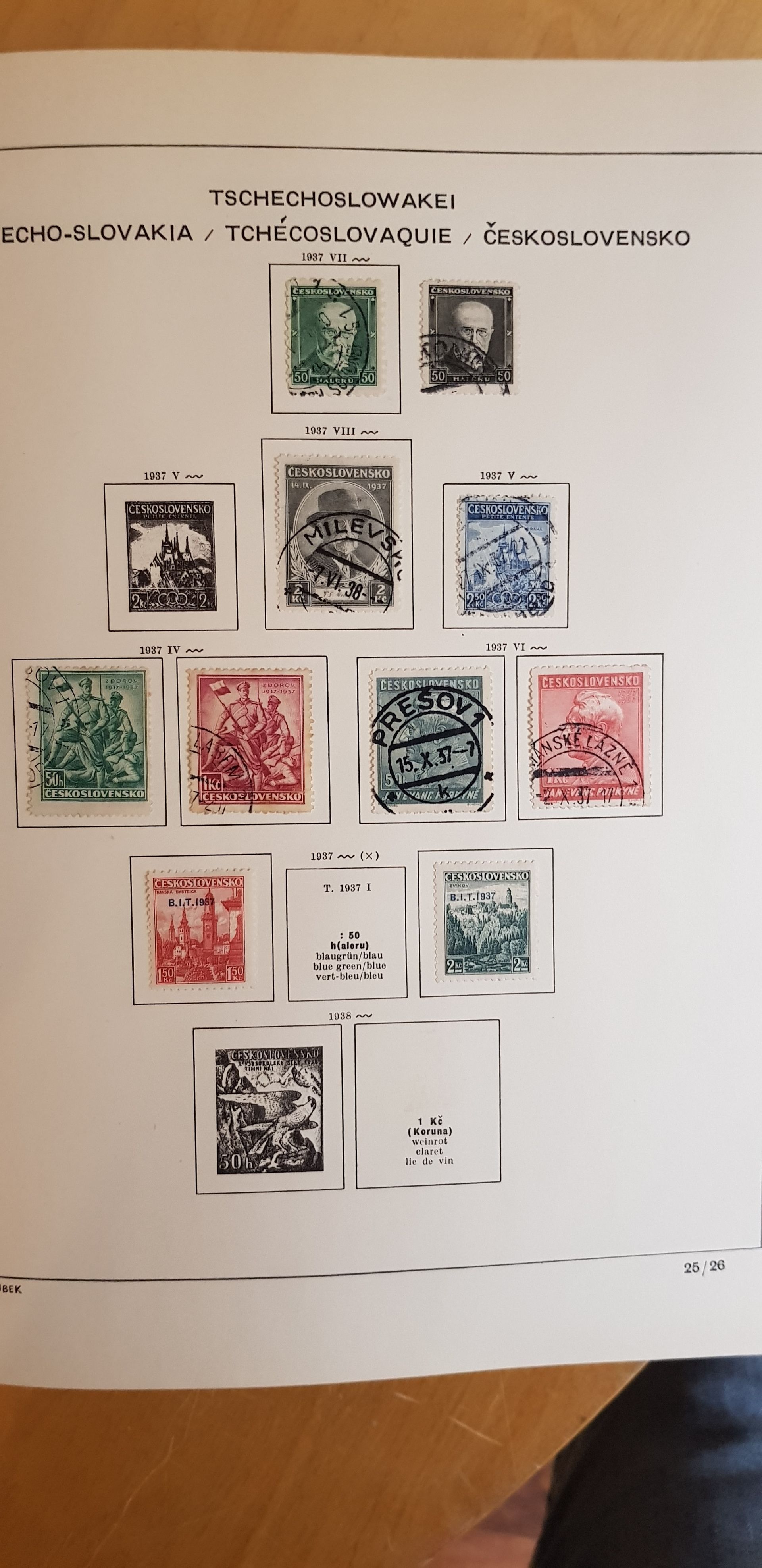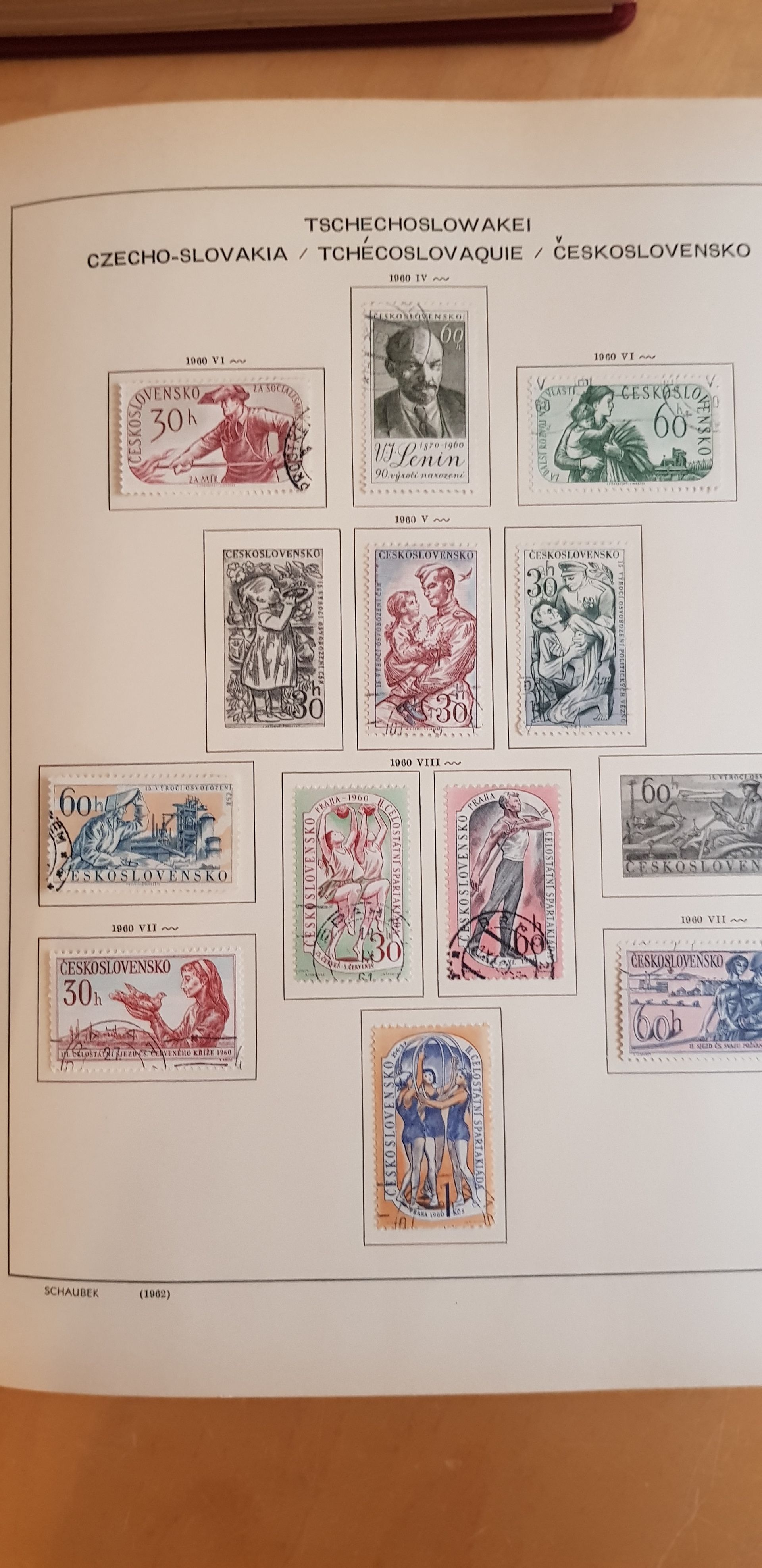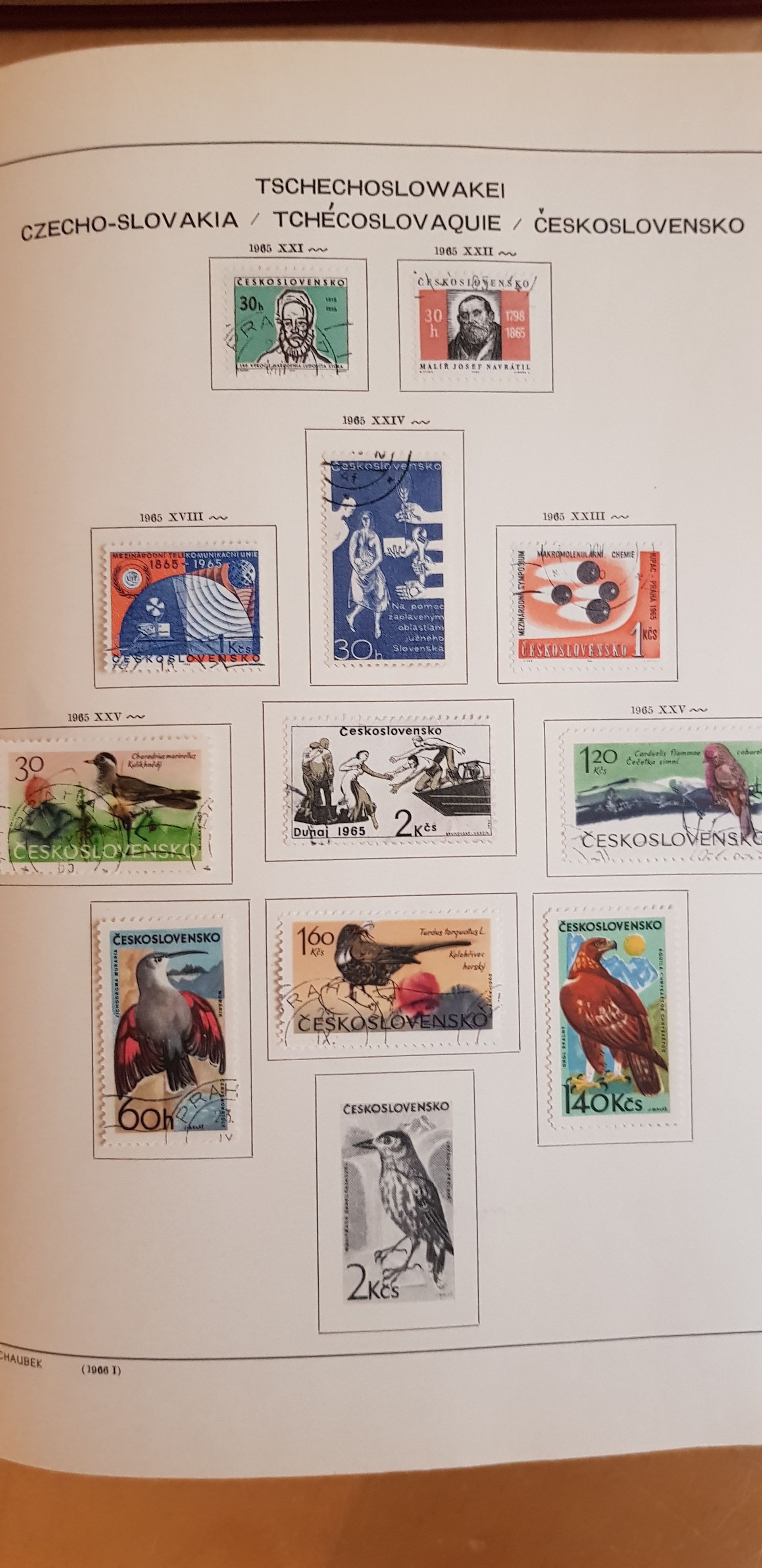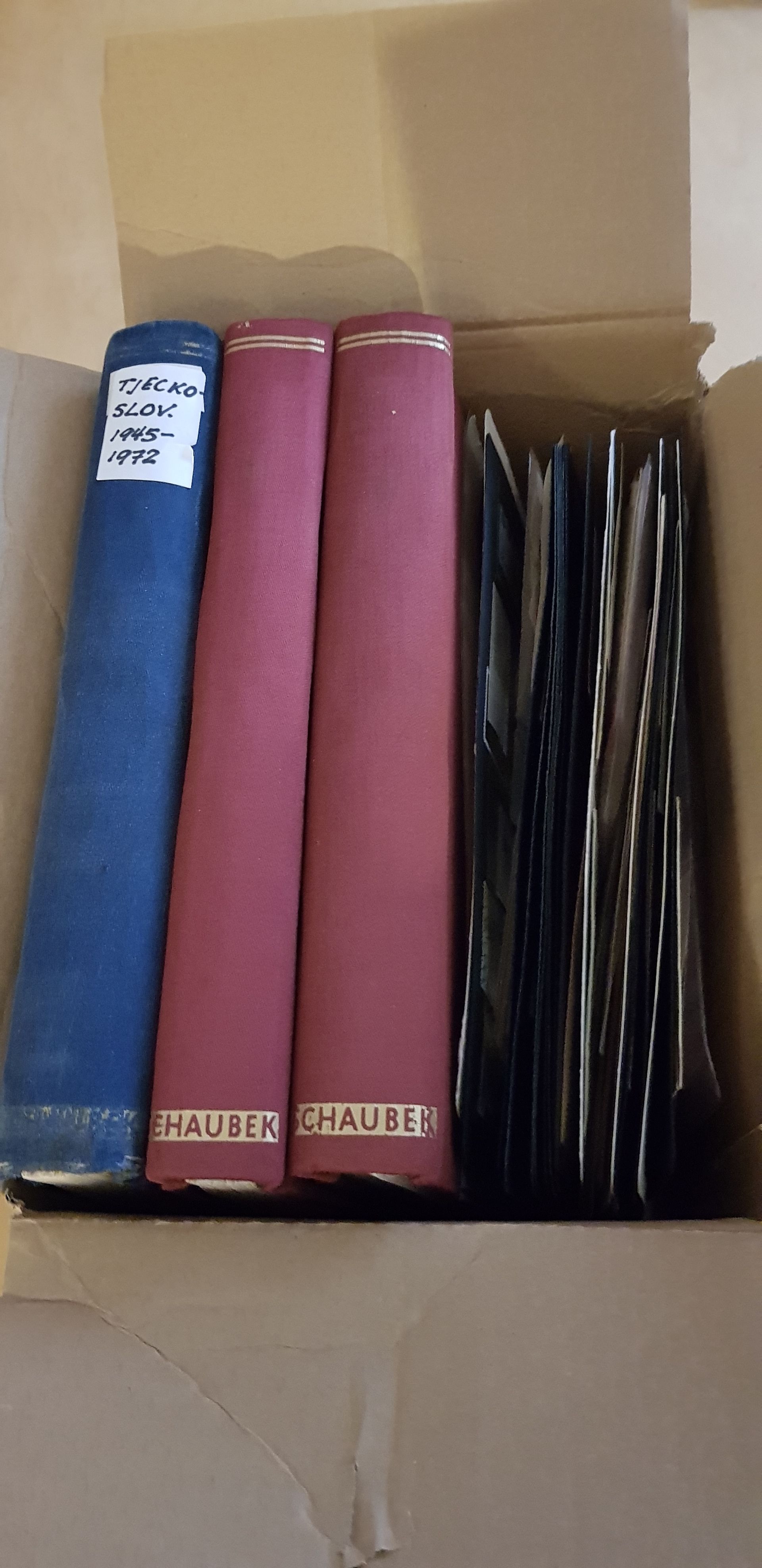 Czechoslovakia. Collection/accumulation mostly used 1900s in box. Three Shaubek albums with a lot of stamps mounted. Also some sheets and envelopes that goes with them. Please see a selection of scans at www.philea.se. Good quality. Approx. 8 kg. (>5000)