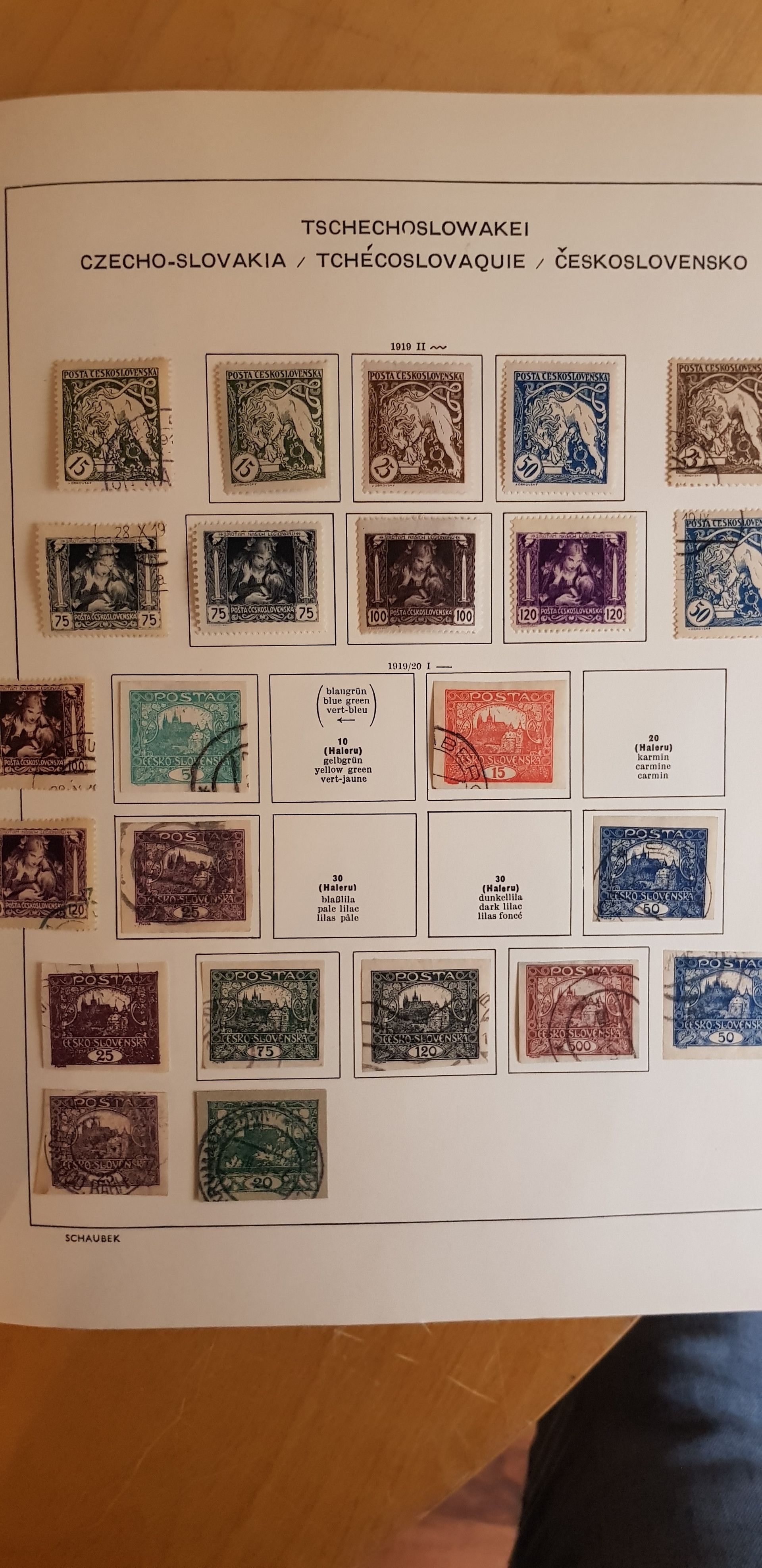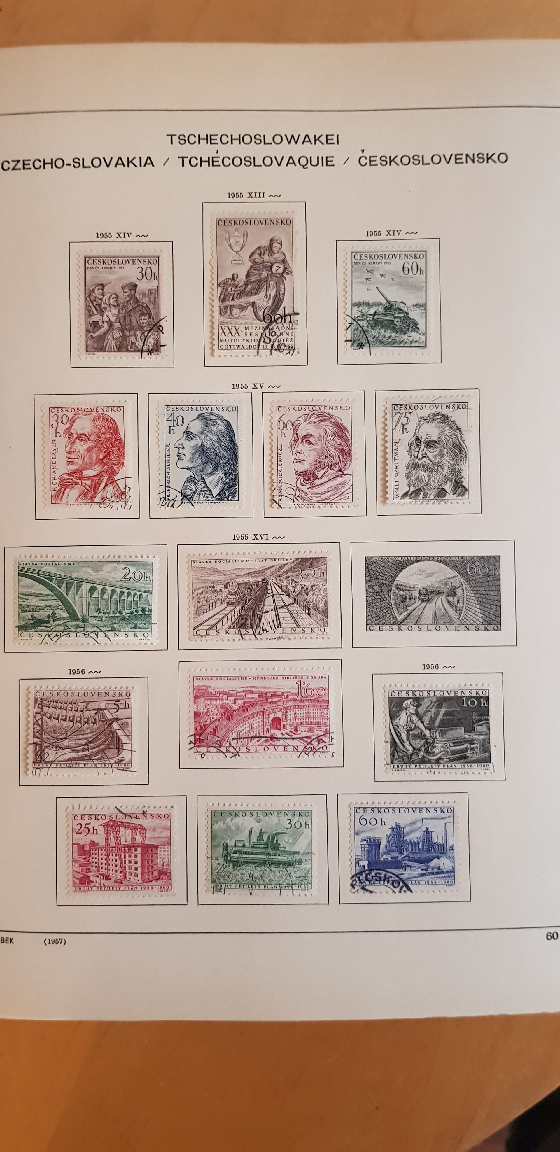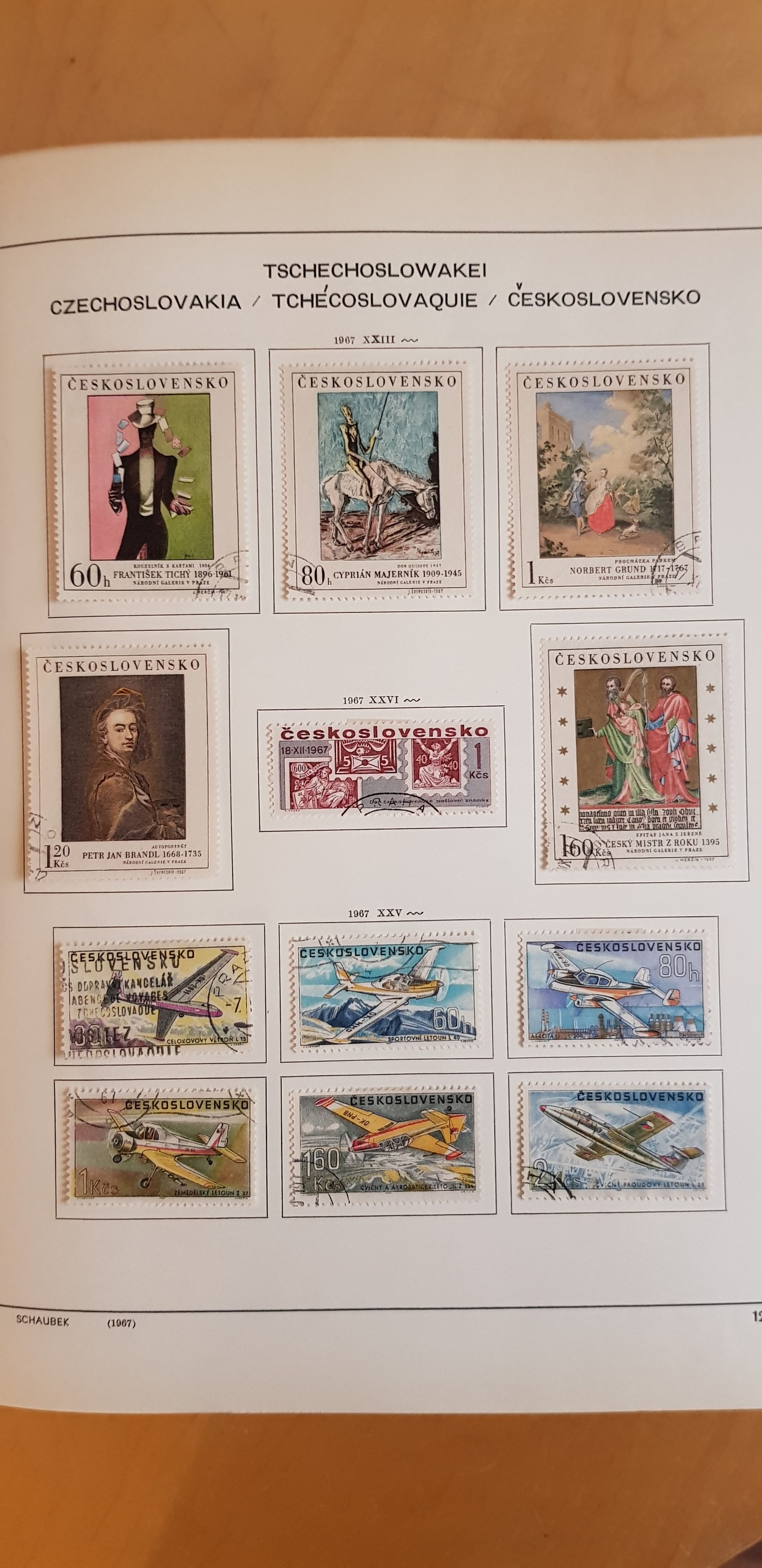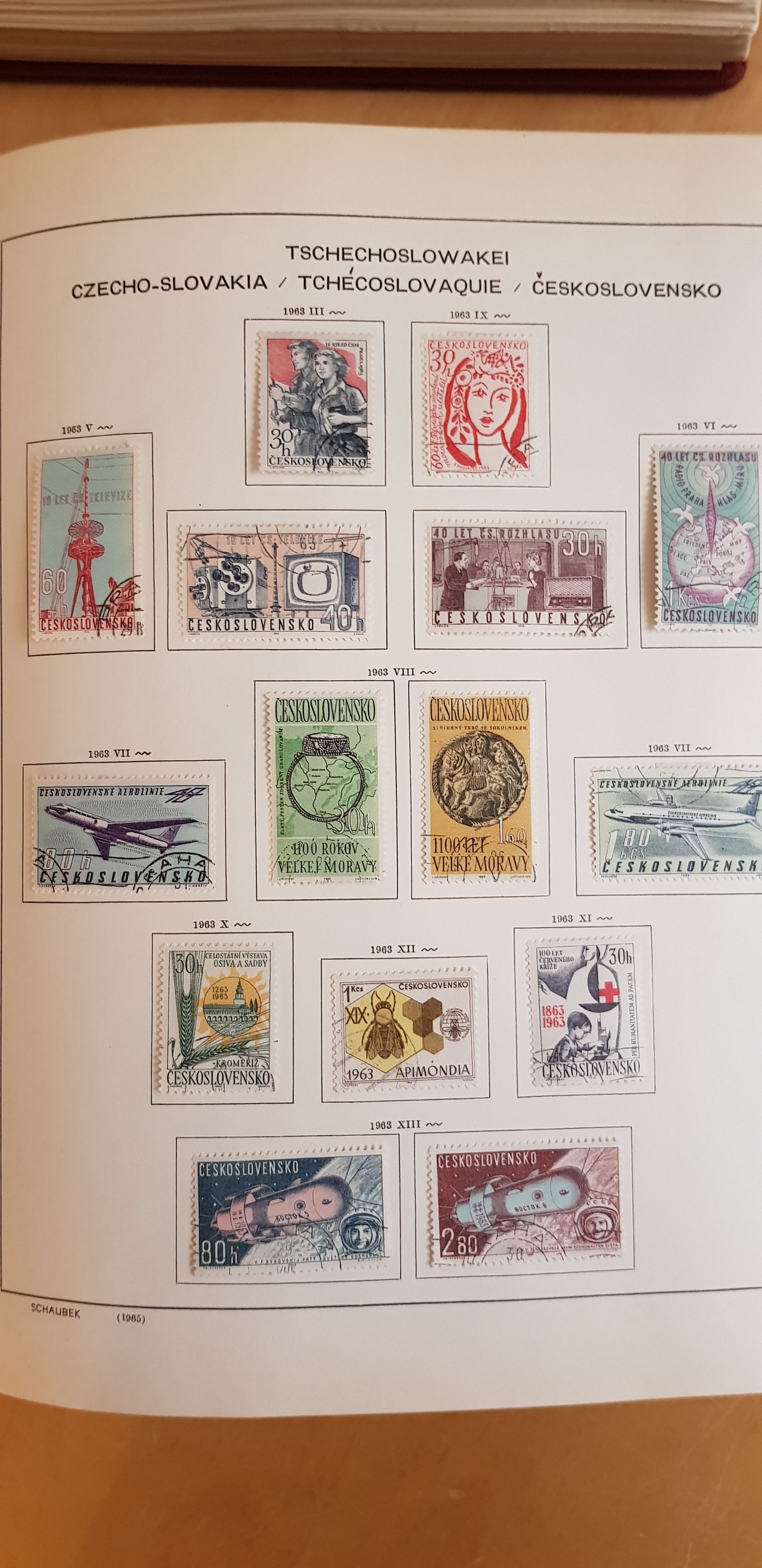 Czechoslovakia. Collection/accumulation mostly used 1900s in box. Three Shaubek albums with a lot of stamps mounted. Also some sheets and envelopes that goes with them. Please see a selection of scans at www.philea.se. Good quality. Approx. 8 kg. (>5000)