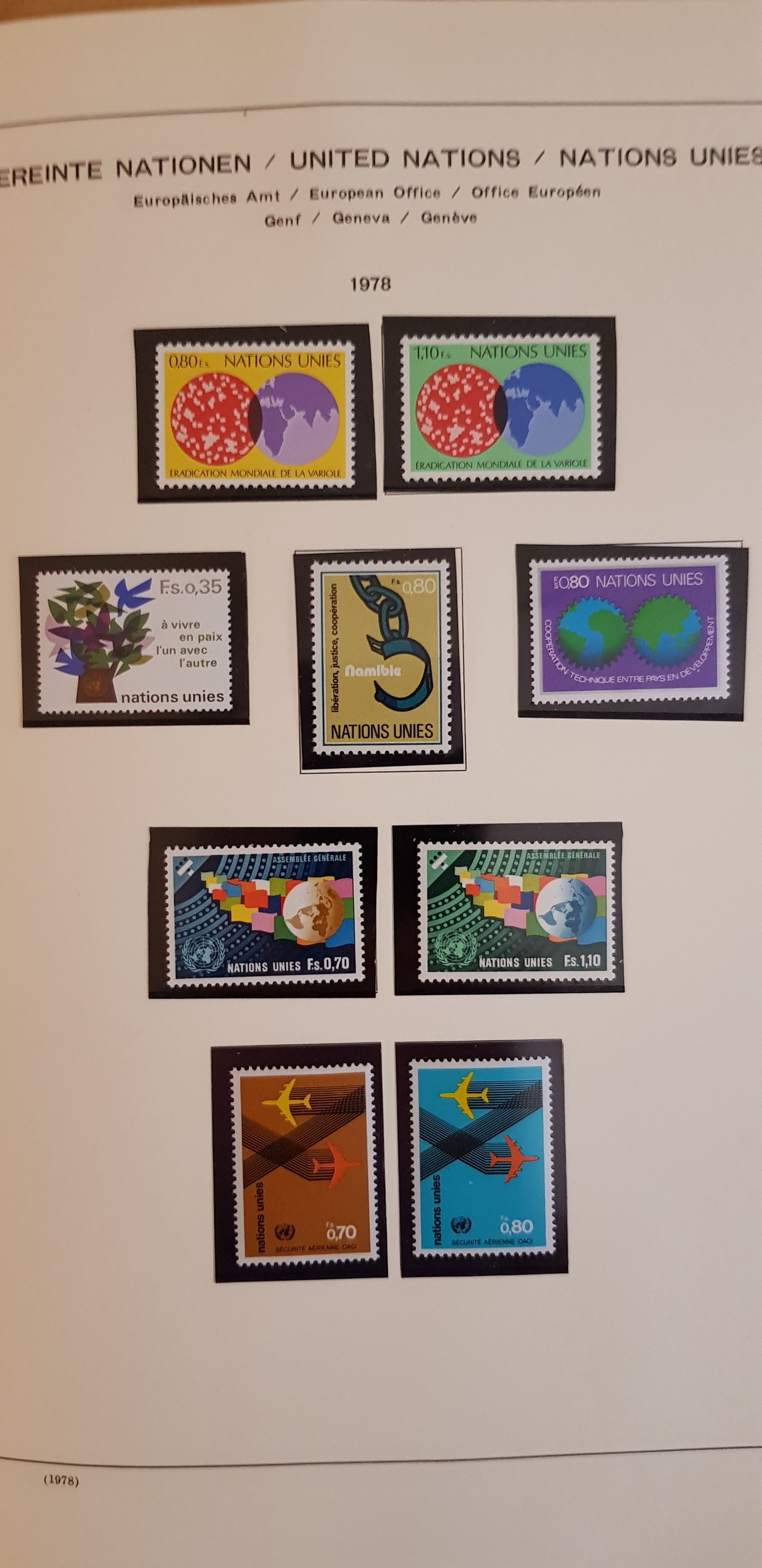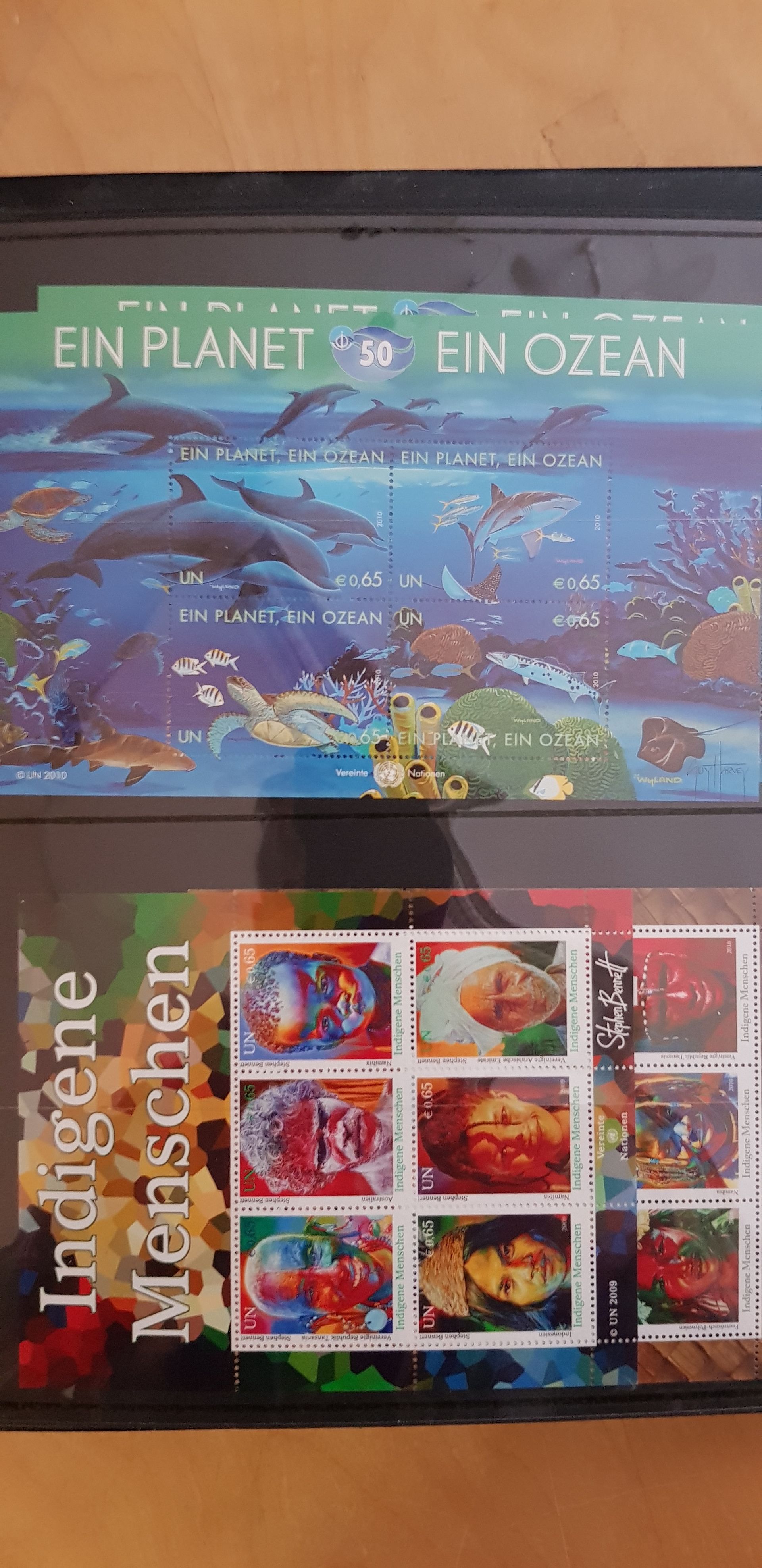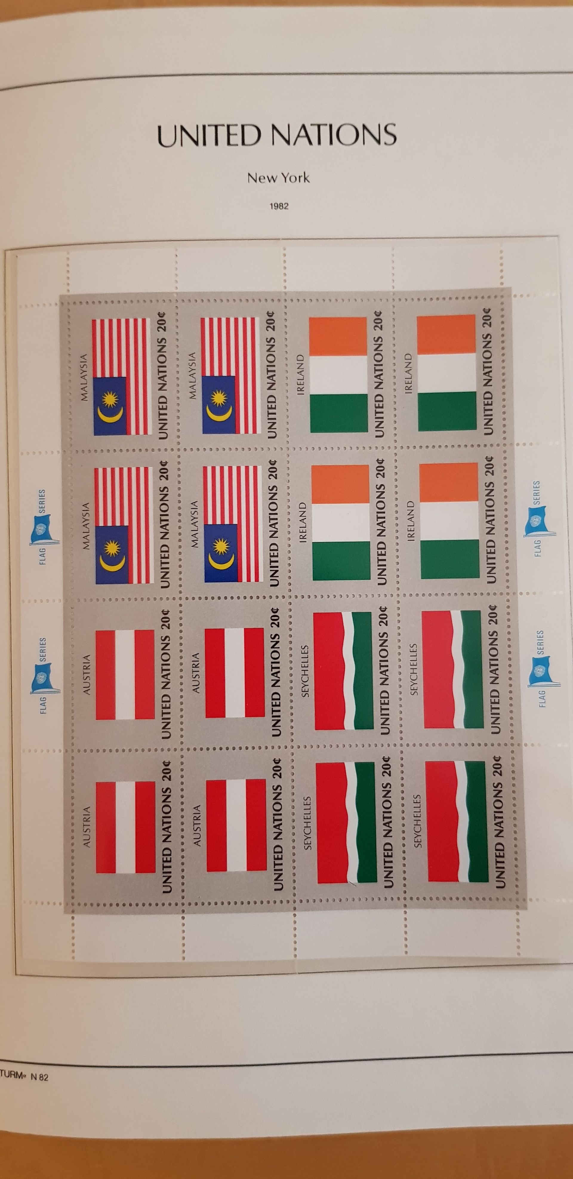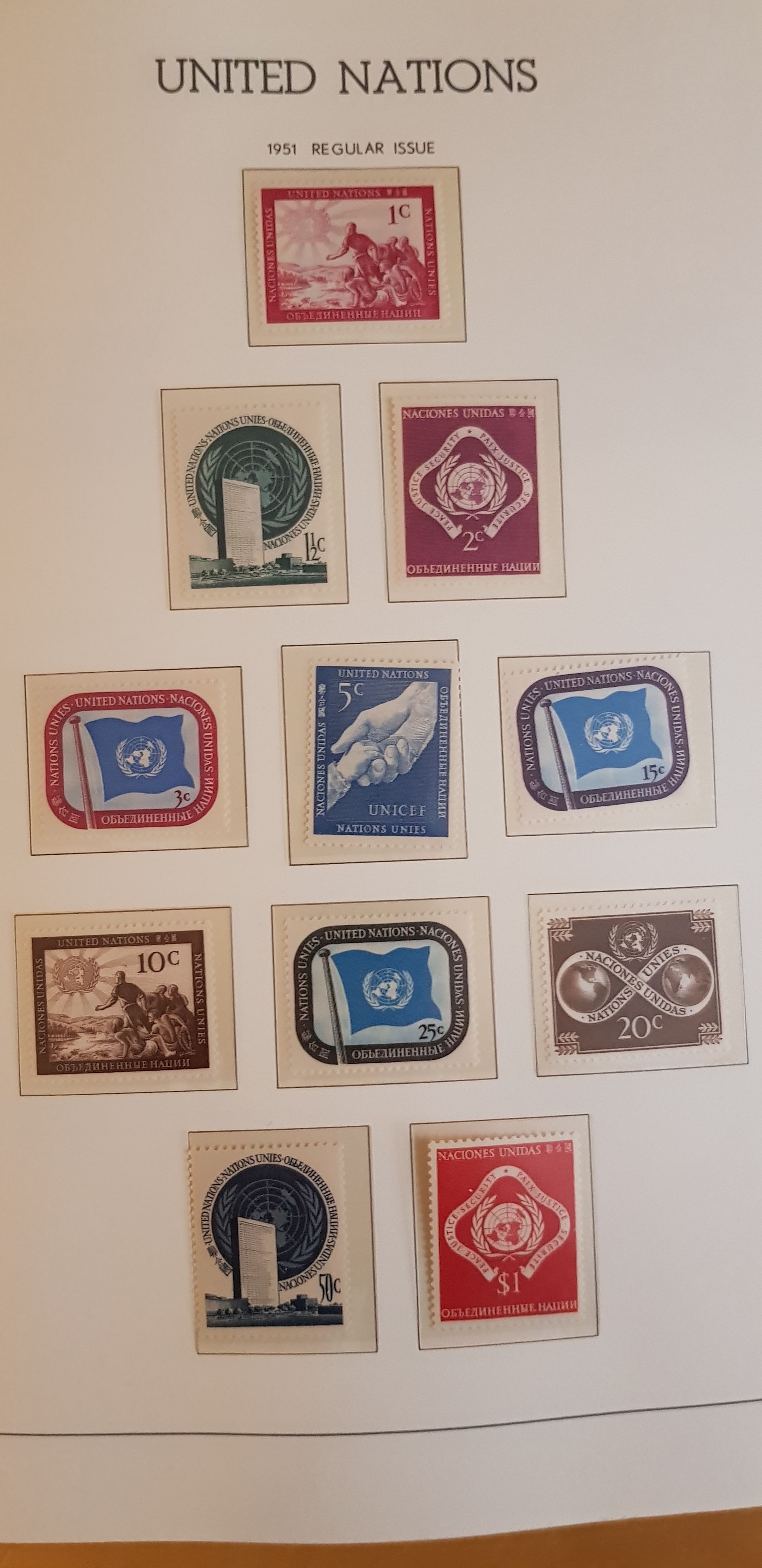 U.N., mixed. Collection ★★ 1951–2009 in four albums in box. A large amount of stamps from UN with three souvenir sheets No 1. Please see a selection of scans at www.philea.se. Fine quality. Approx. 10 kg. (>3000)