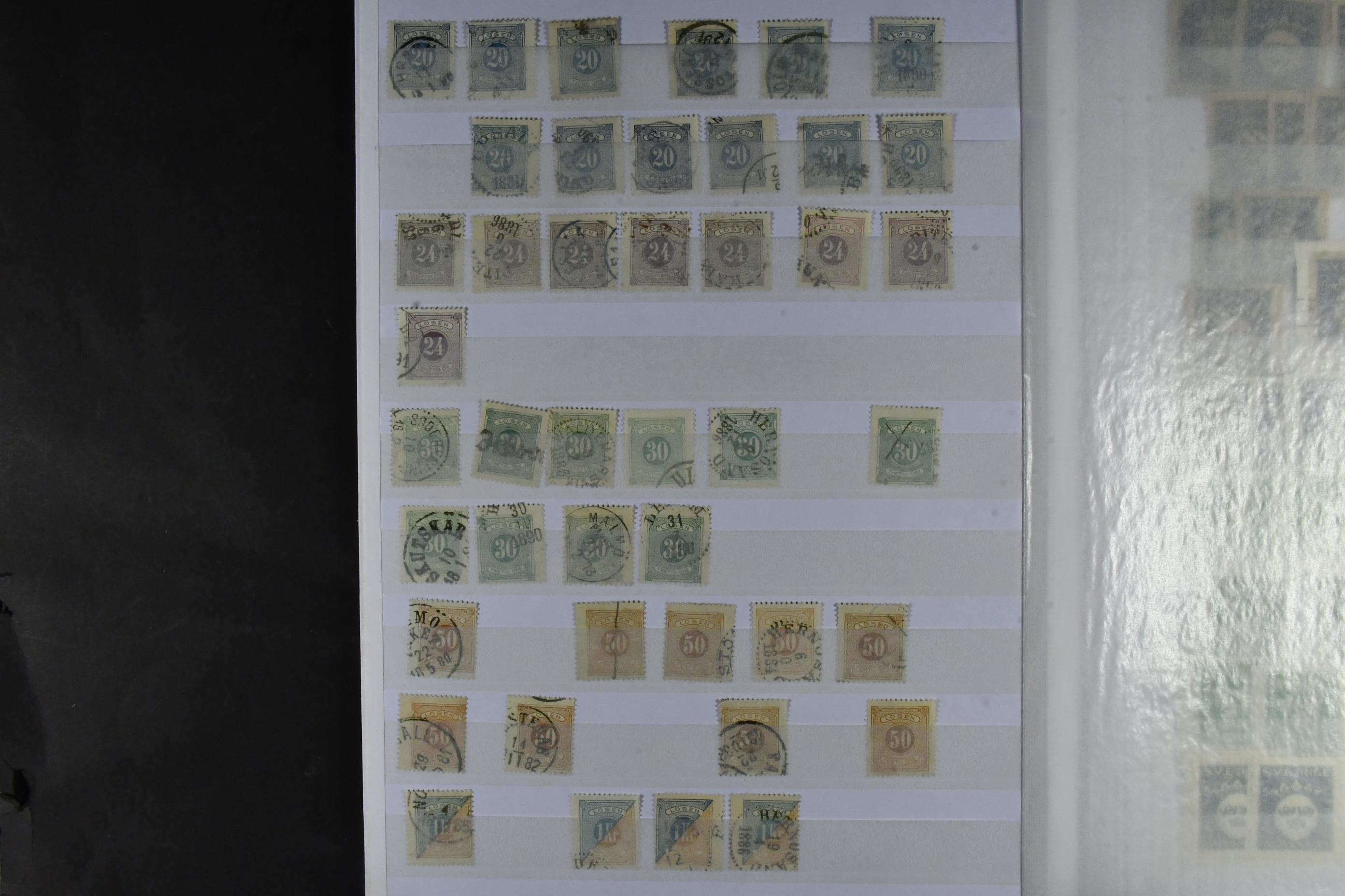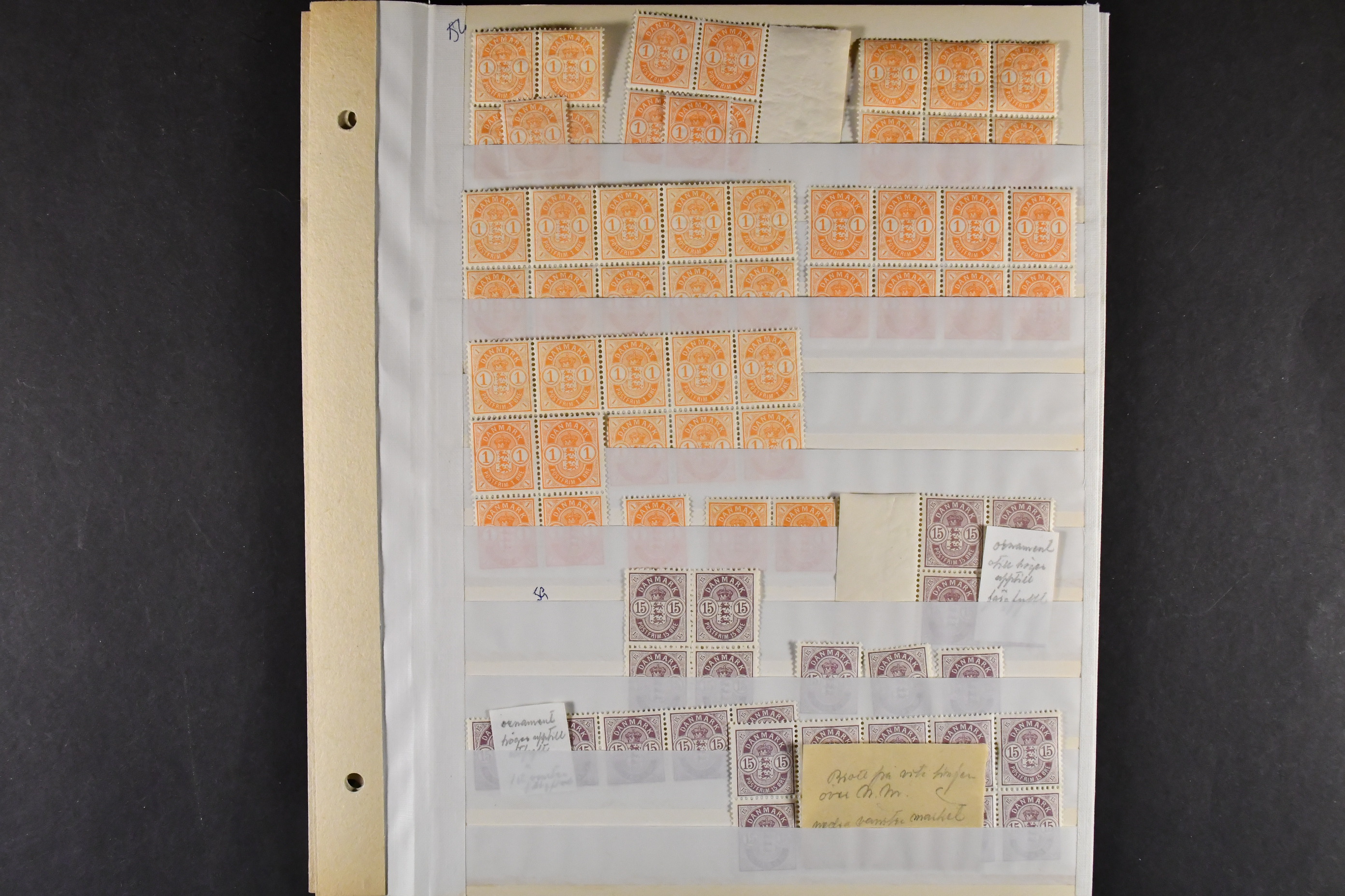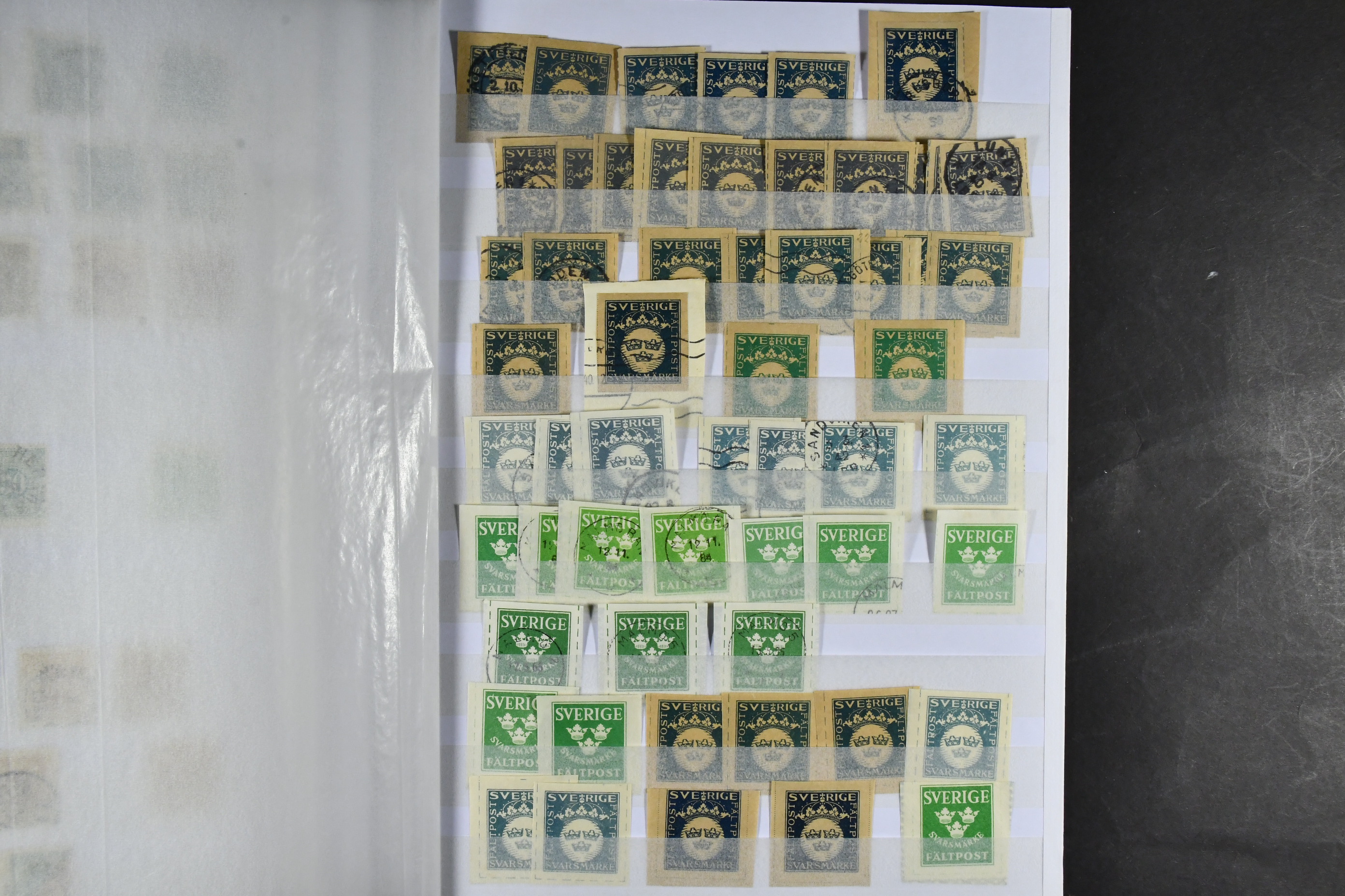 Sweden. Accumulation used on nine stockbbok leaves. OFFCIALS, DUES AND MILITARY, good range and variation with possiblities for shades, etc, very high cat. value. The entire lot is presented at www.philea.se. Mostly fine quality.