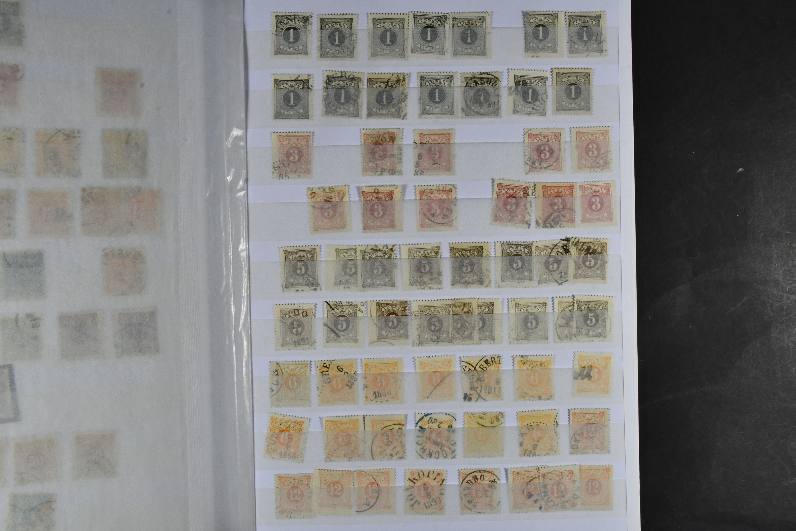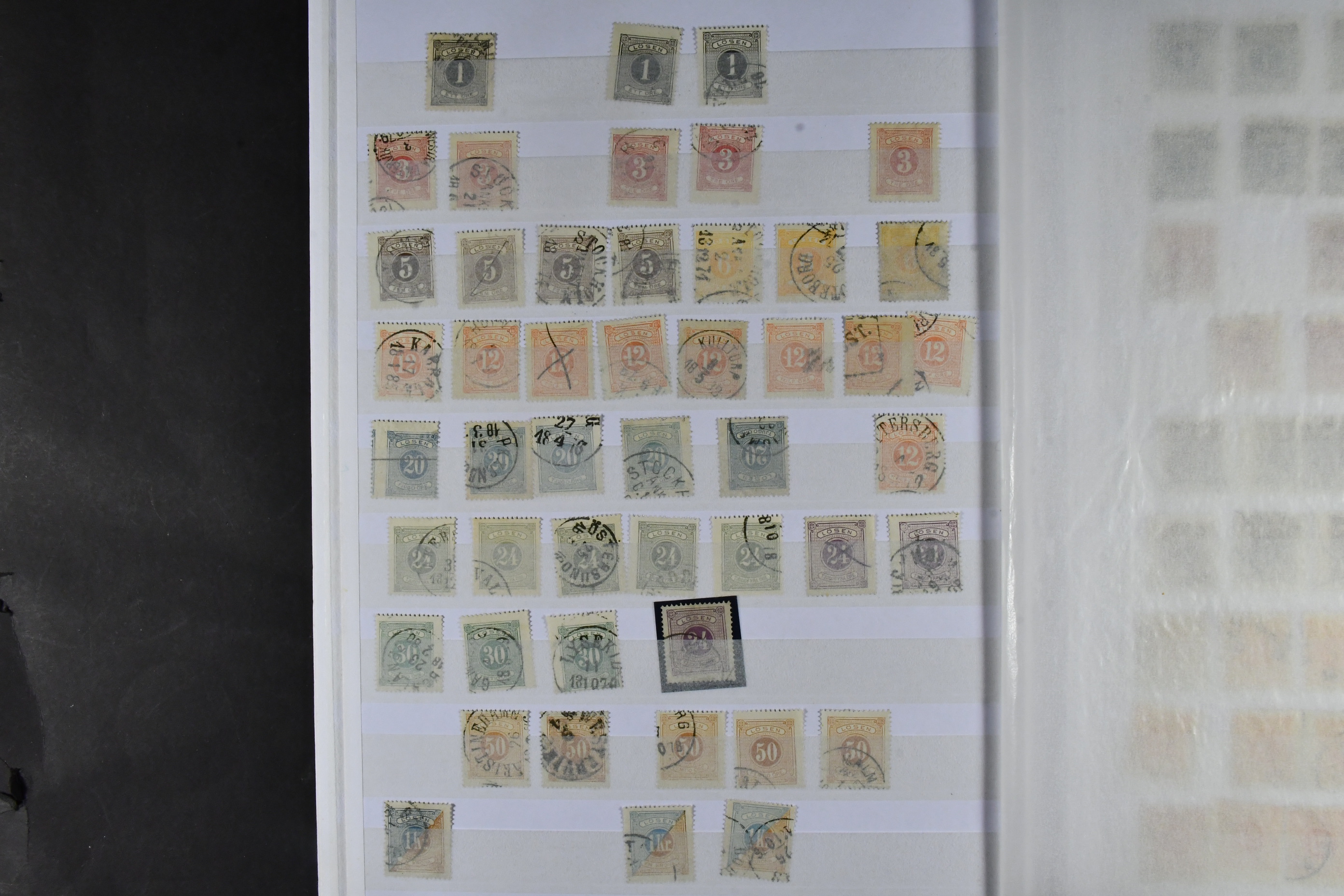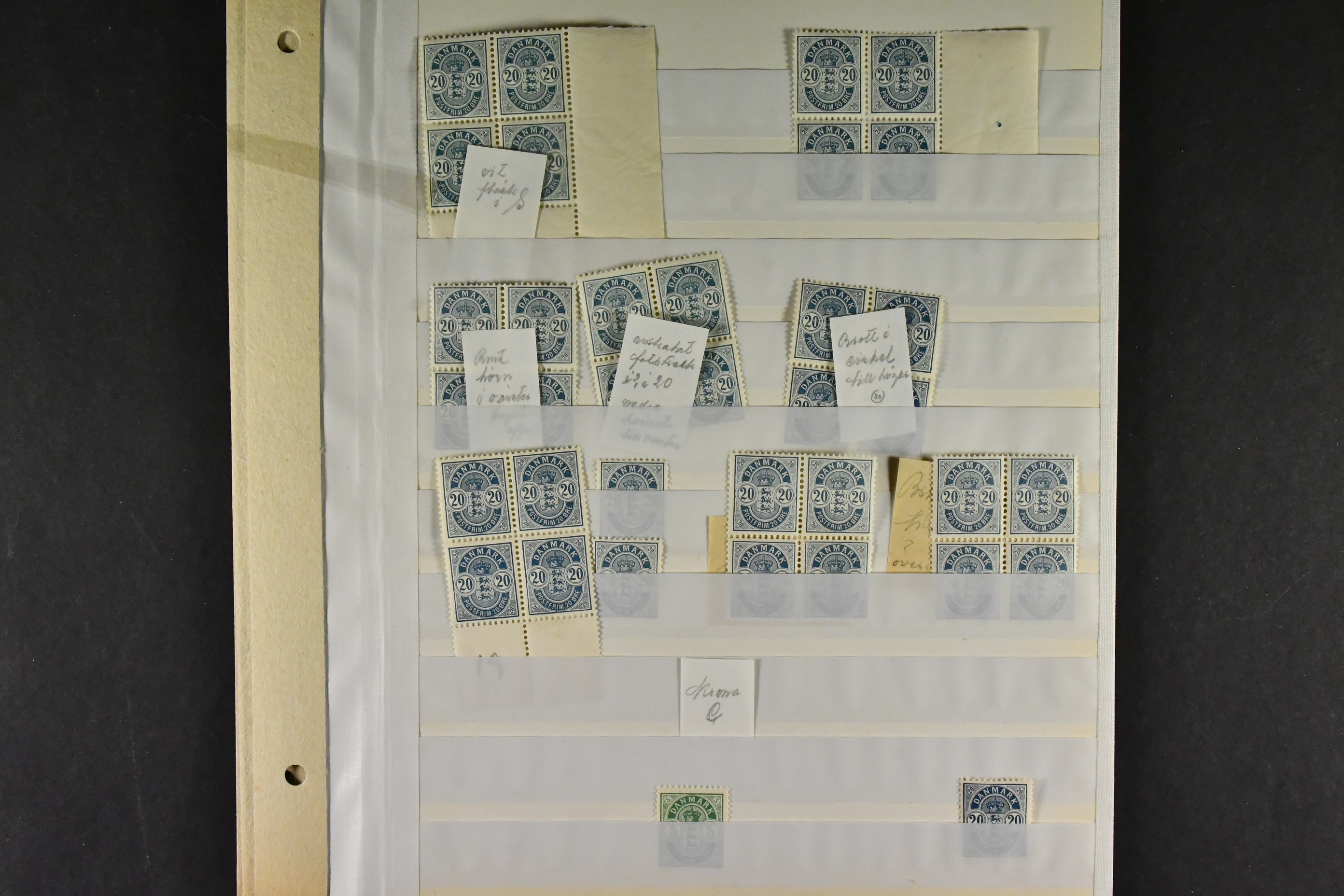 Sweden. Accumulation used on nine stockbbok leaves. OFFCIALS, DUES AND MILITARY, good range and variation with possiblities for shades, etc, very high cat. value. The entire lot is presented at www.philea.se. Mostly fine quality.