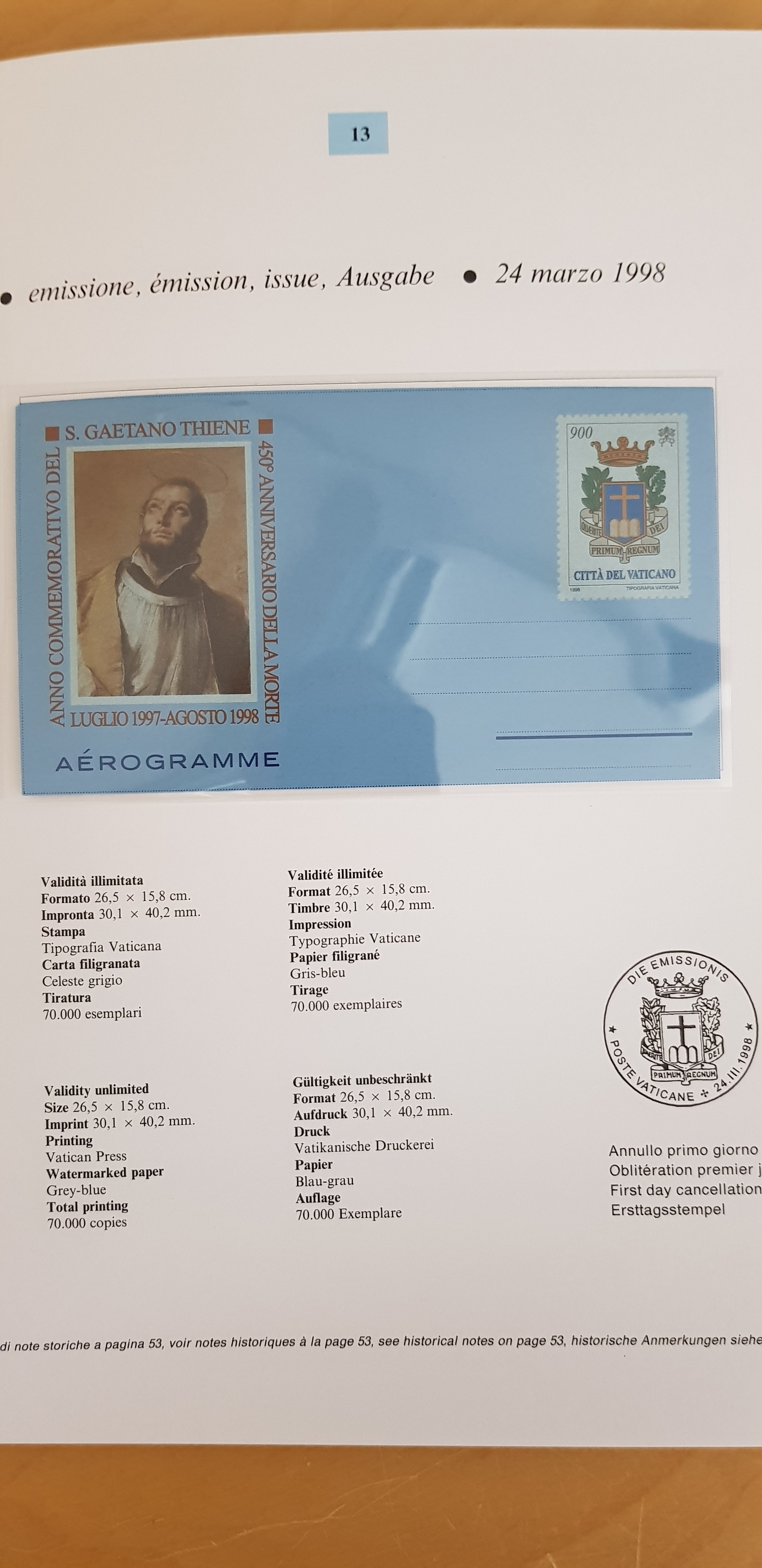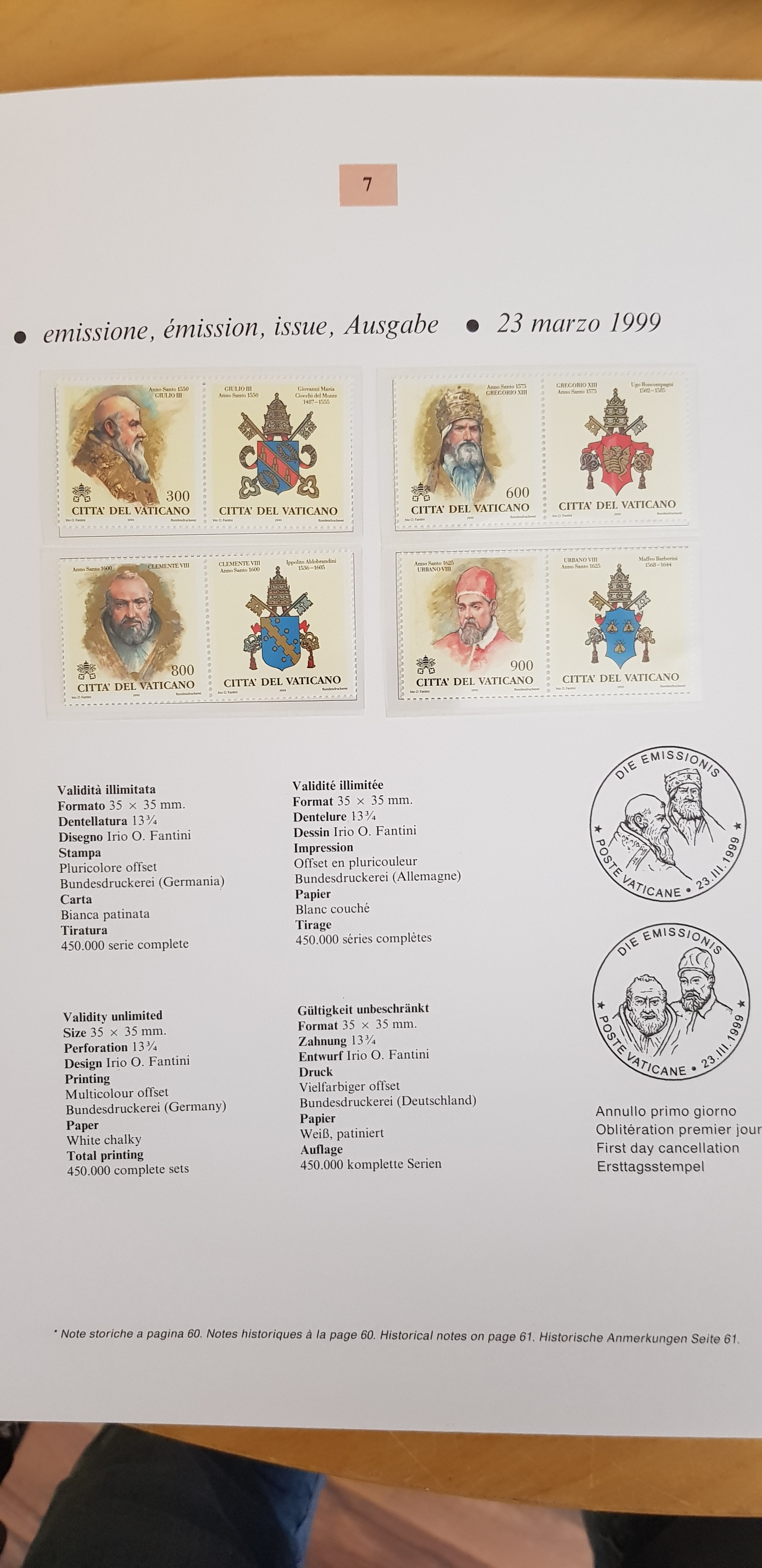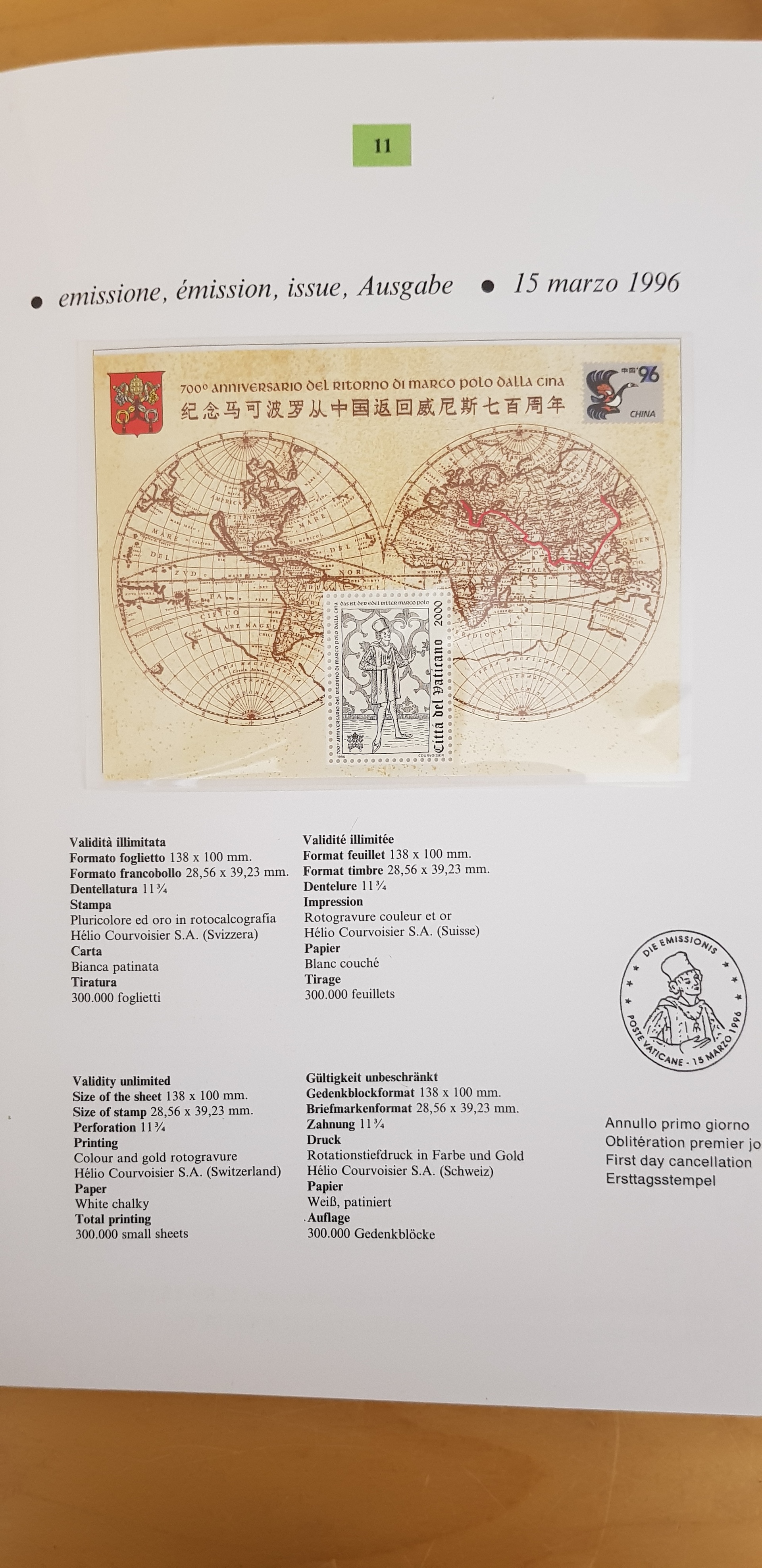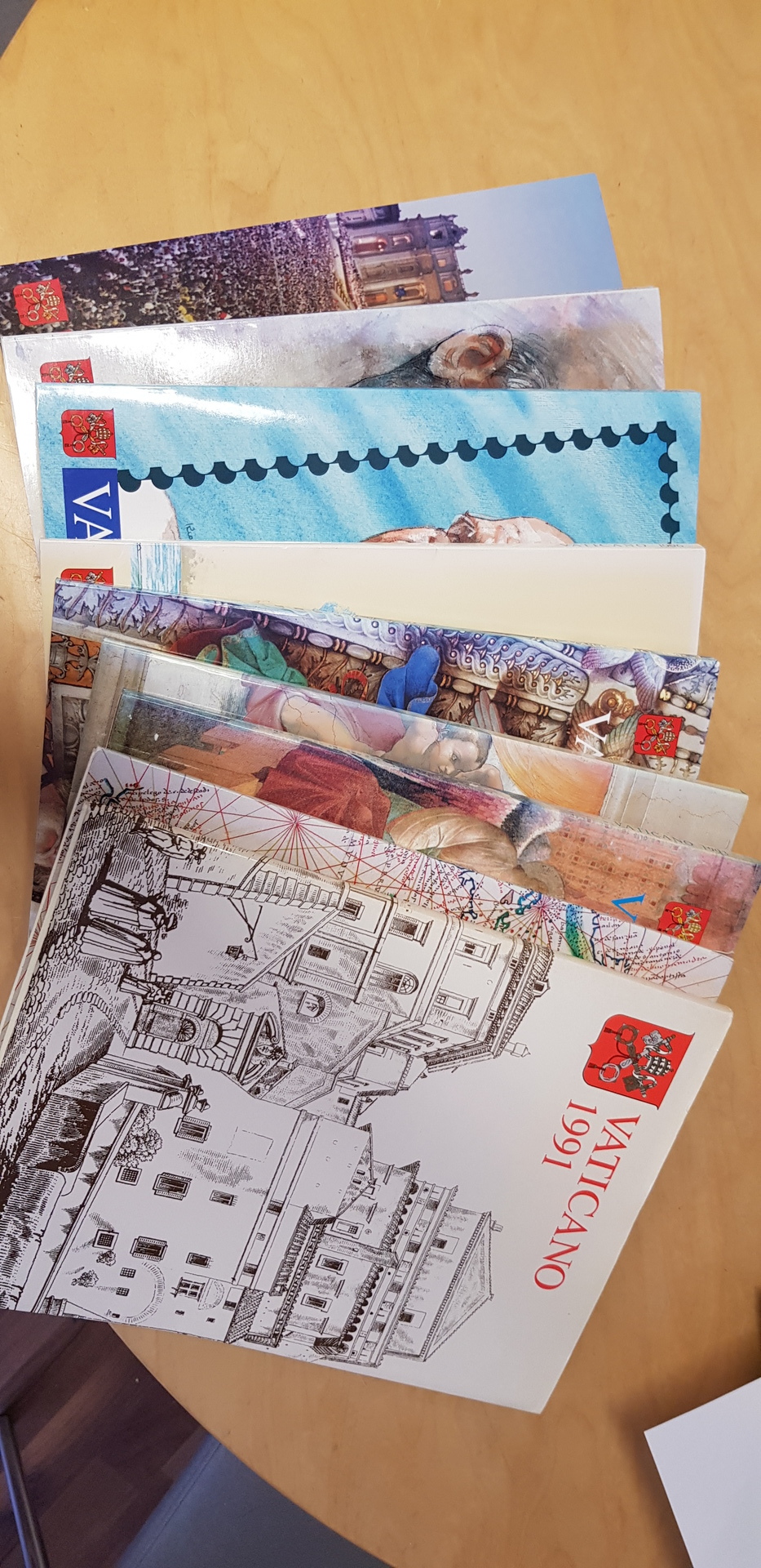 Vatican. Year books, collection 1991–2000 in box. One year is missing, 1997. Year books with souvenir sheets and stamps. Please see a selection of scans at www.philea.se. Fine quality. Approx. 6 kg.