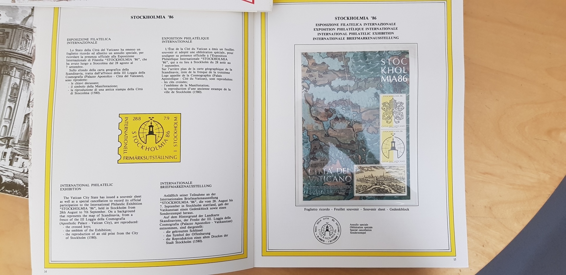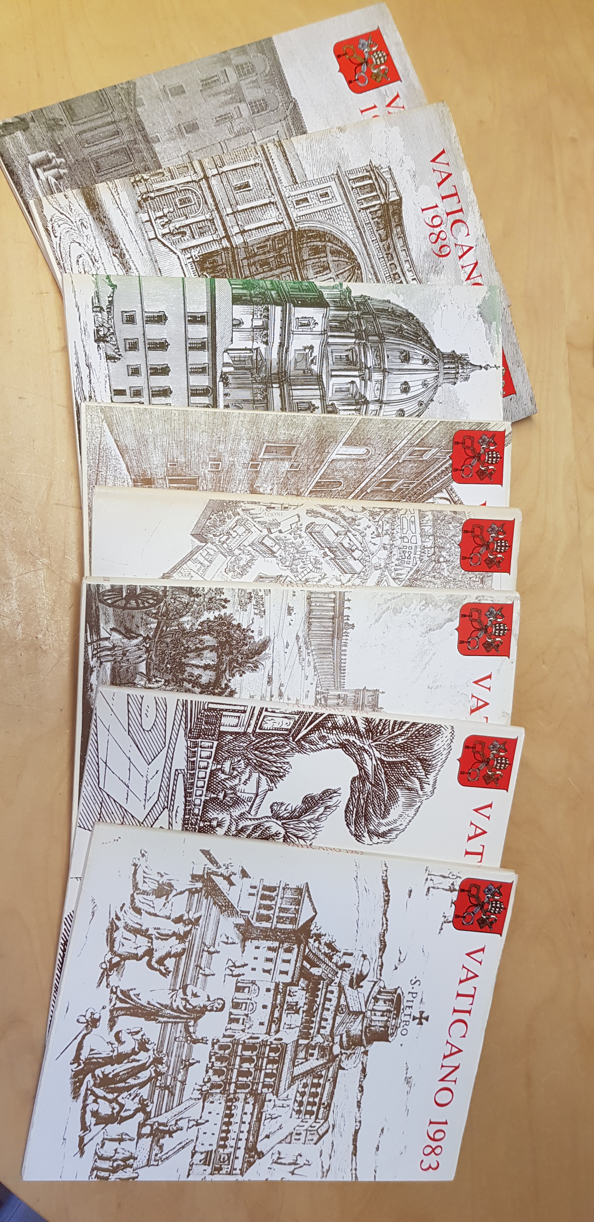Vatican. Year books, collection 1983–1990 in box. 8 yearbooks from Vatican with a lot of interesting stamps. In year 83, 87, 88 and 90 there are a few stamps missing. Please see a selection of scans at www.philea.se. Mostly fine quality.