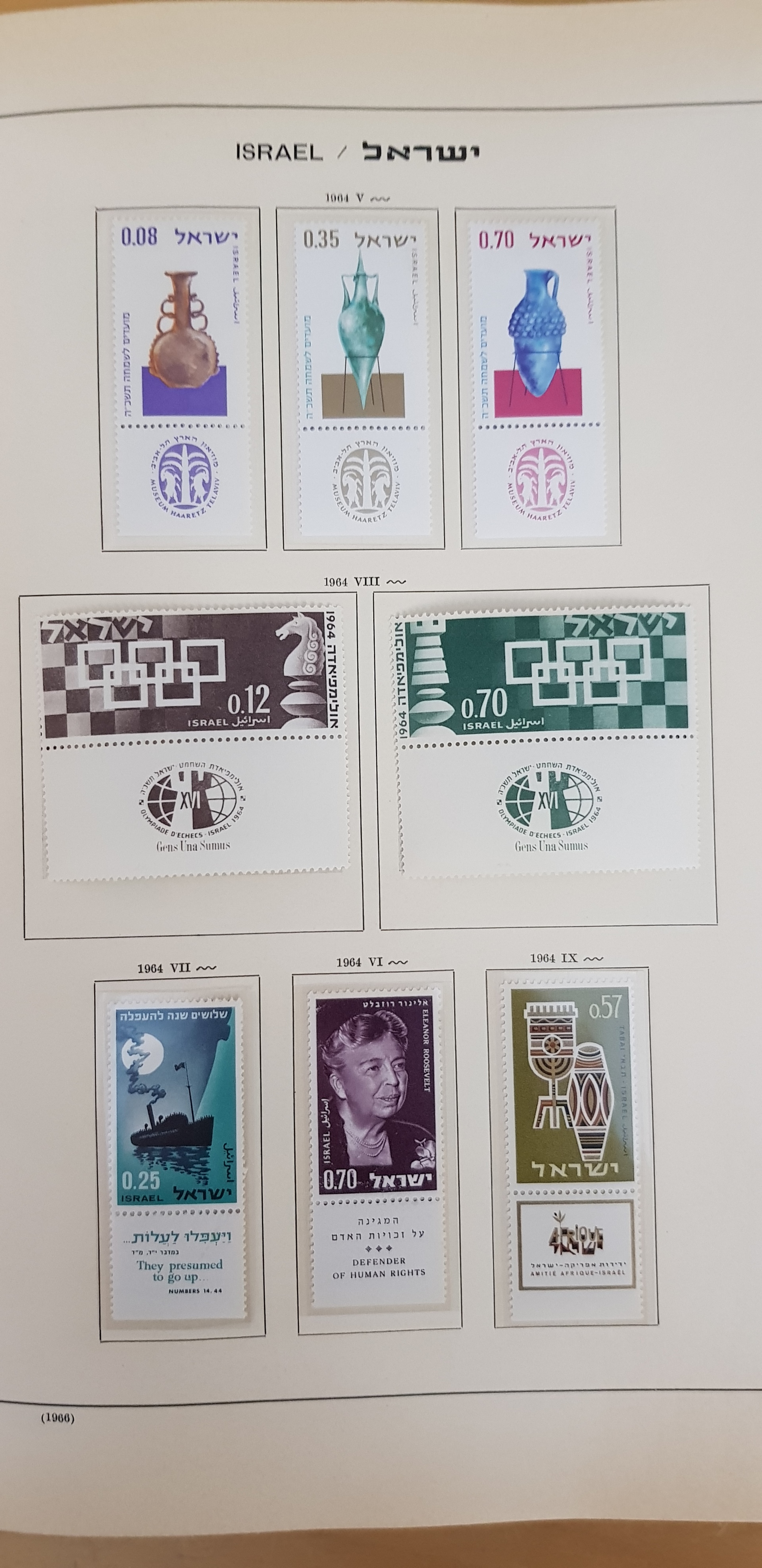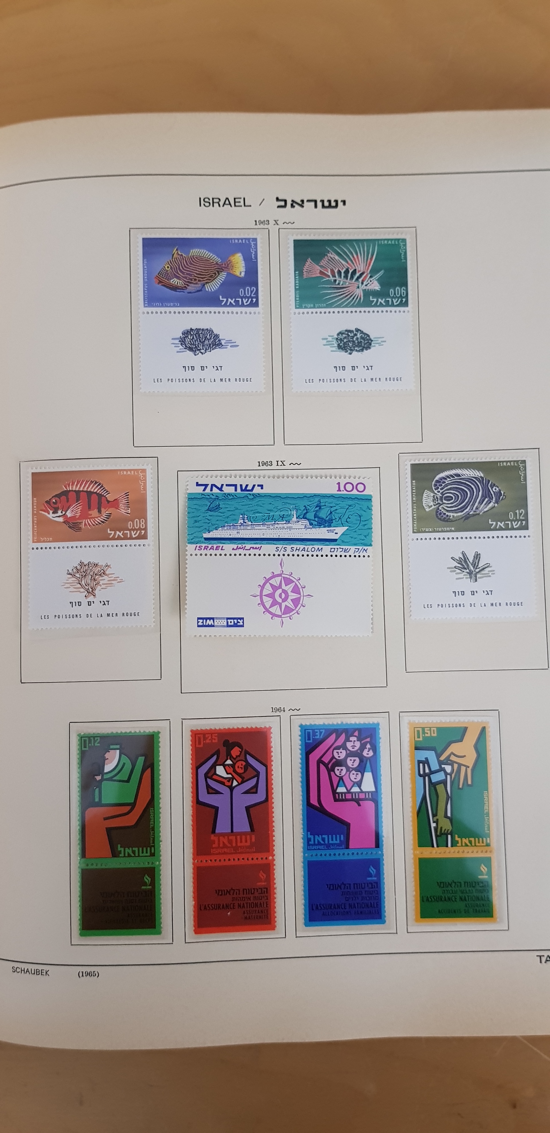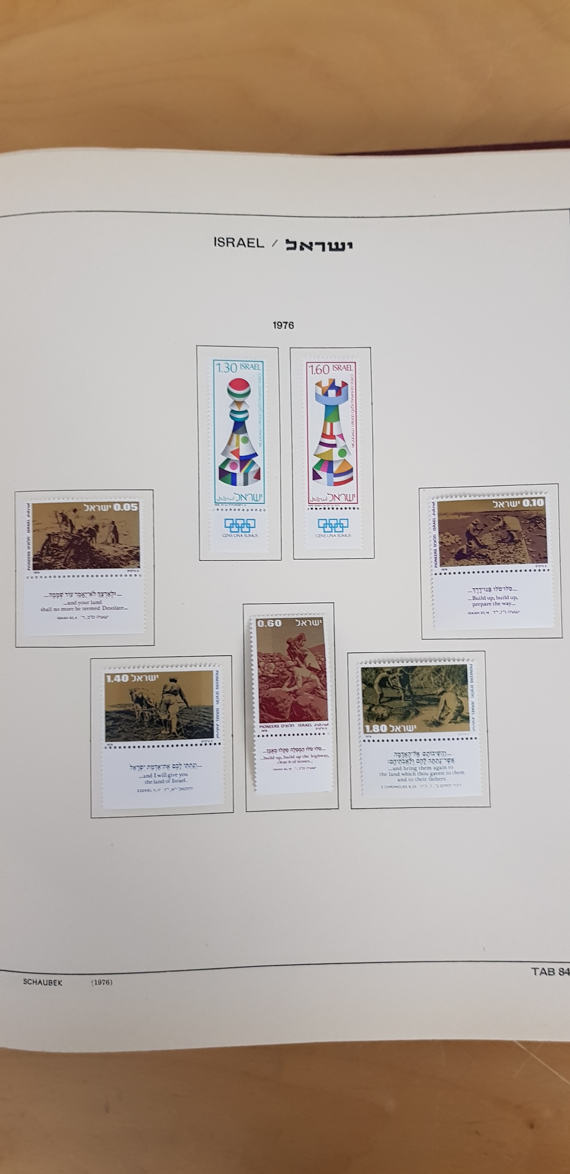 Israel. Collection mostly ★★ 1948–1976 in Schaubek album. A nice Schaubek album with Israel more or less complete from 1960. A lot of the stamps are with tabs on them. Please see a selection of scans at www.philea.se. Fine quality. (>500)