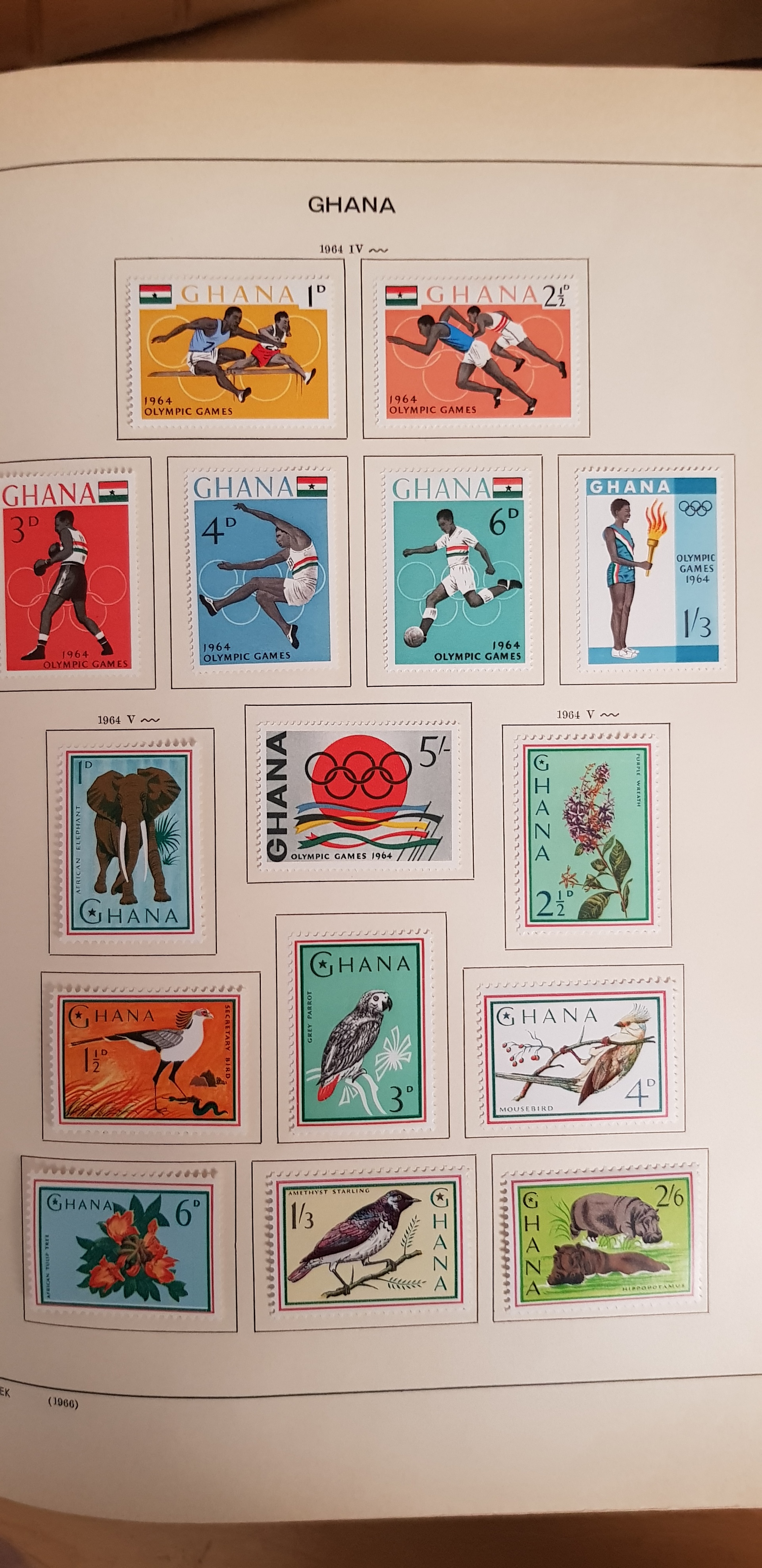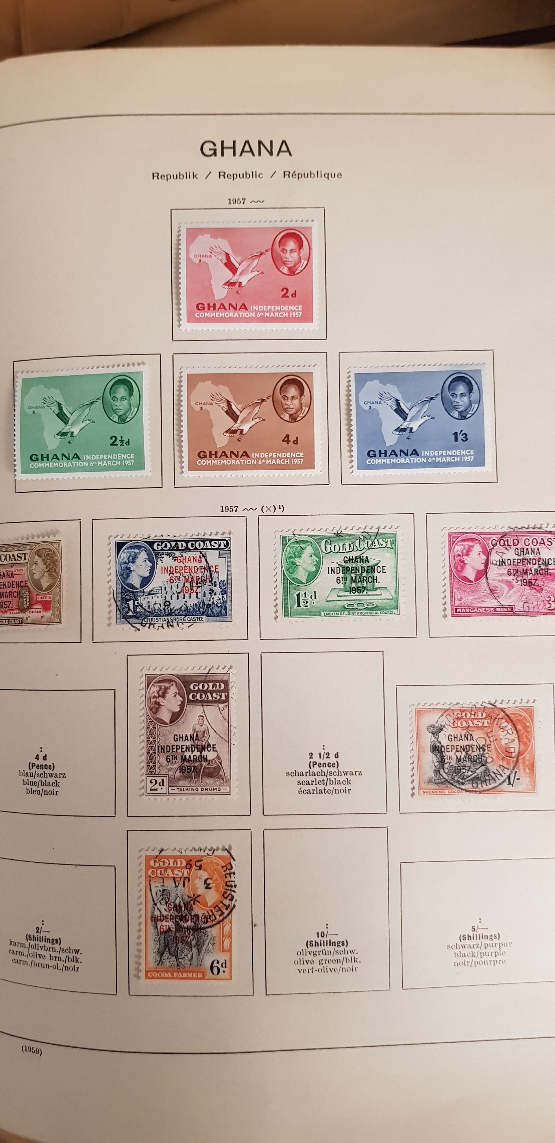 Ghana. Collection/accumulation mostly ★★ 1900s in box. A nice Schaubek album with Ghana. Also Maximum cards from China, DE, USA and Sweden in a very nice album. Please see a selection of scans at www.philea.se. Mostly fine quality. (>500)