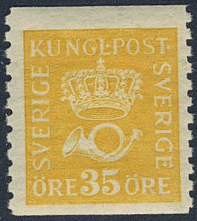 Sweden. Facit 156cx ★★, 35 öre dull yellow vertical perf 9¾ type I. Beautiful example with wmk lines. SEK 1900