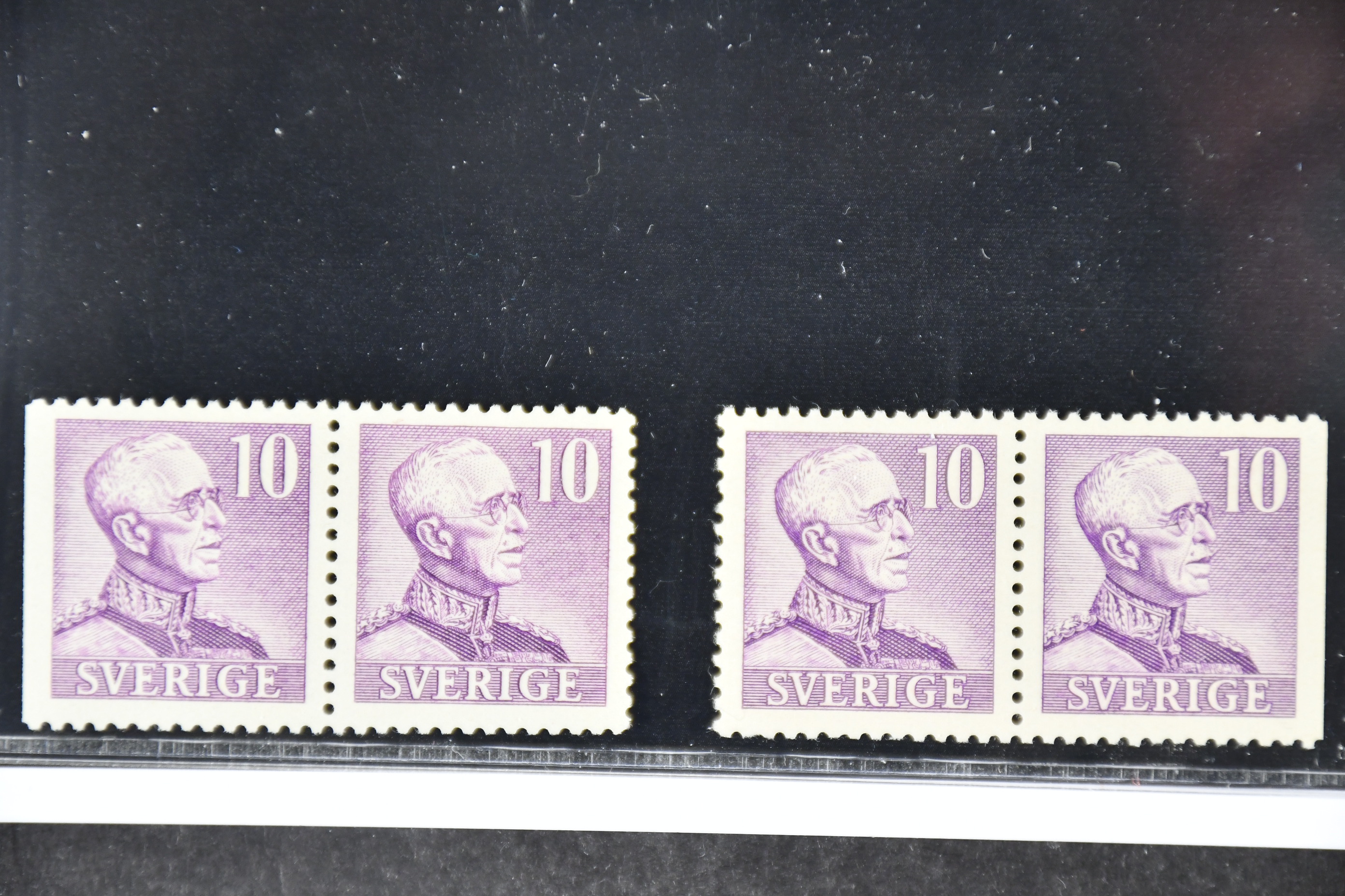 Sweden. Facit 273BC1, CB1 ★★, 1939 Gustaf V large numerals 10 öre violet, pair perf 3+4 sides and 4+3 sides with coloured line in coat lapel. SEK 3200