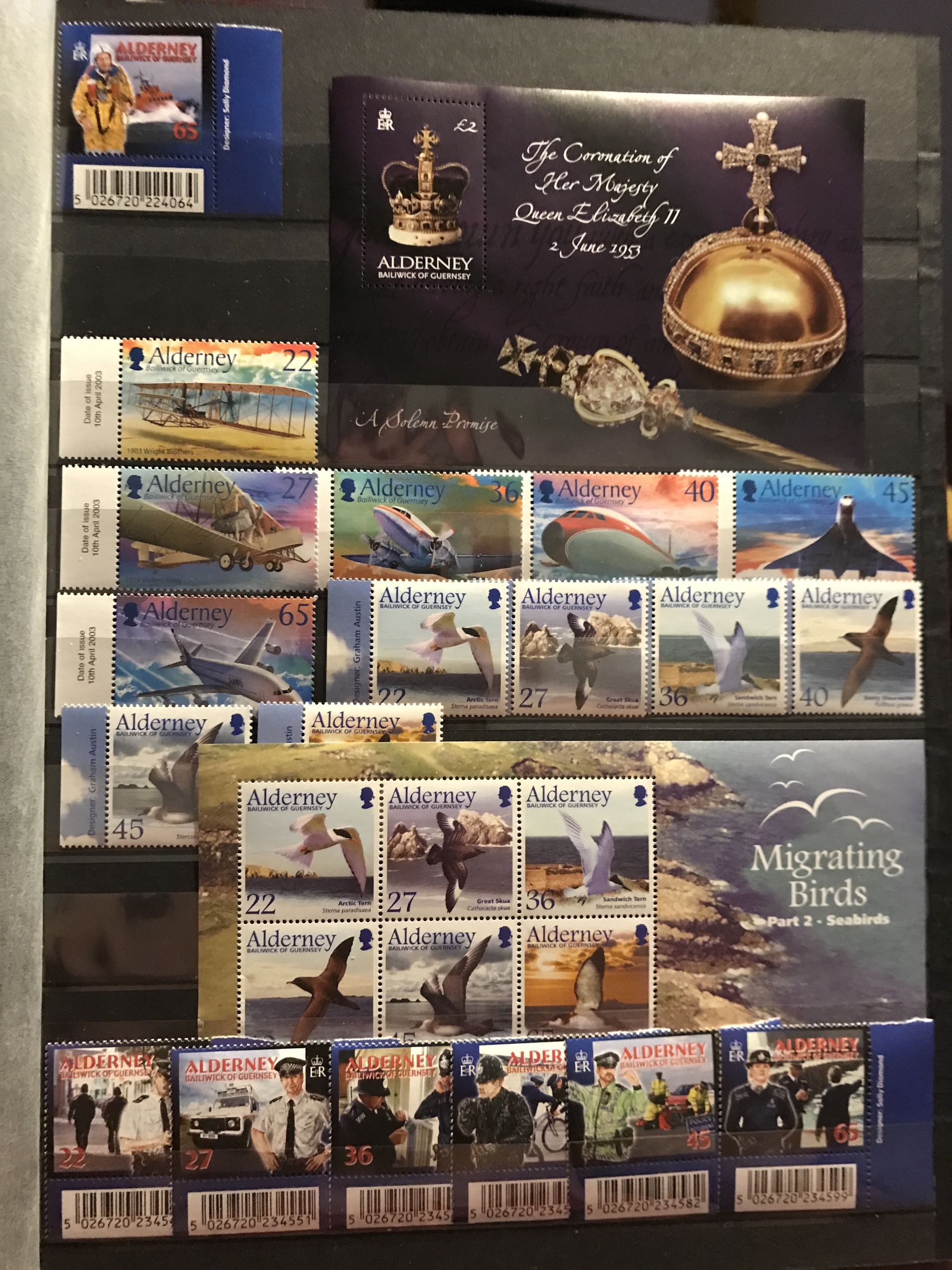 Britain, Alderney. ★★. Collection 1983–2006 (few later) in stockbook incl. 17 souvenir sheets and five prestige booklets, etc. Mi approx. 700 Euro. (280)