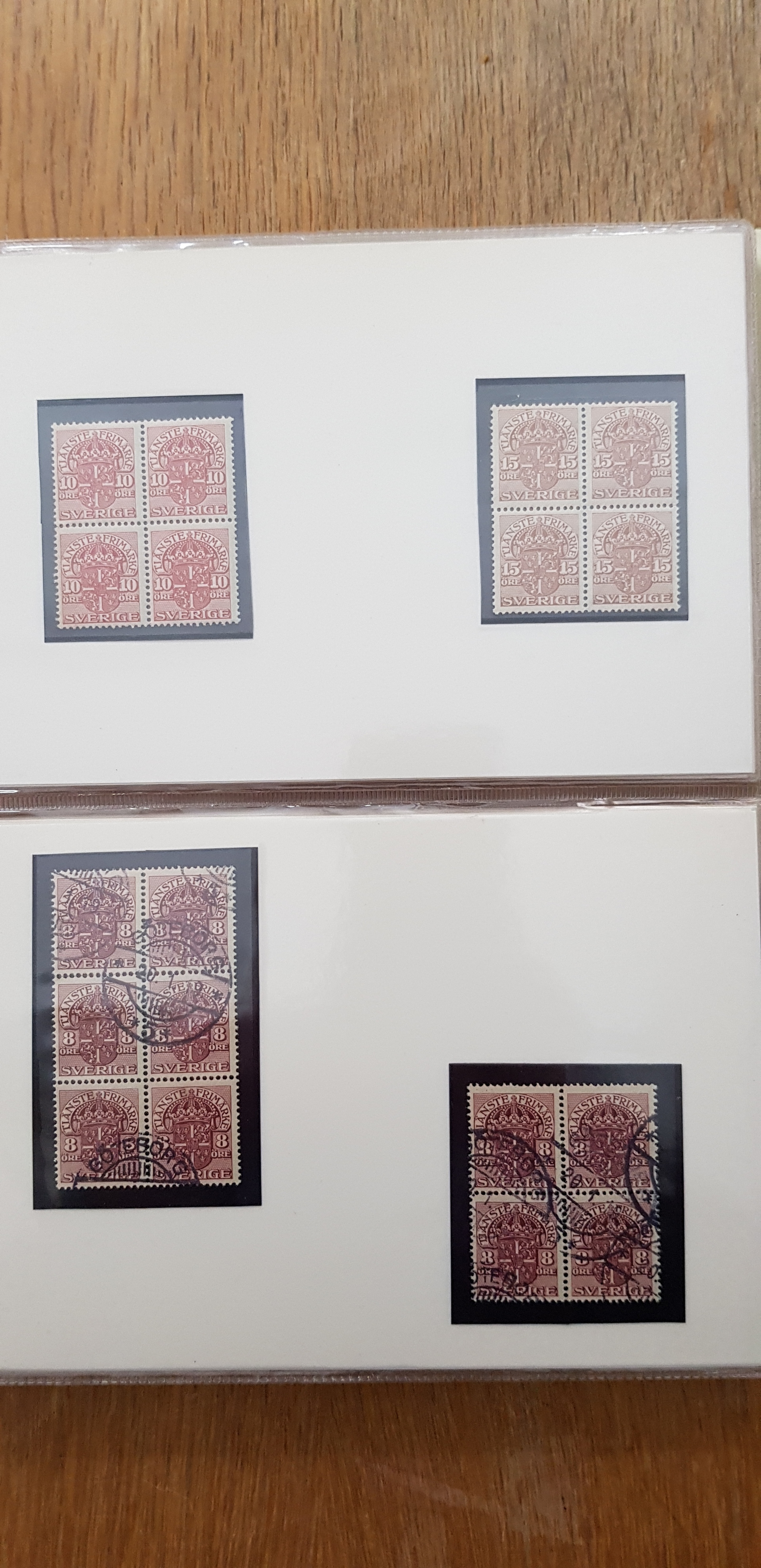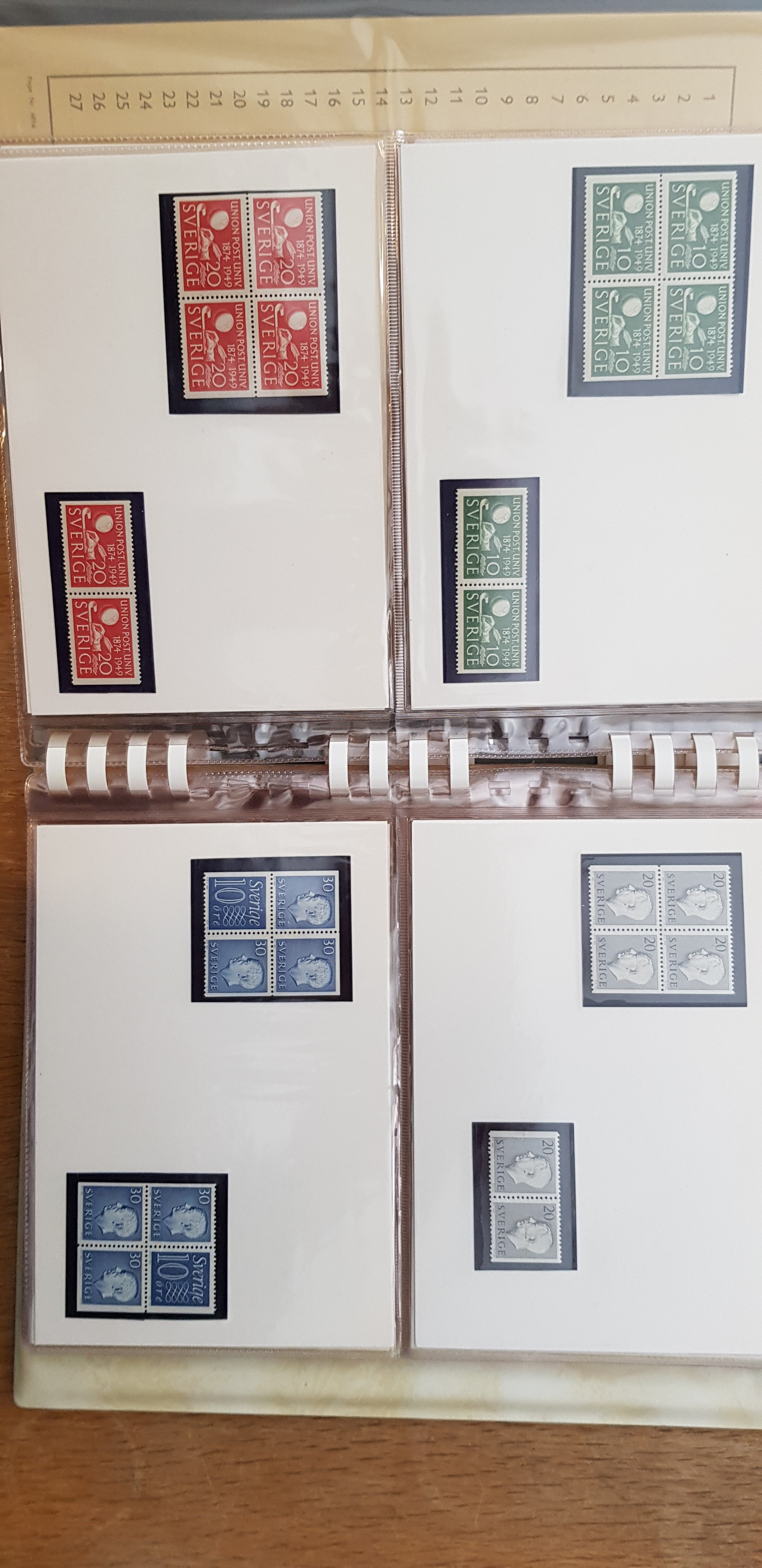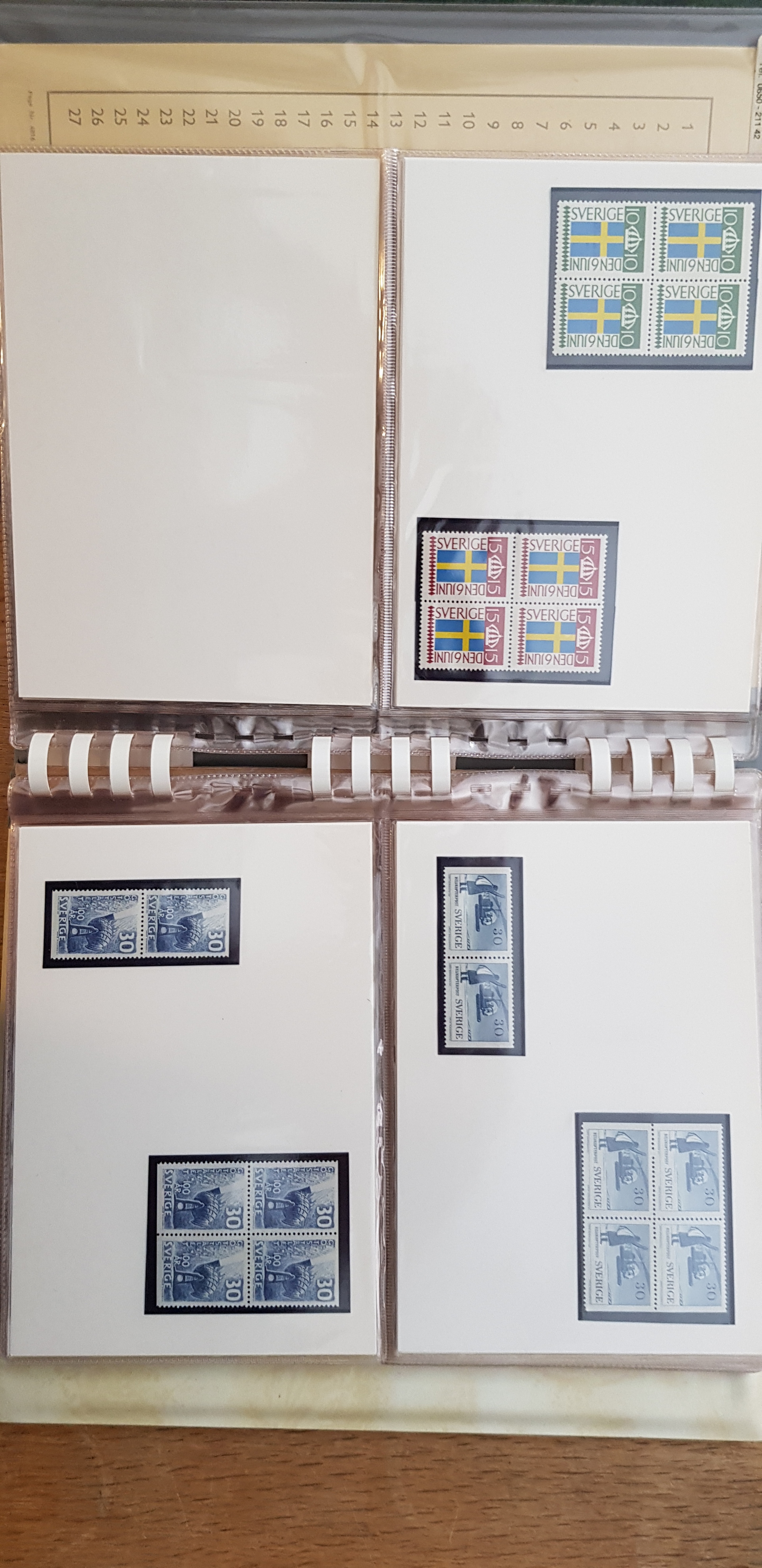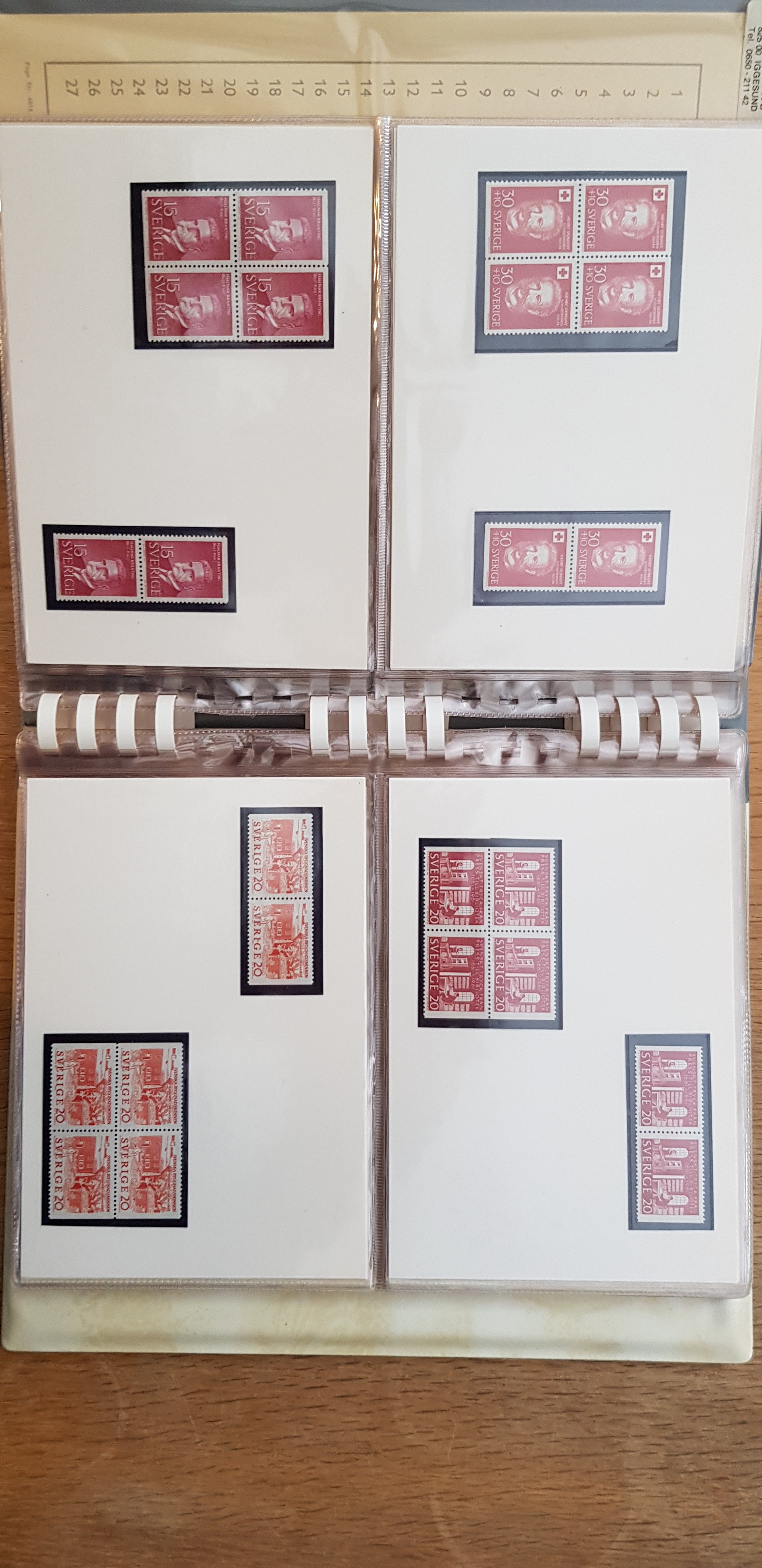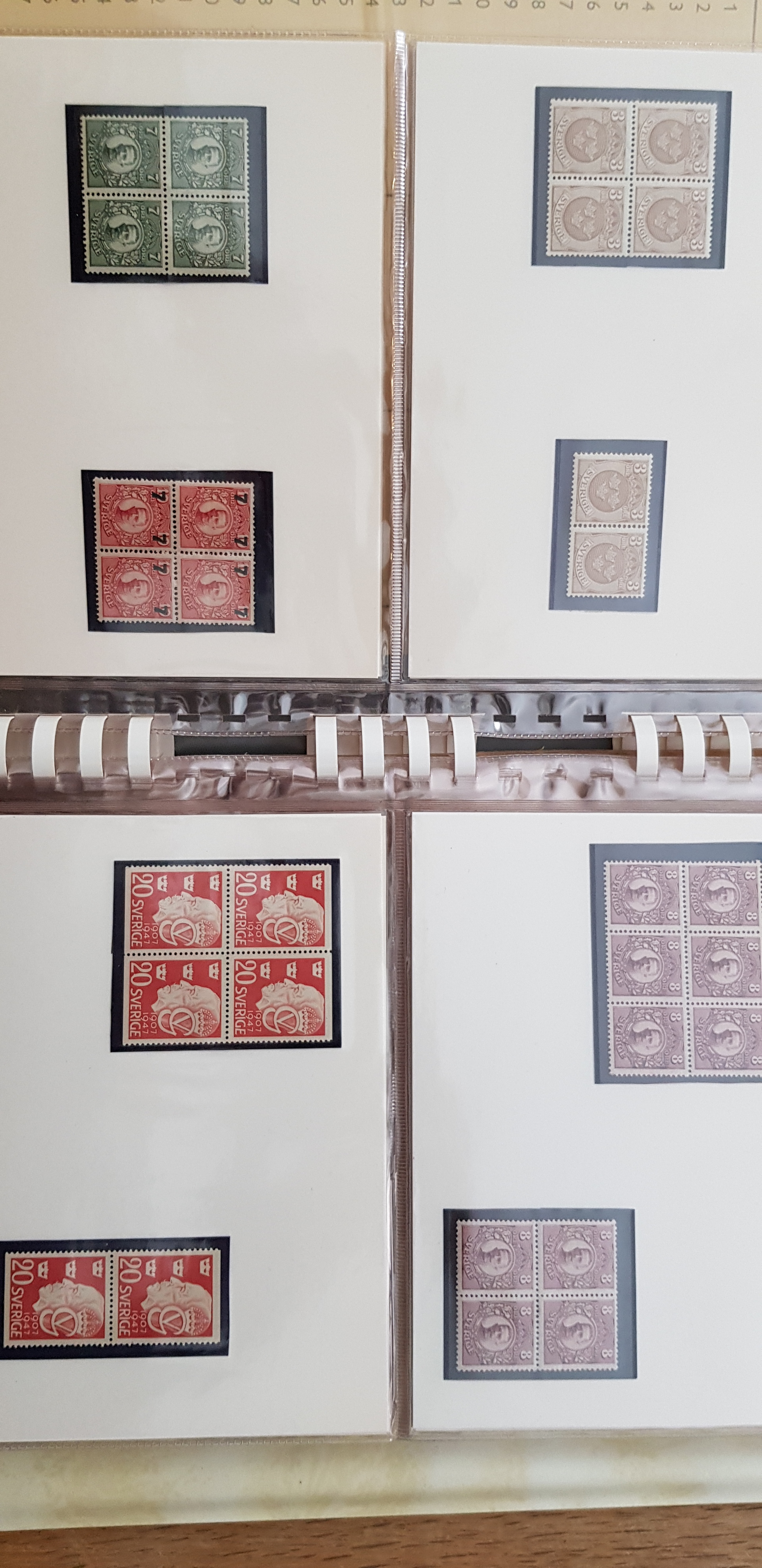 Sweden. Accumulation mostly ★★ 1800–1900 in album. 2 Facit albums that includes pages from 1855-2002 however without stamps. One album that contains of 4-bloocks and others unused stamps. Please see a selection of scans at www.philea.se. Mostly fine quality. (>200)