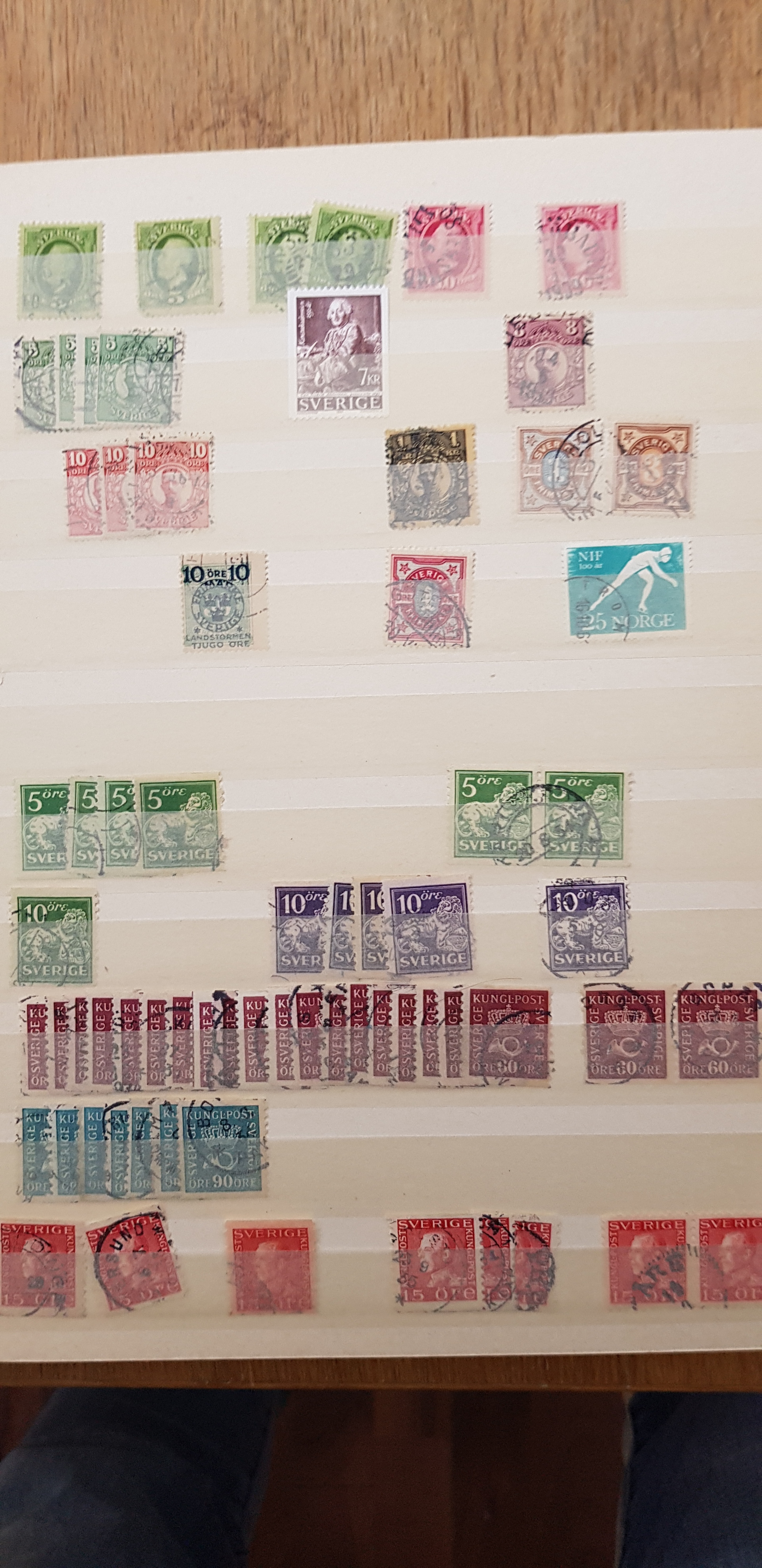 Sweden. Collection/accumulation used 1855–1974 in album. 2 Facit albums with Swedish stamps not so very well furnished. Three Stockbooks with a lot of stamps and then there are one box with duplicates. Please see a selection of scans at www.philea.se. Mostly fine quality. Approx. 7 kg.