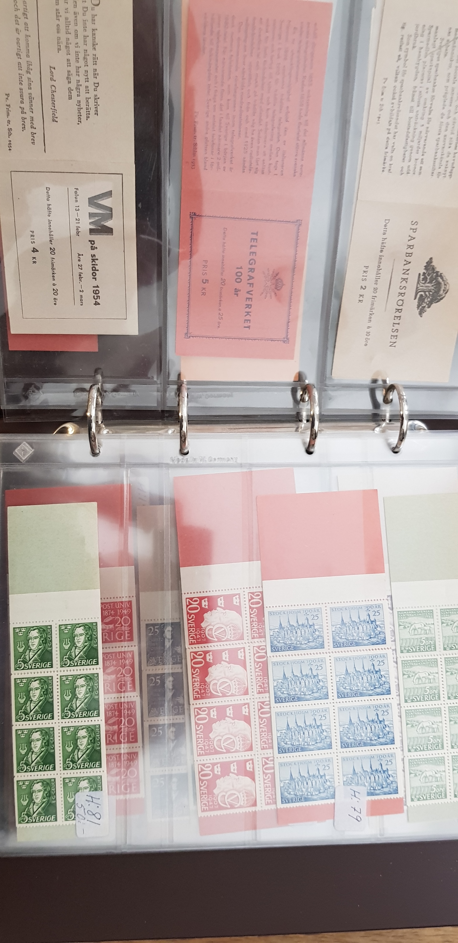 Sweden. Collection/accumulation ★★ 1940– in album. 2 albums with Booklets. The value according to the owner is for one album Facit 1500SEK. Please see a selection of scans at www.philea.se. Fine quality.