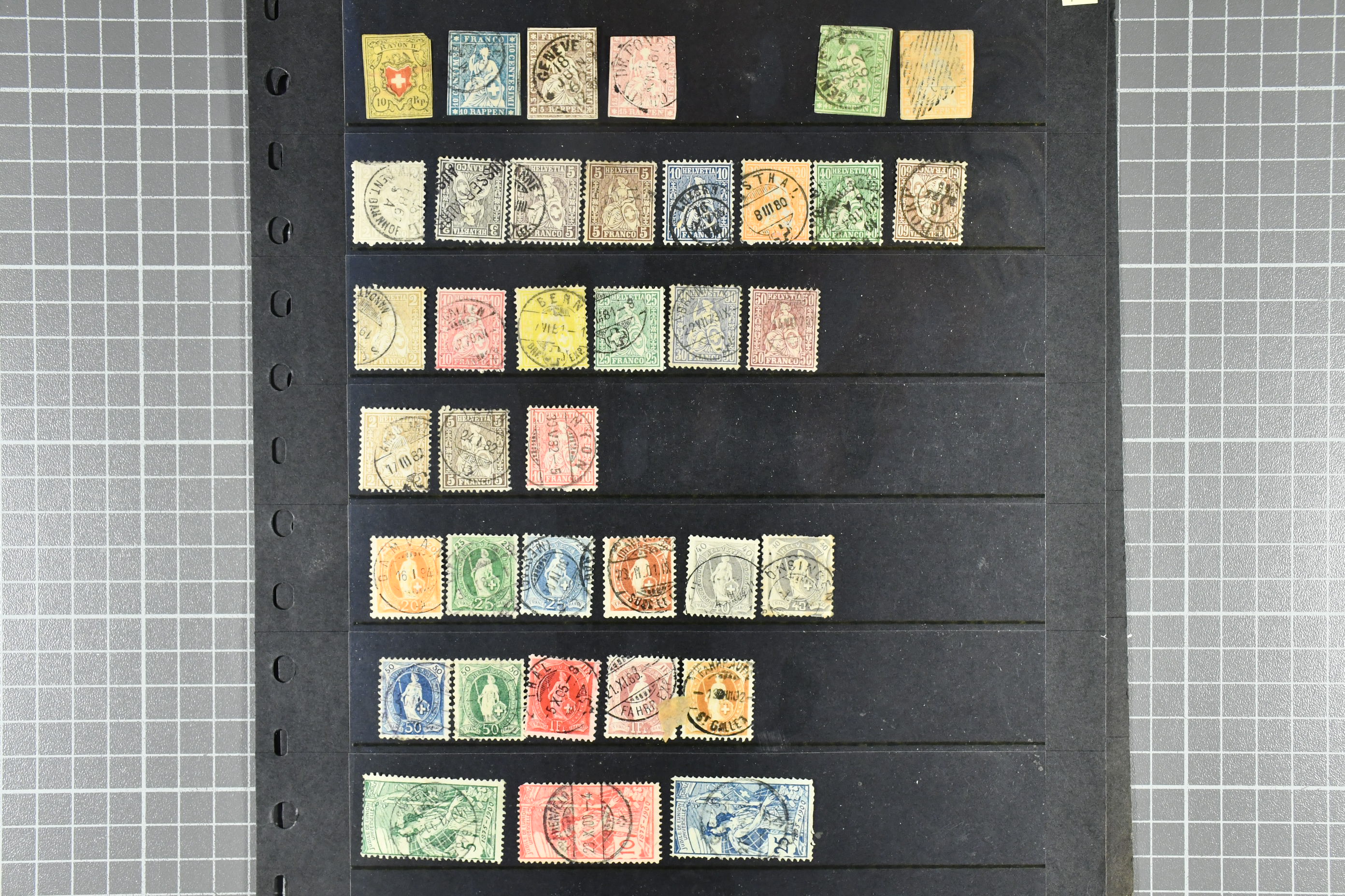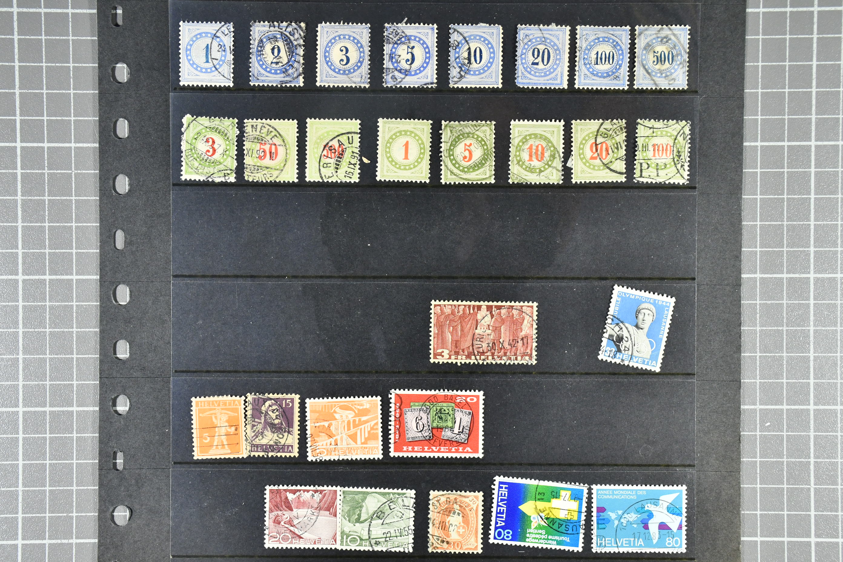 Switzerland. Accumulation mostly used 1850–1980 on visir leaves. Most of the material from the 19th century. Please see a selection of scans at www.philea.se. Somewhat mixed quality. (145)
