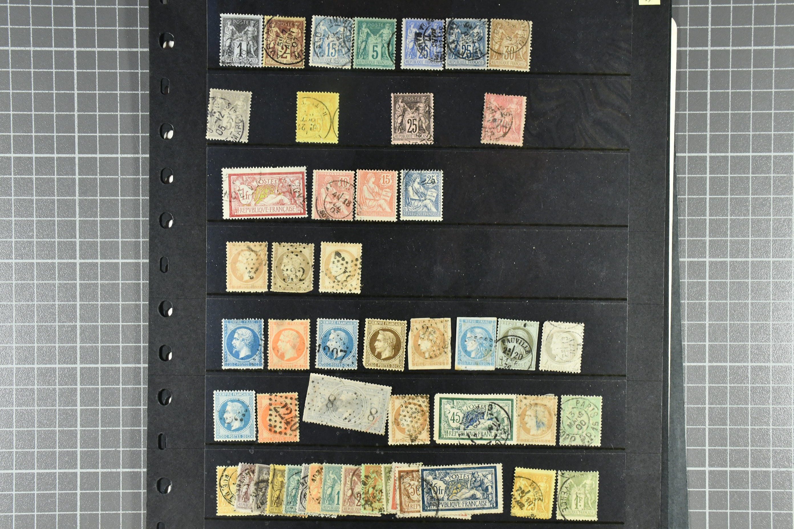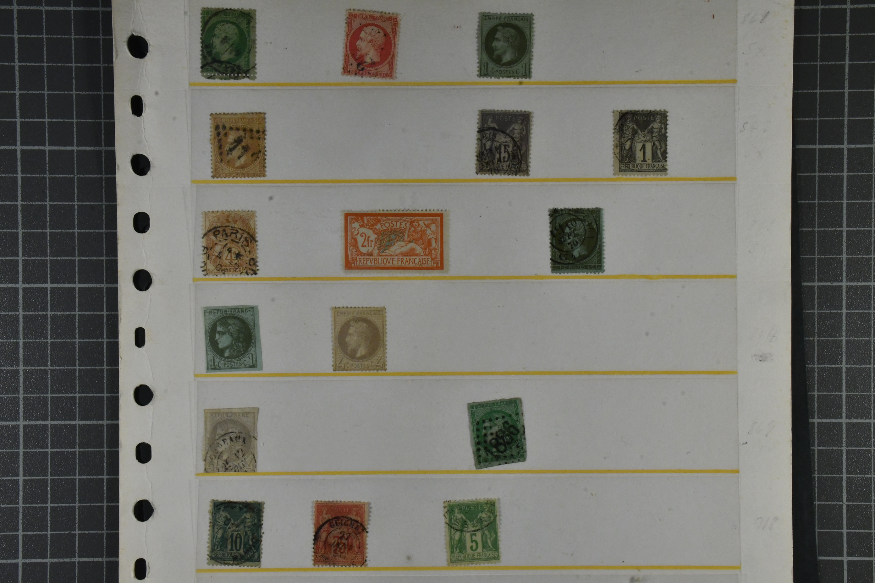 France. Collection/accumulation used 1850–1940 on visir leaves. Mostly 19th century. Please see a selection of scans at www.philea.se. Somewhat mixed quality. (105)