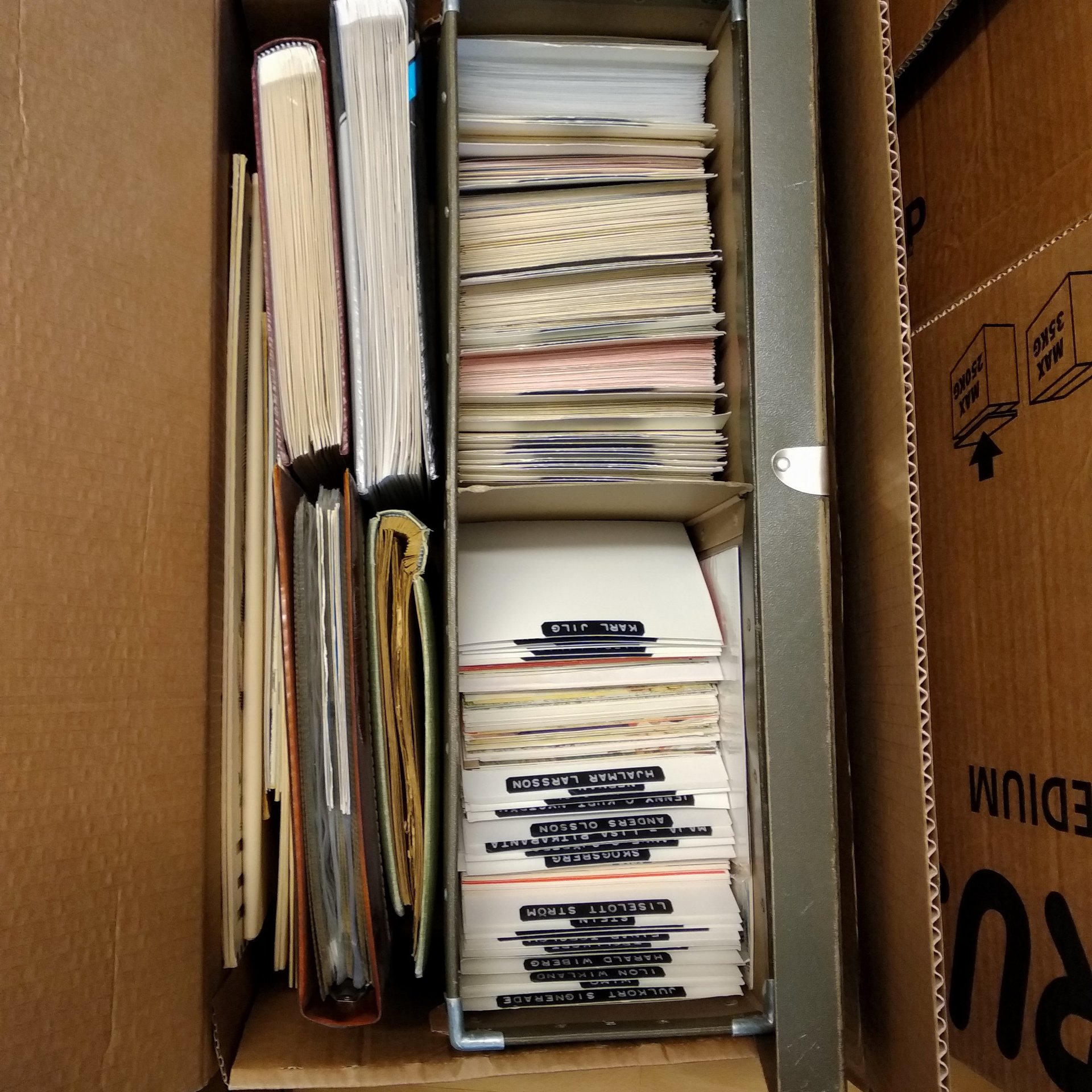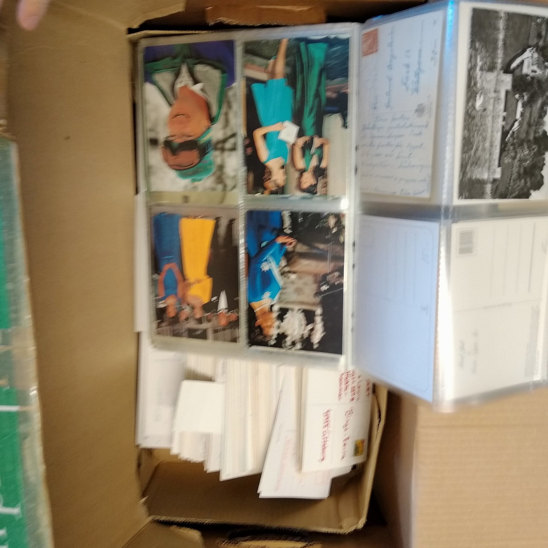 Sweden. Picture postcards, accumulation in two removal box. Thematics and signed ones in four boxes and albums, almost all in modern A6-format. Approx. 29 kg.