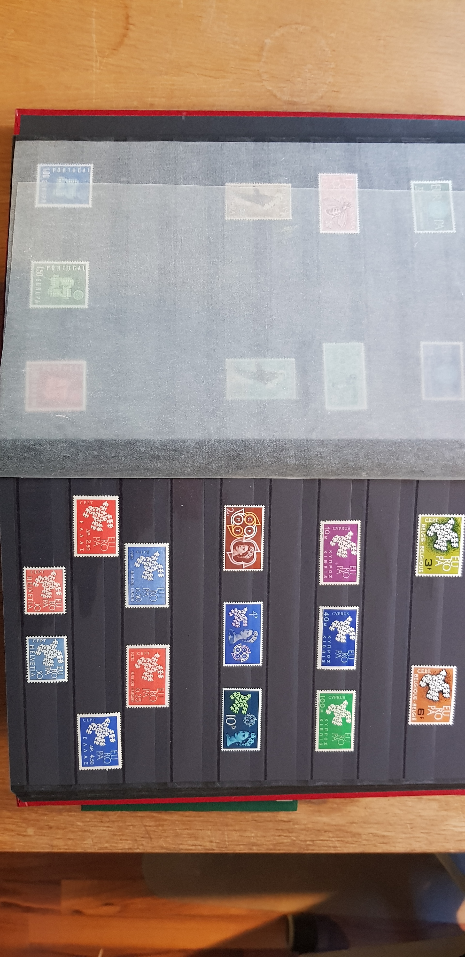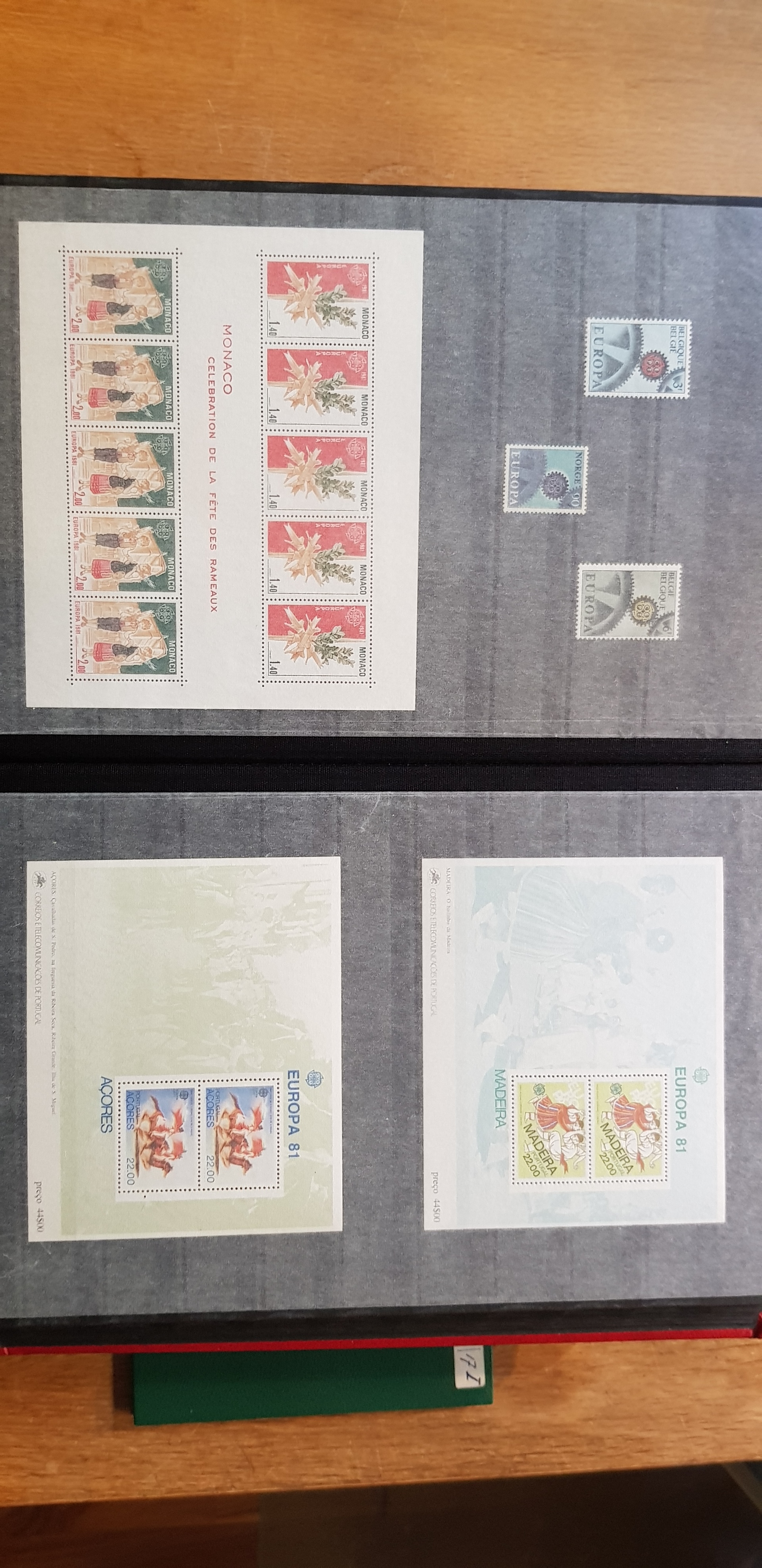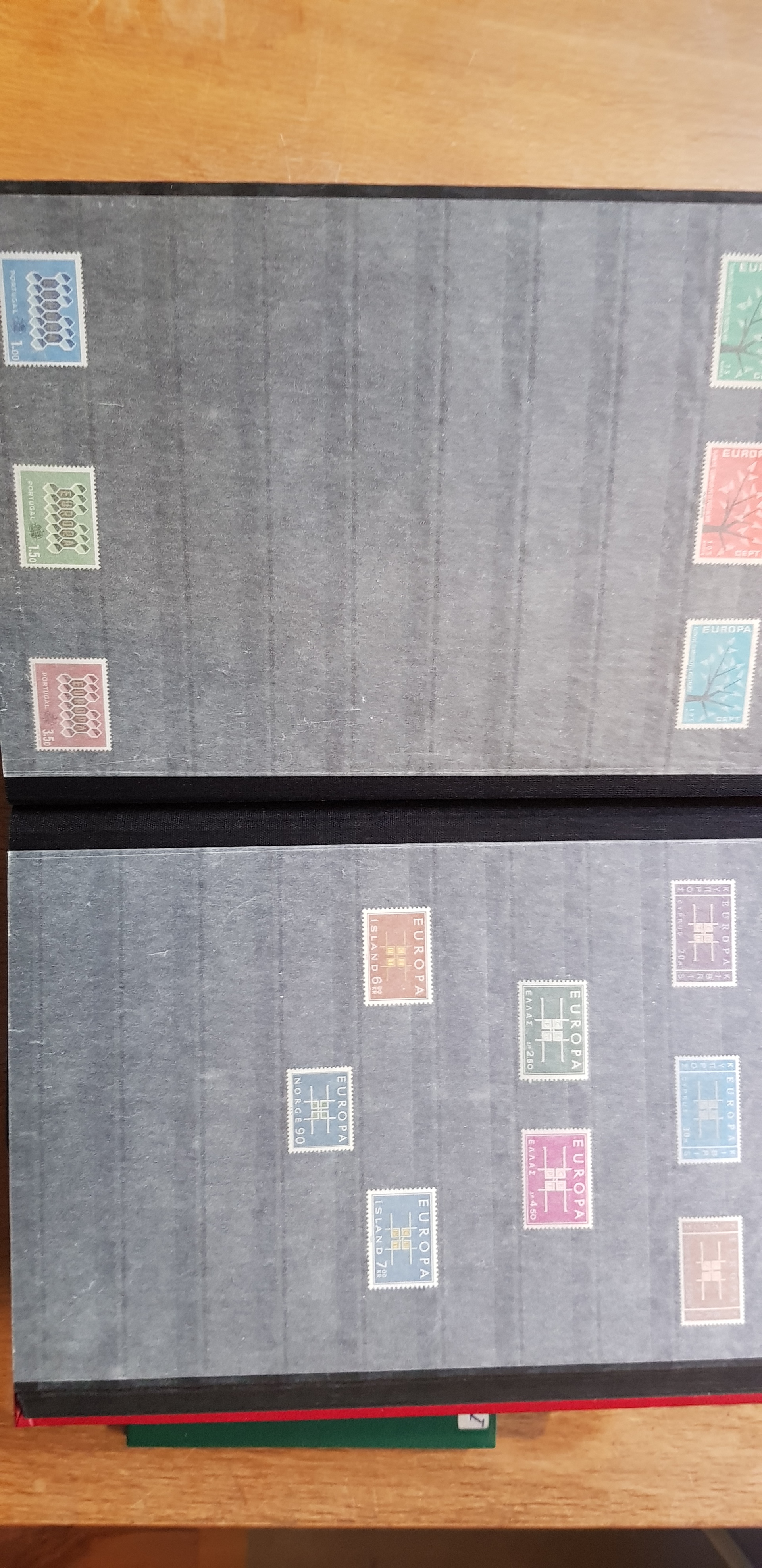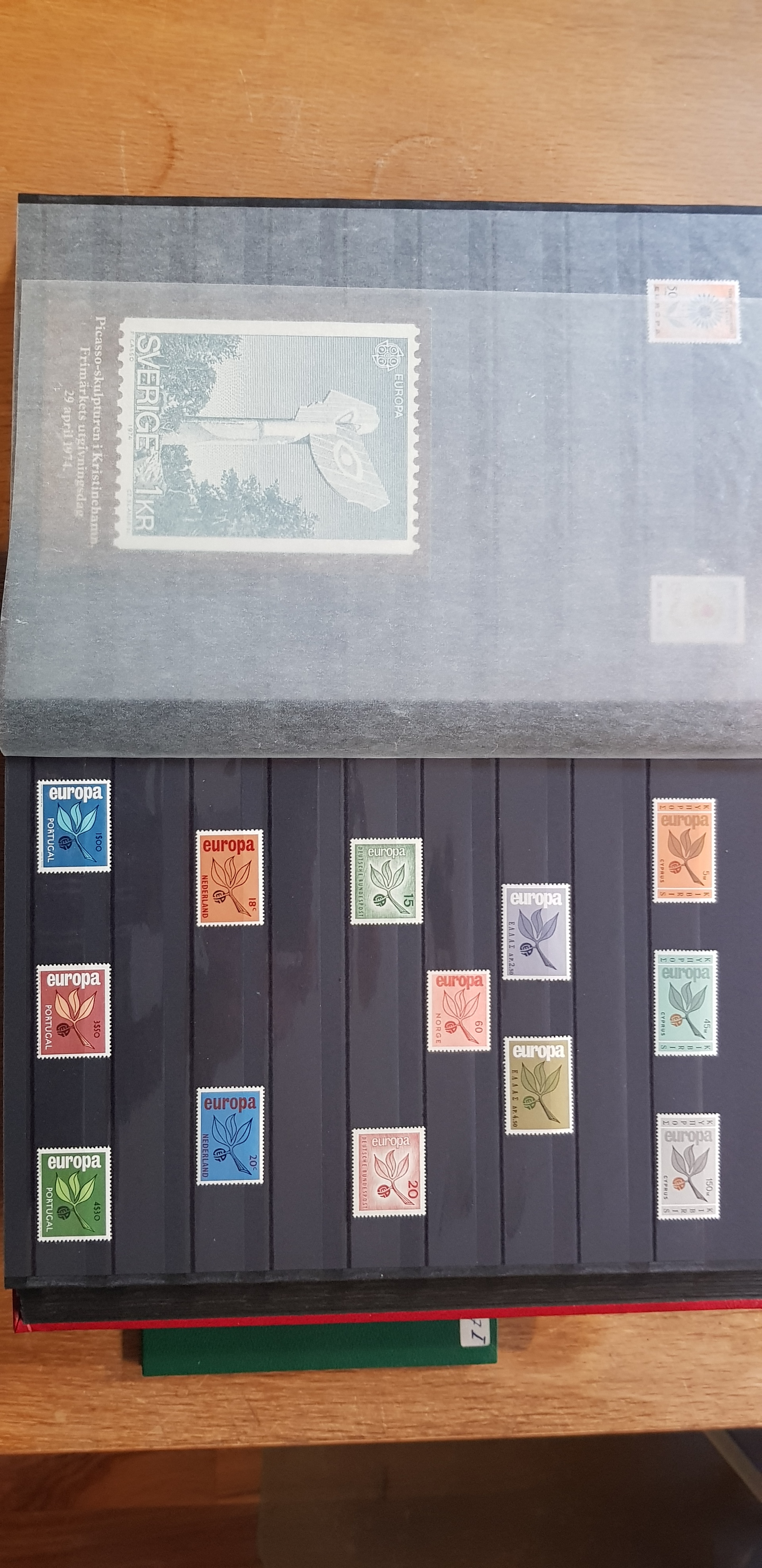 Thematics, Europa CEPT. Collection/accumulation mostly ★★ 1900s in box. Two albums that contains of European motive stamps, also the small album is full of stamps in this area. The third album contains off a lot of Booklets från Europe, souvenier sheets, also Swedish stamps of a Postage value of 330SEK! Mostly fine quality. (>500)