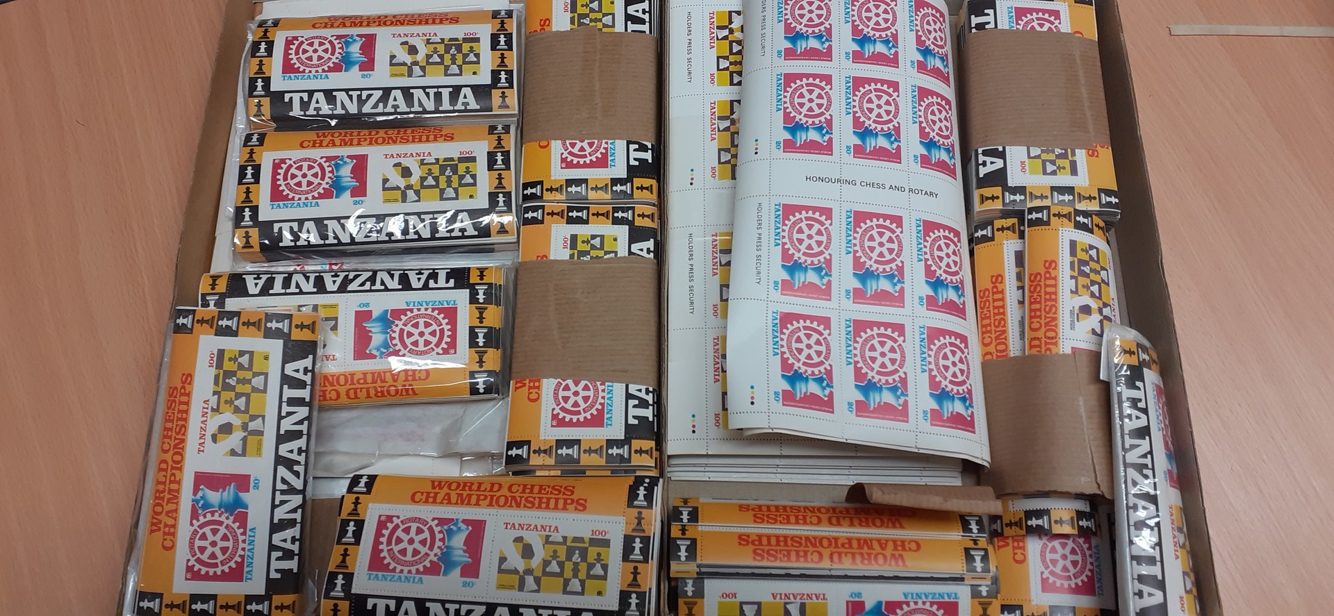 Tanzania. Michel 313–14 ★★, 1986 Chess SET (2). CHESS LOVERS LOT, about 1000 souvenier sheets of this issue (s/s 54) and probably about the same amount in sets. The s/s is represented both perf. and imperf.