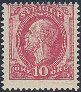 Sweden. Facit 39b ★, 1885 Oscar II, letterpress 10 öre red-carmine, type II. Almost invisible shade in gum. SEK 1800