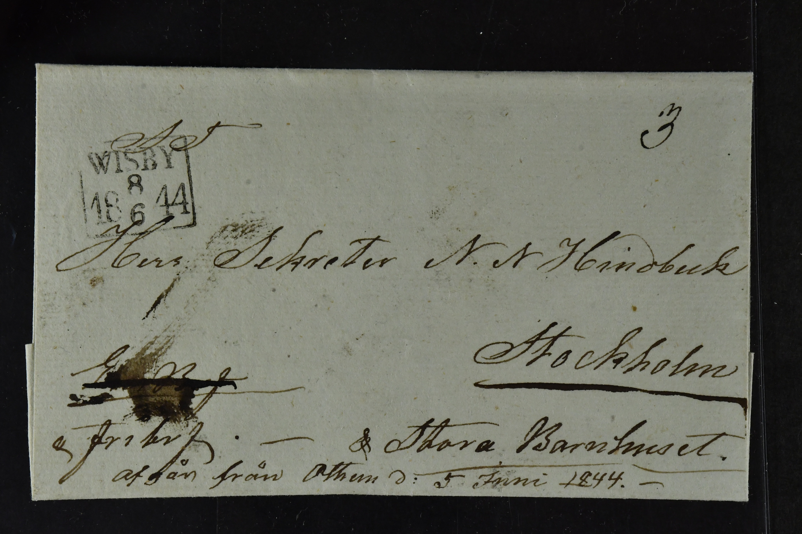 Sweden. Prephilately. Three covers sent from Gotland – WISBY 21.6.1838, 8.6.1844 and SLITE 27.1.1858 to Stockholm, respectively. Excellent quality.