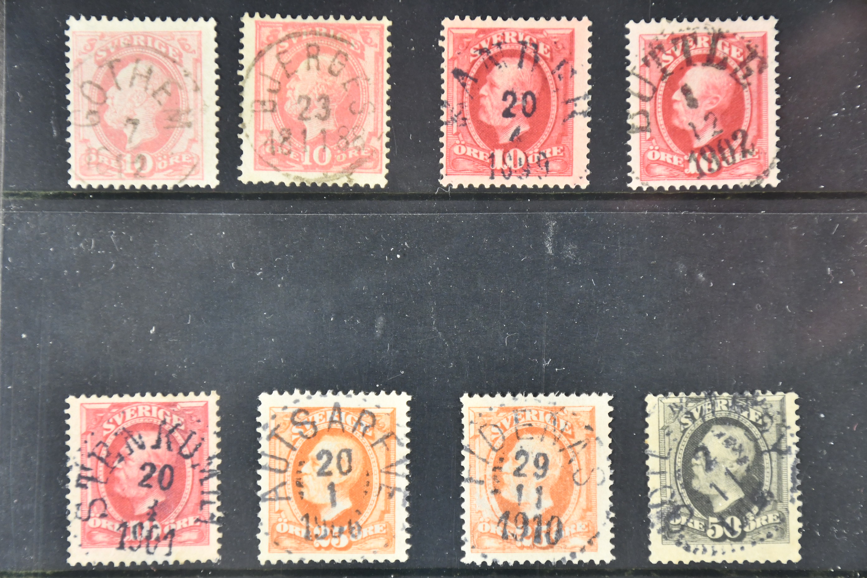 Sweden. Cancellations. GOTLAND. Eight O II stamps, cancelled GOTHEM, BJERGES, BANDER, BUTTLE, STENKUMLA, AUTSARFVE, FIDENÄS and GOTL. KARBY. Mostly superb cancellations.
