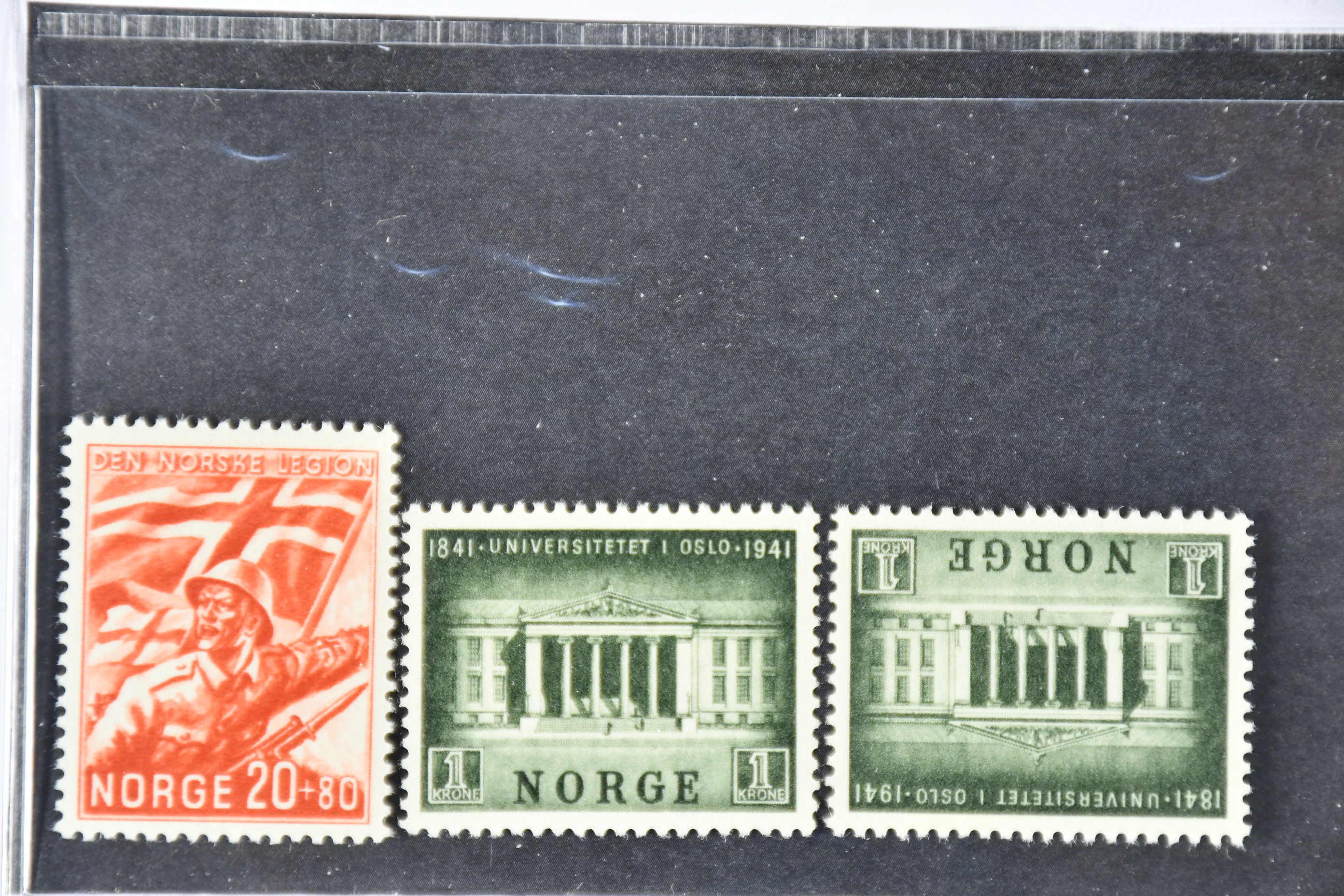 Norway. Facit 265 ★★, 1941 For the Norwegian Legion 20+80 øre red and Centenary of the Oslo University 1 Kr olive-green, 2 copies (3). SEK 2000