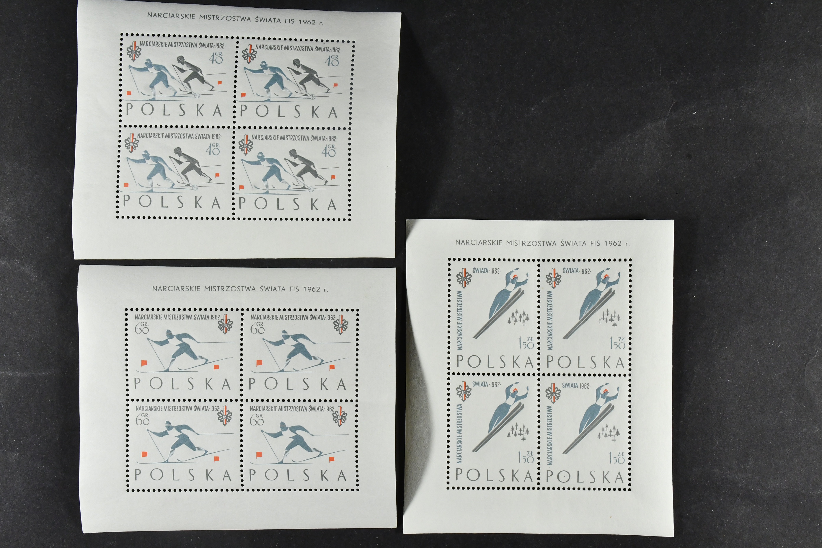 Poland. Michel 1294–96C ★★, 1962 Ski World Champ. I SET perf 11 × 11½ in block of fours (3×4). EUR 200