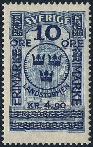 Sweden. Facit 125 ★★, 1916 Landstorm II 10+4,90 / 5 kr blue. SEK 1800