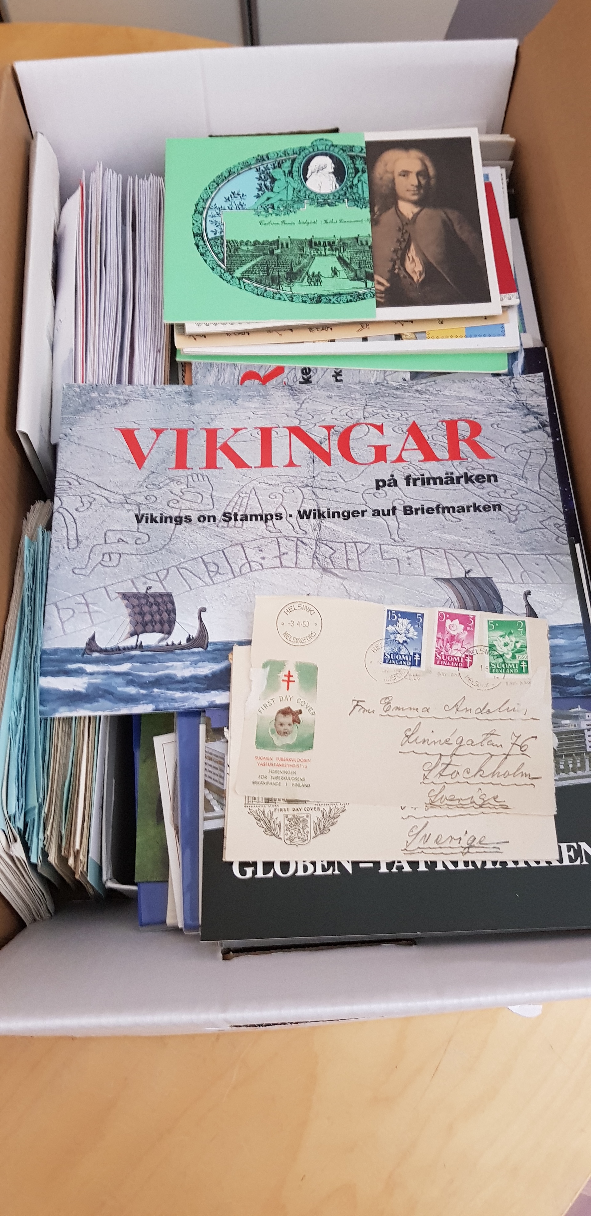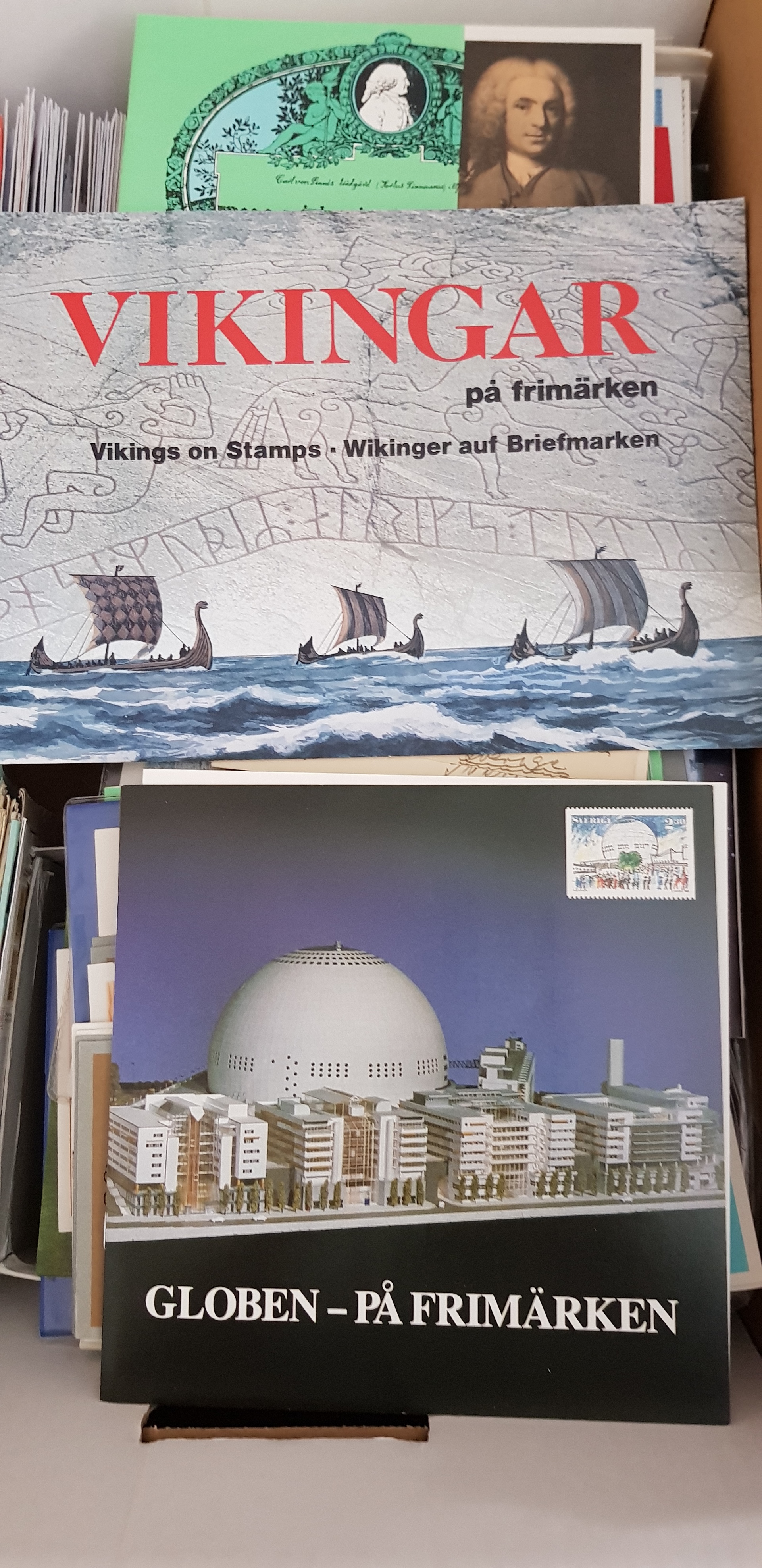Sweden. FDCs, collection/accumulation 1960–2000 in box. A box with a lot of FDC and all sorts of memory sheets, books and leaves including unused stamps. Please see a selection of scans at www.philea.se. Mostly fine quality. Approx. 9 kg.