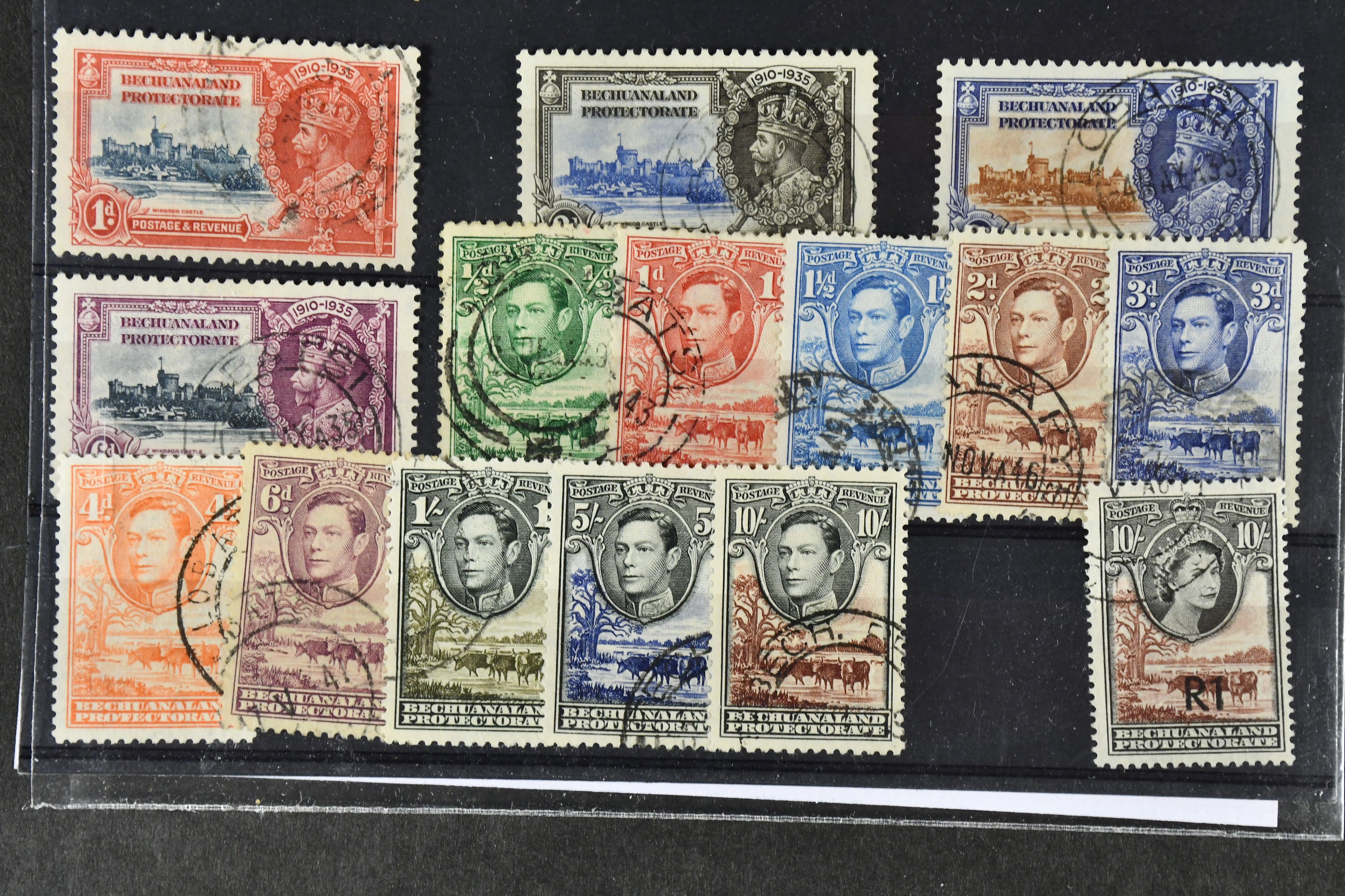 Bechuanaland. Lot used 1935–61 on stock cards. Including the Silver Jubilee set from 1935 (SG 111-114). Fine quality. (15)
