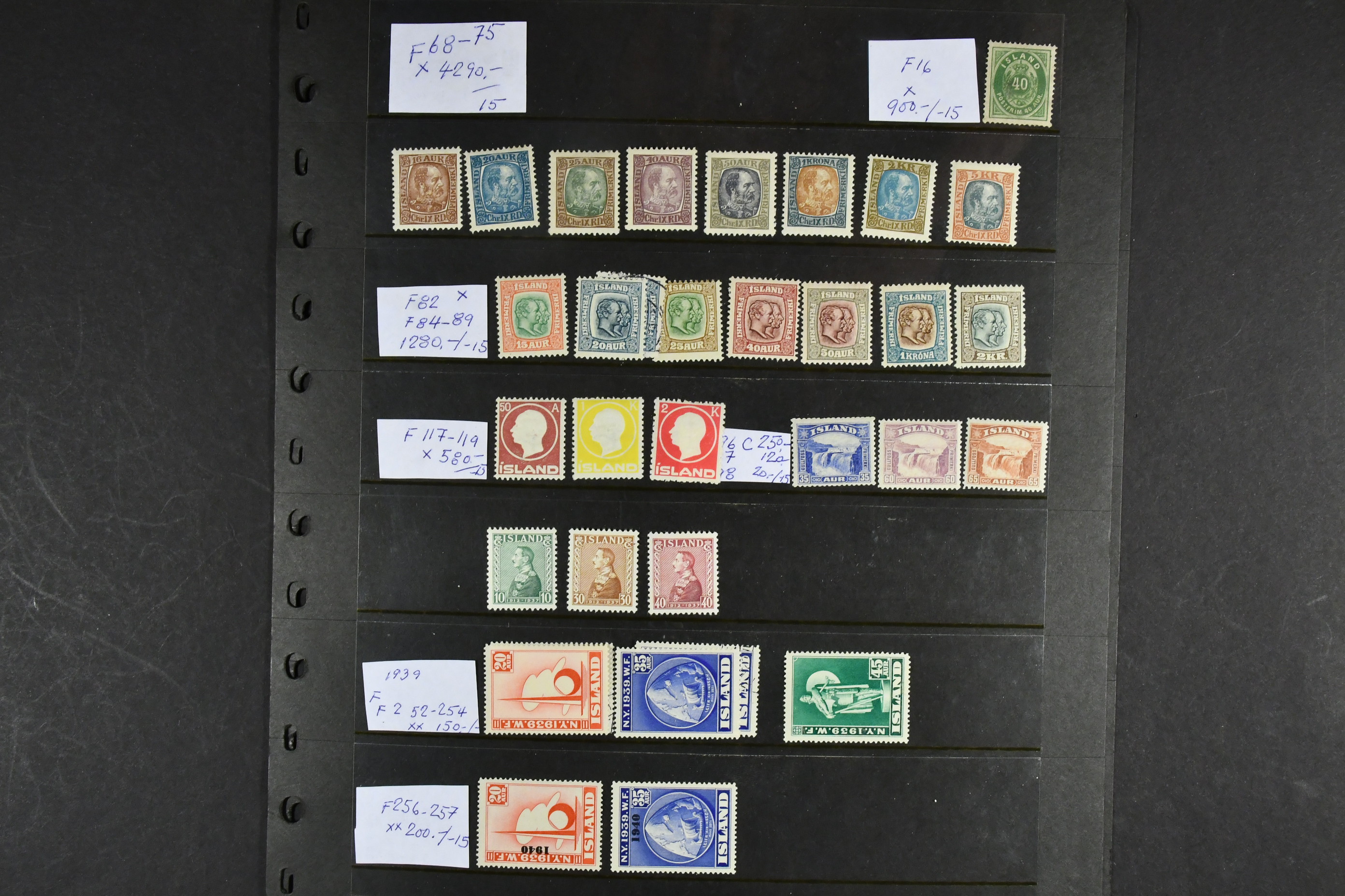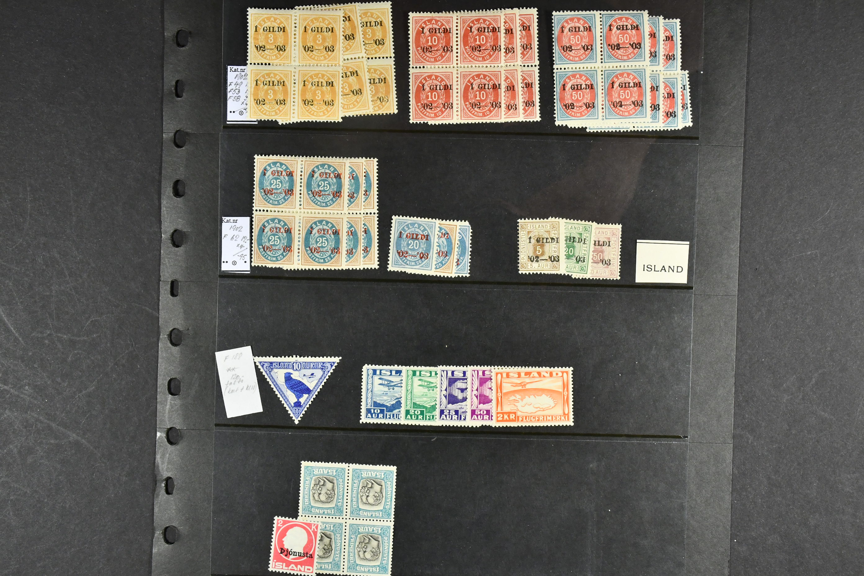 Iceland. Accumulation ★★/★ 1902–58 on six visir leaves. The entire lot is presented at www.philea.se.