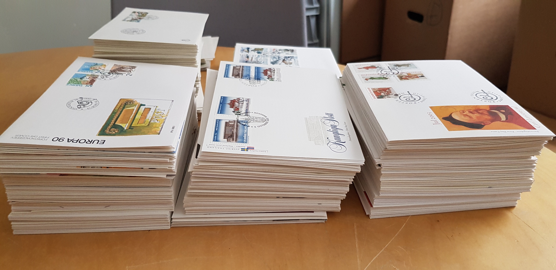 Sweden. FDCs, accumulation 1967–2005 in box. One box that contains of a lot of FDC both loose ones and in two albums. Also one album tha includes stamps as well. Please see a selection of scans at www.philea.se. Mostly fine quality. Approx. 8 kg.