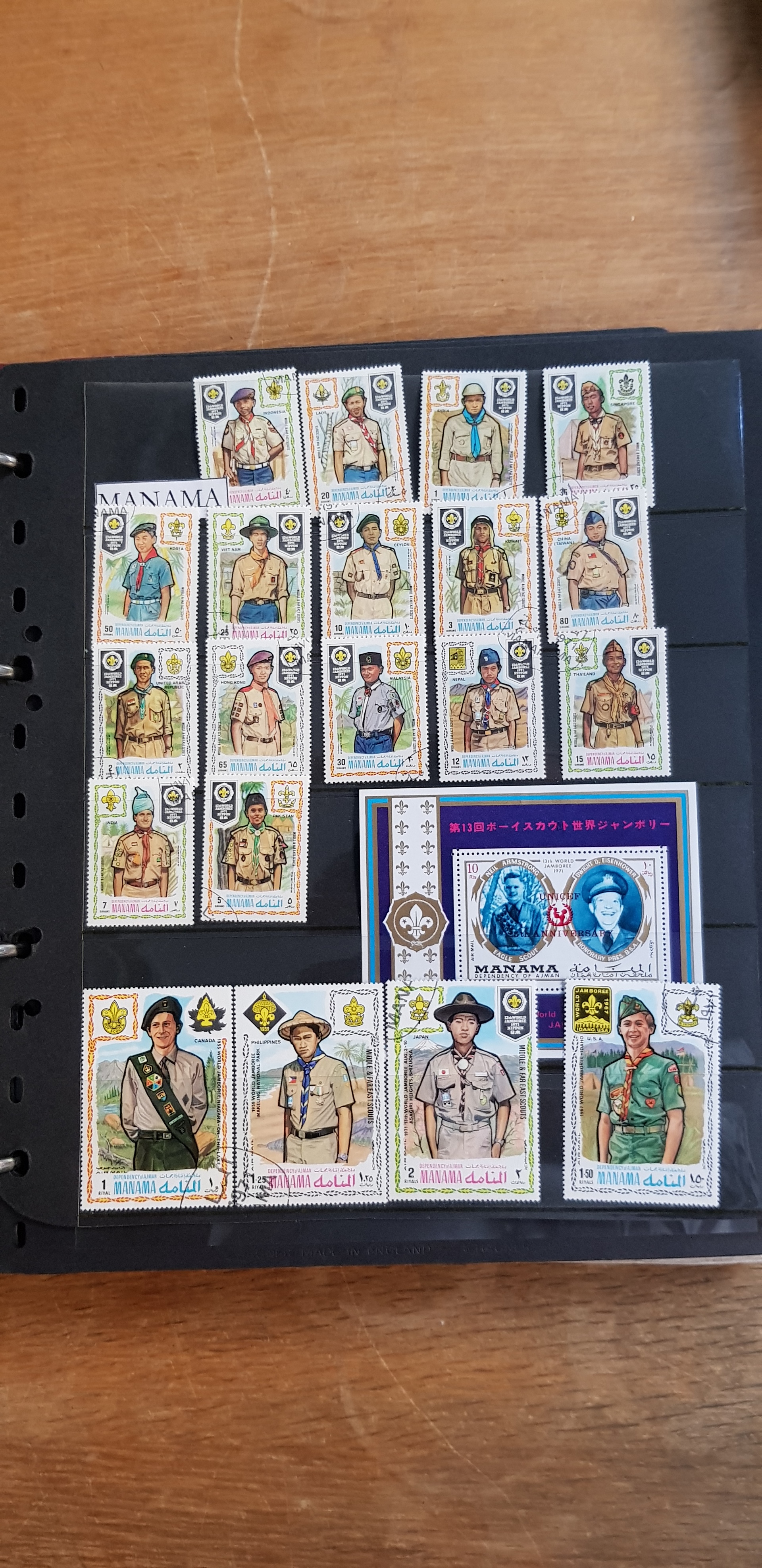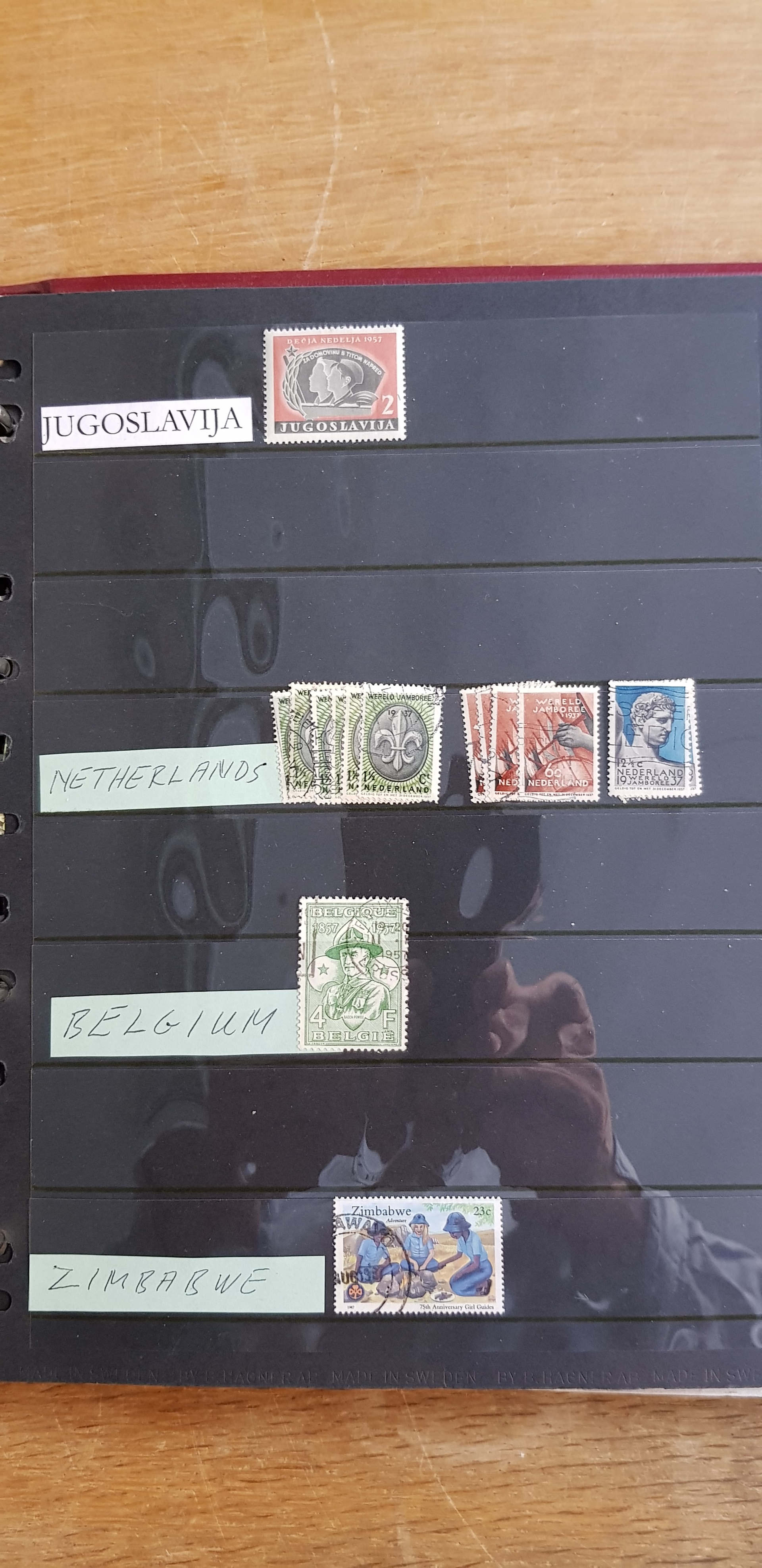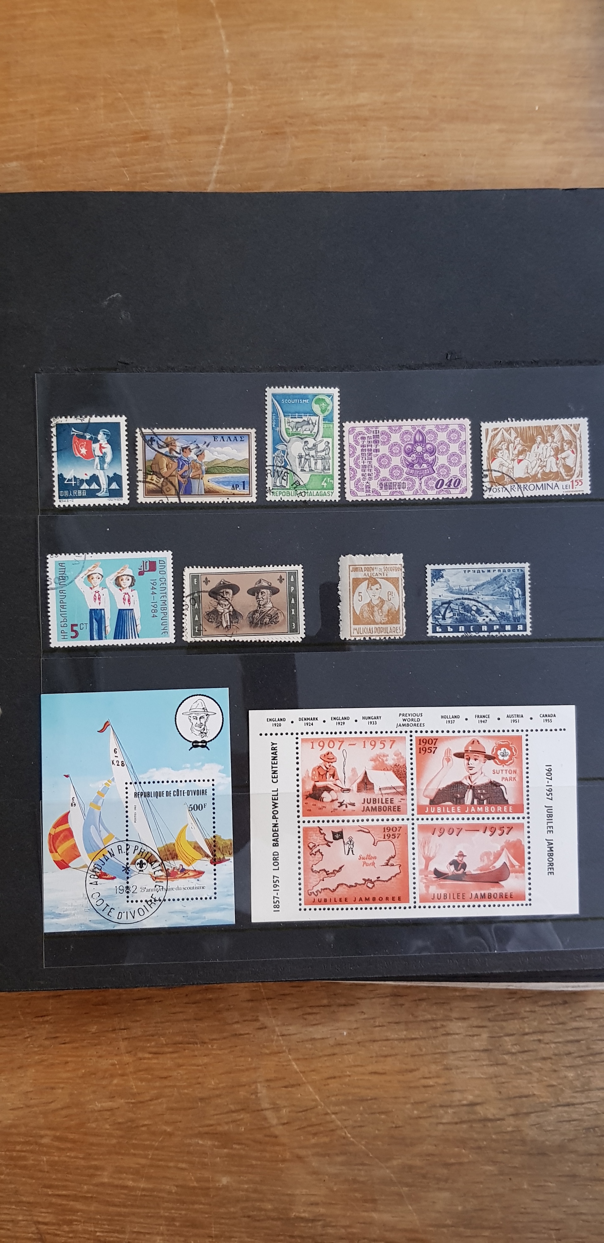 Thematics, Scouting. Collection mostly used 1900s in visir album. One album that are very well equiped with nice stamps. 2 plugg in albums that has nothing in it . Please see a selection of scans at www.philea.se. Mostly fine quality. (>300)
