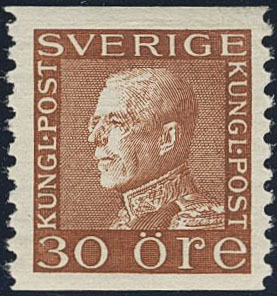 Sweden. Facit 186f ★★, 30 öre brown vertical perf 9¾ on white paper (A3). SEK 6000
