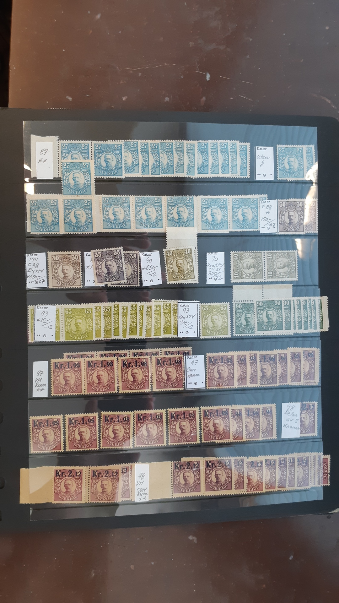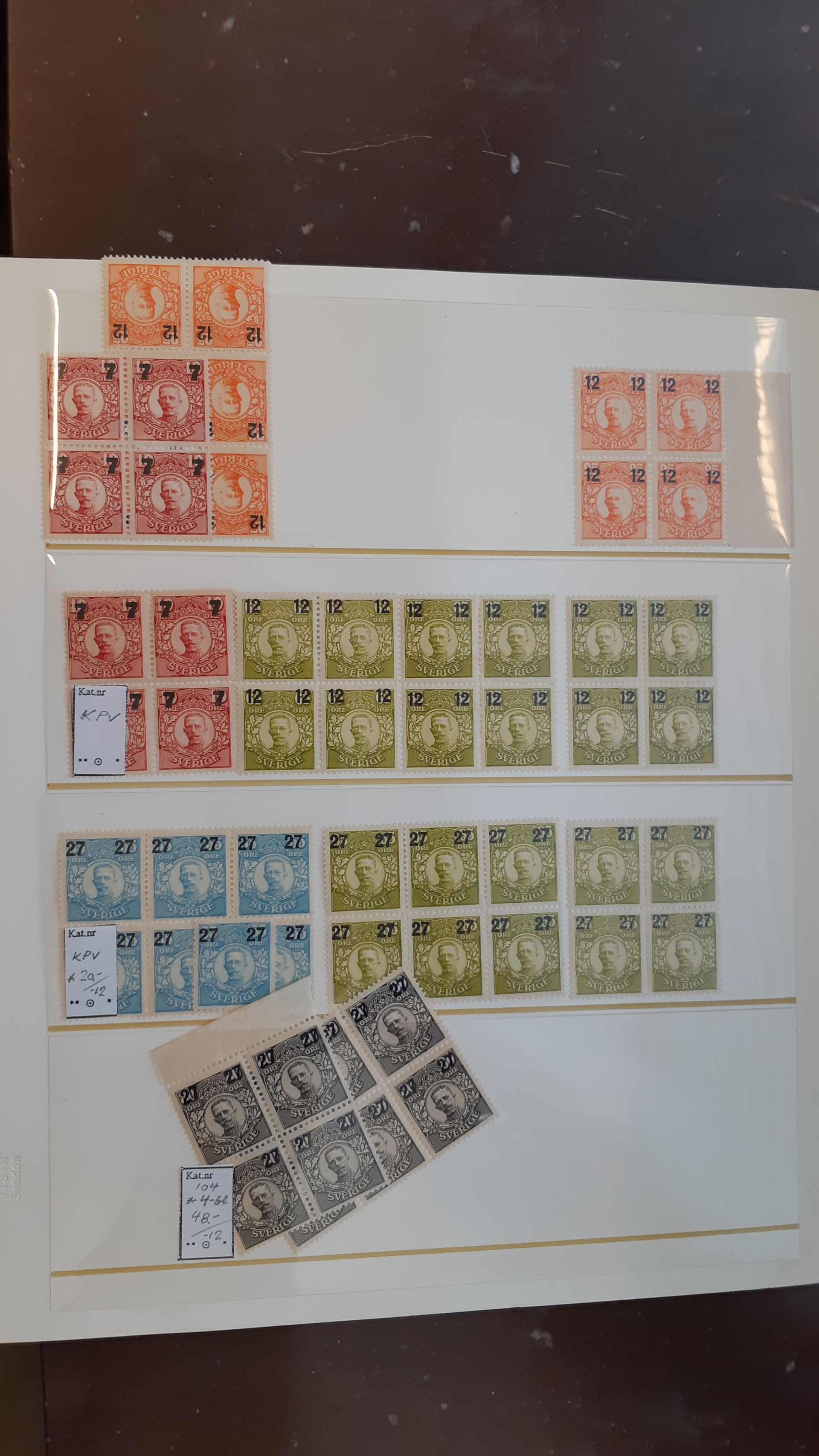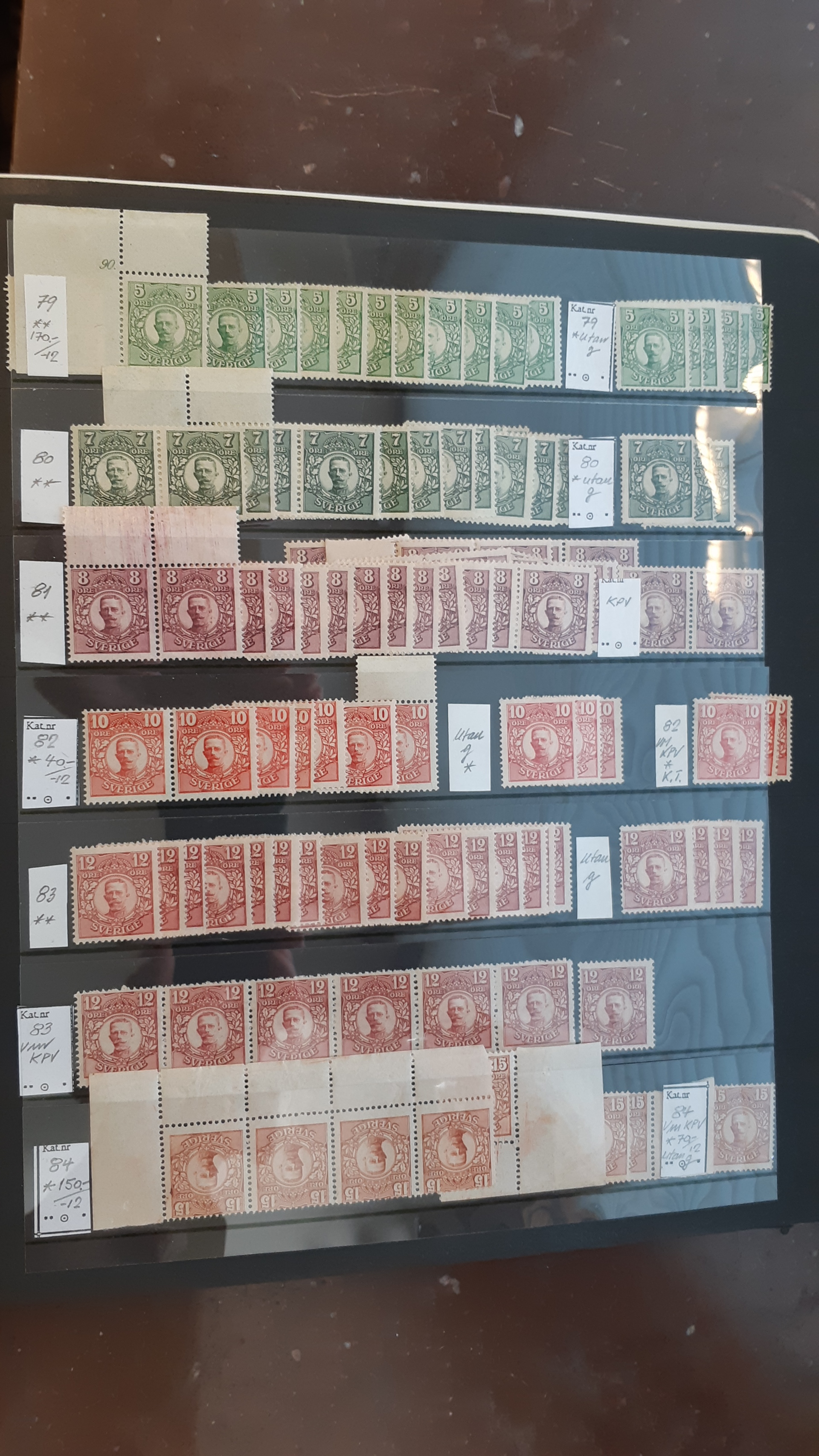 Sweden. Collection/accumulation ★★/★/⊙ GUSTAF V in medallion on visir leaves. Duplicate stock incl. watermarks, blocks and larger parts of sheets, etc. Mostly good quality. (700)