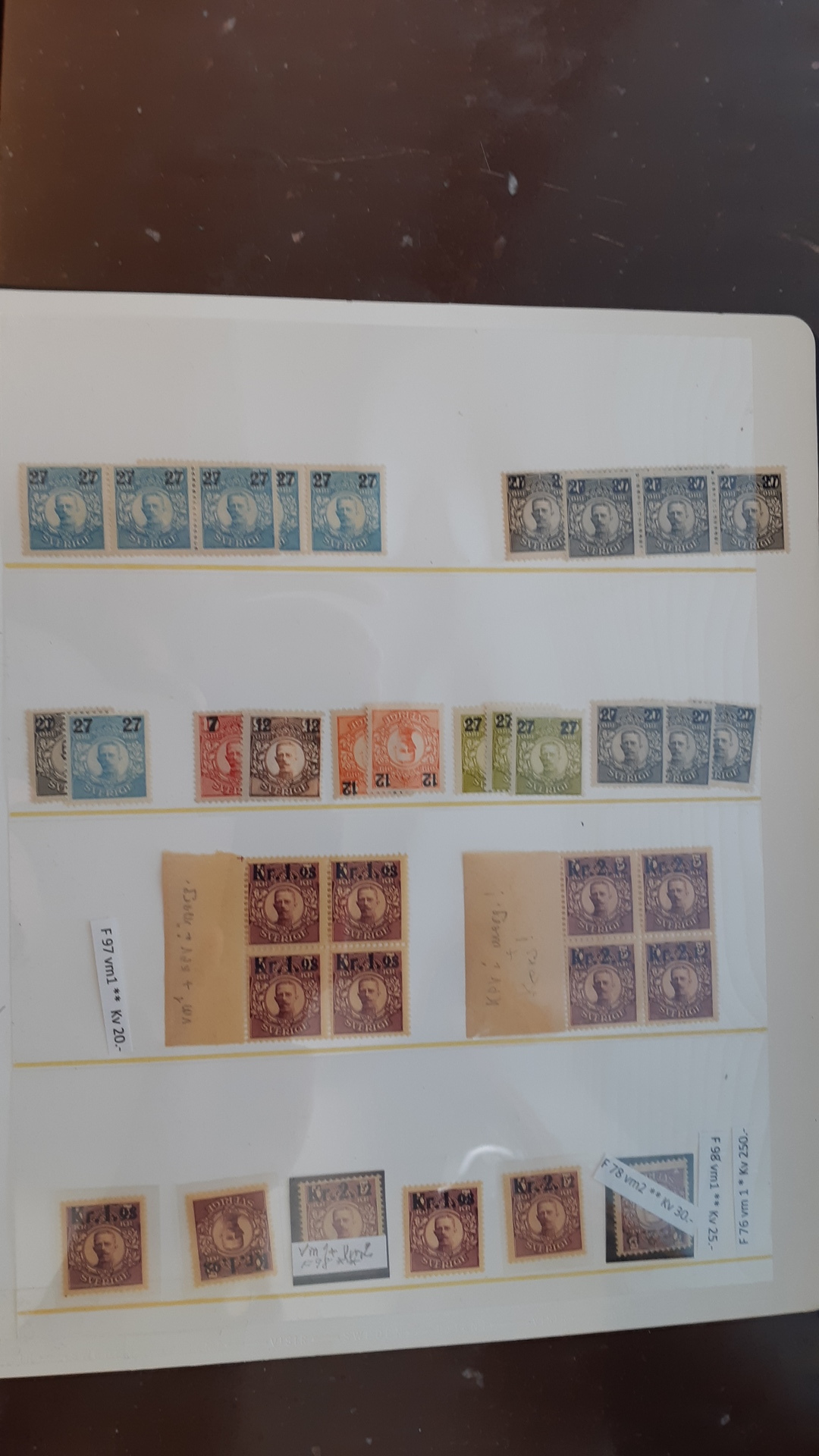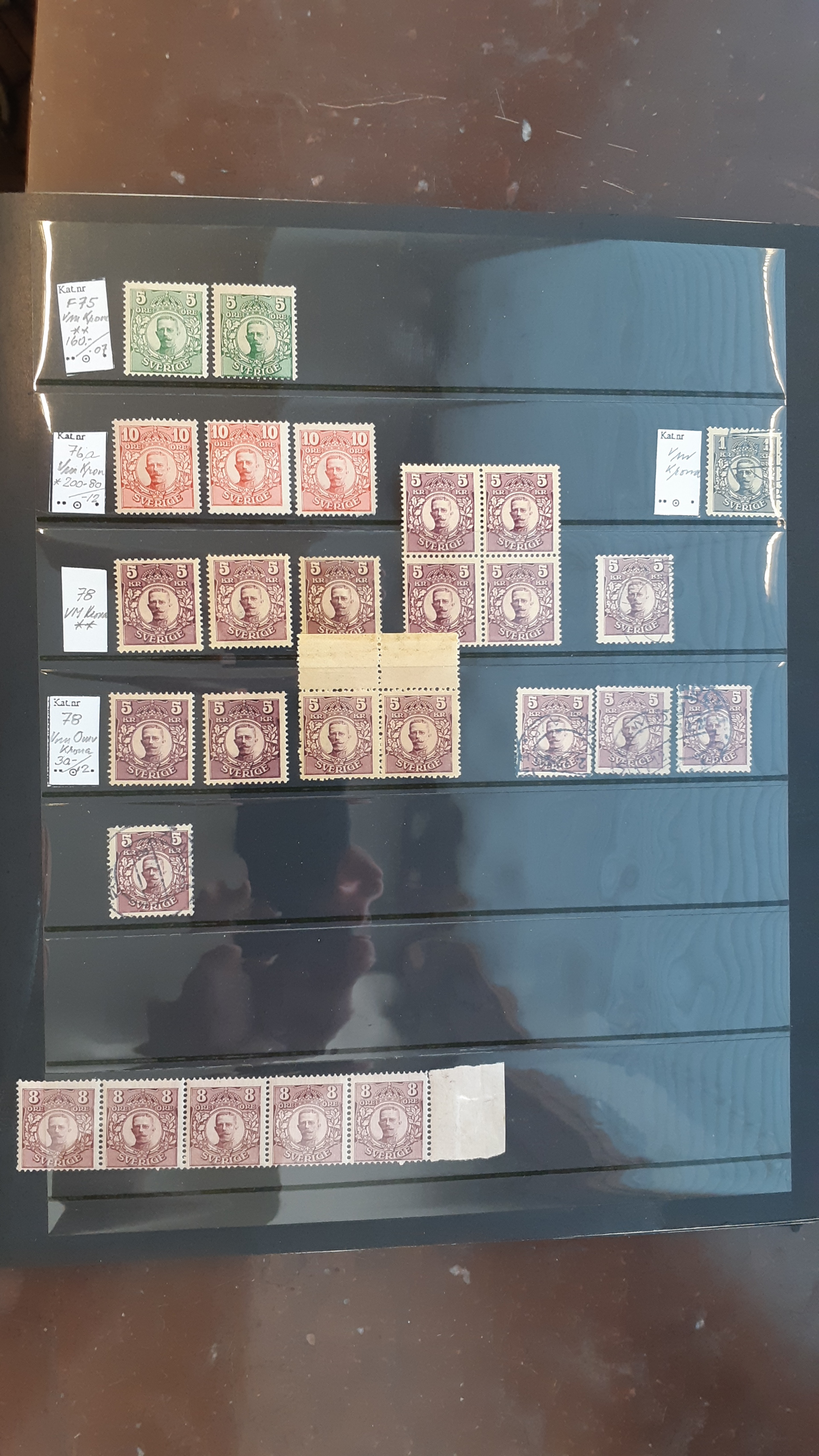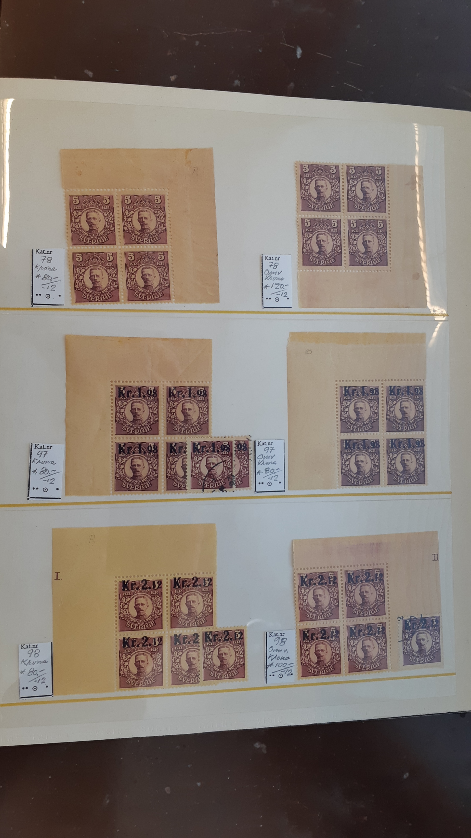 Sweden. Collection/accumulation ★★/★/⊙ GUSTAF V in medallion on visir leaves. Duplicate stock incl. watermarks, blocks and larger parts of sheets, etc. Mostly good quality. (700)