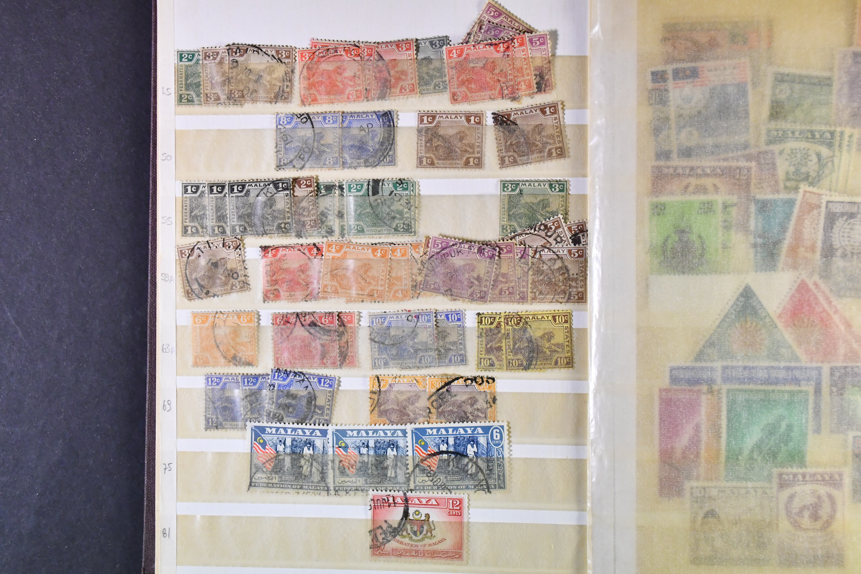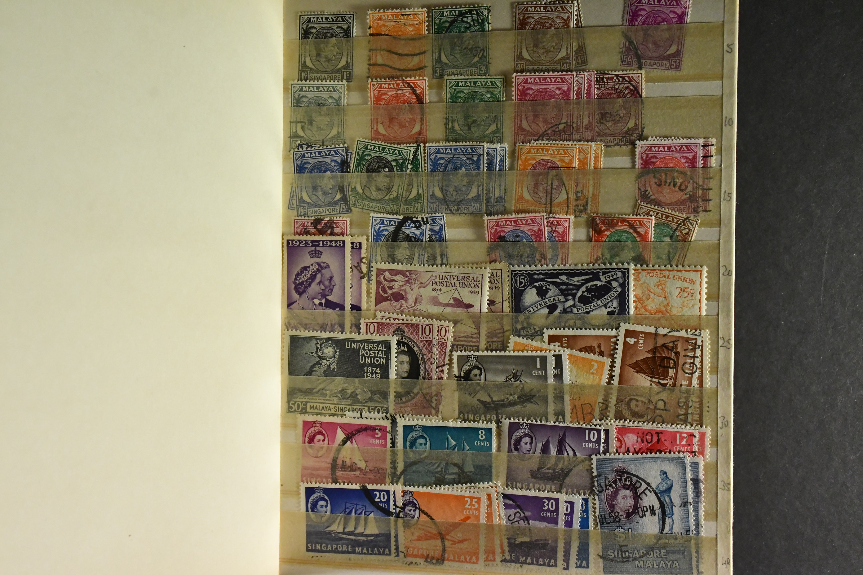 Malaysia. Collection/accumulation mostly used Classics–1980s in four smaller size stockbboks. E.g. Straits settlements, various Malayan States, modern Malaysia and also Singapore. Better values included. Mostly fine quality. (2000-2500)