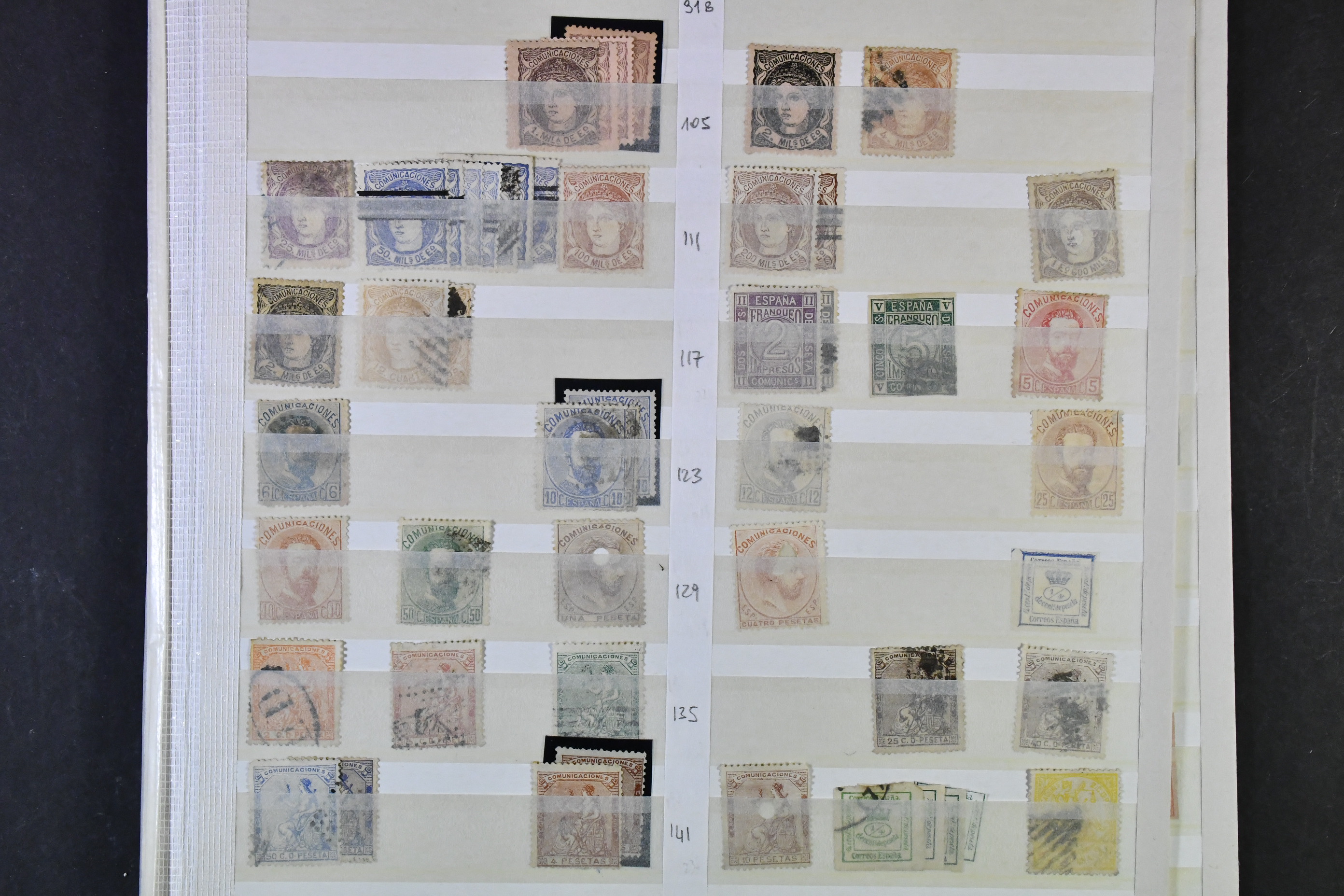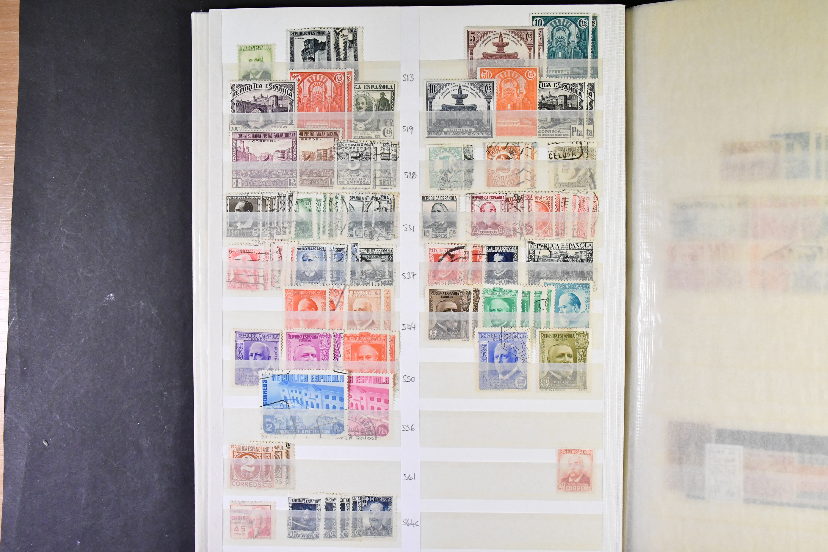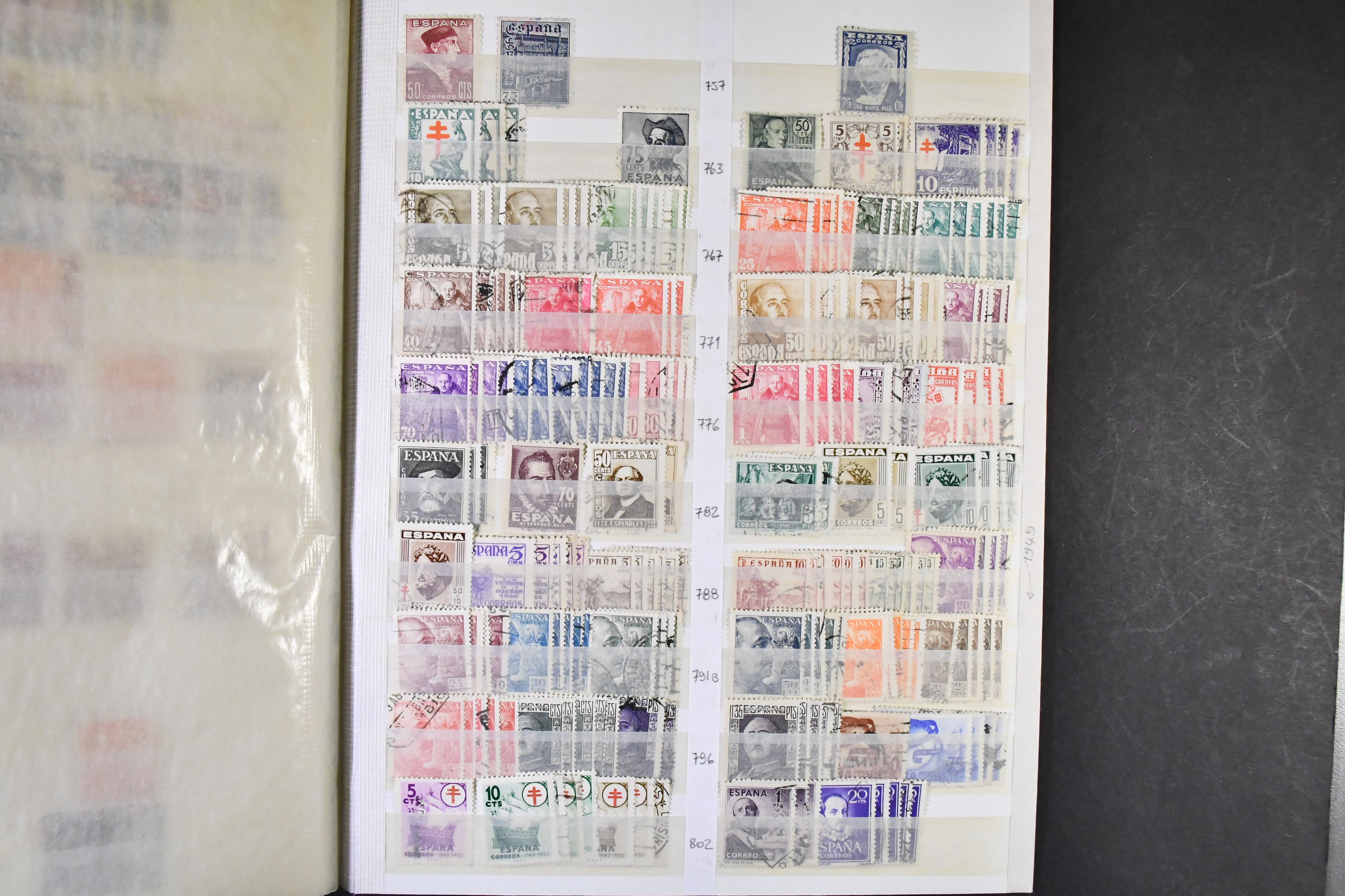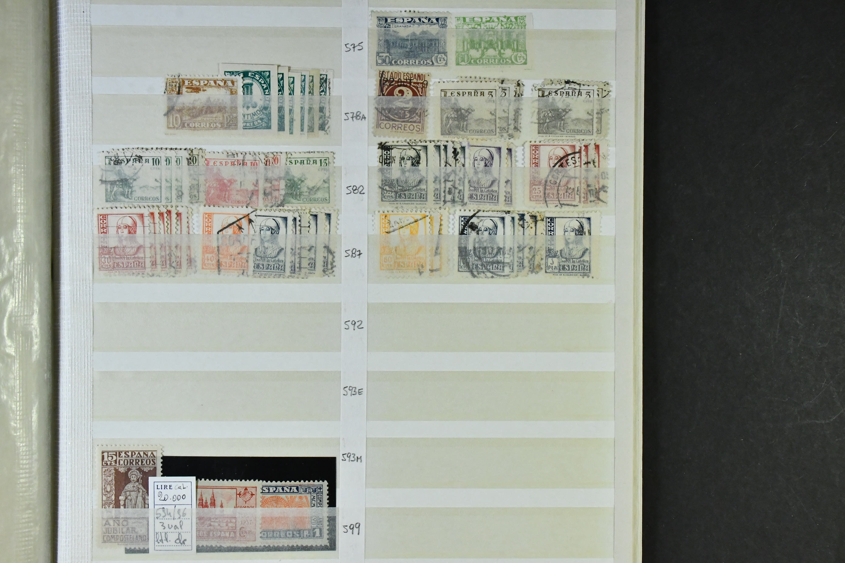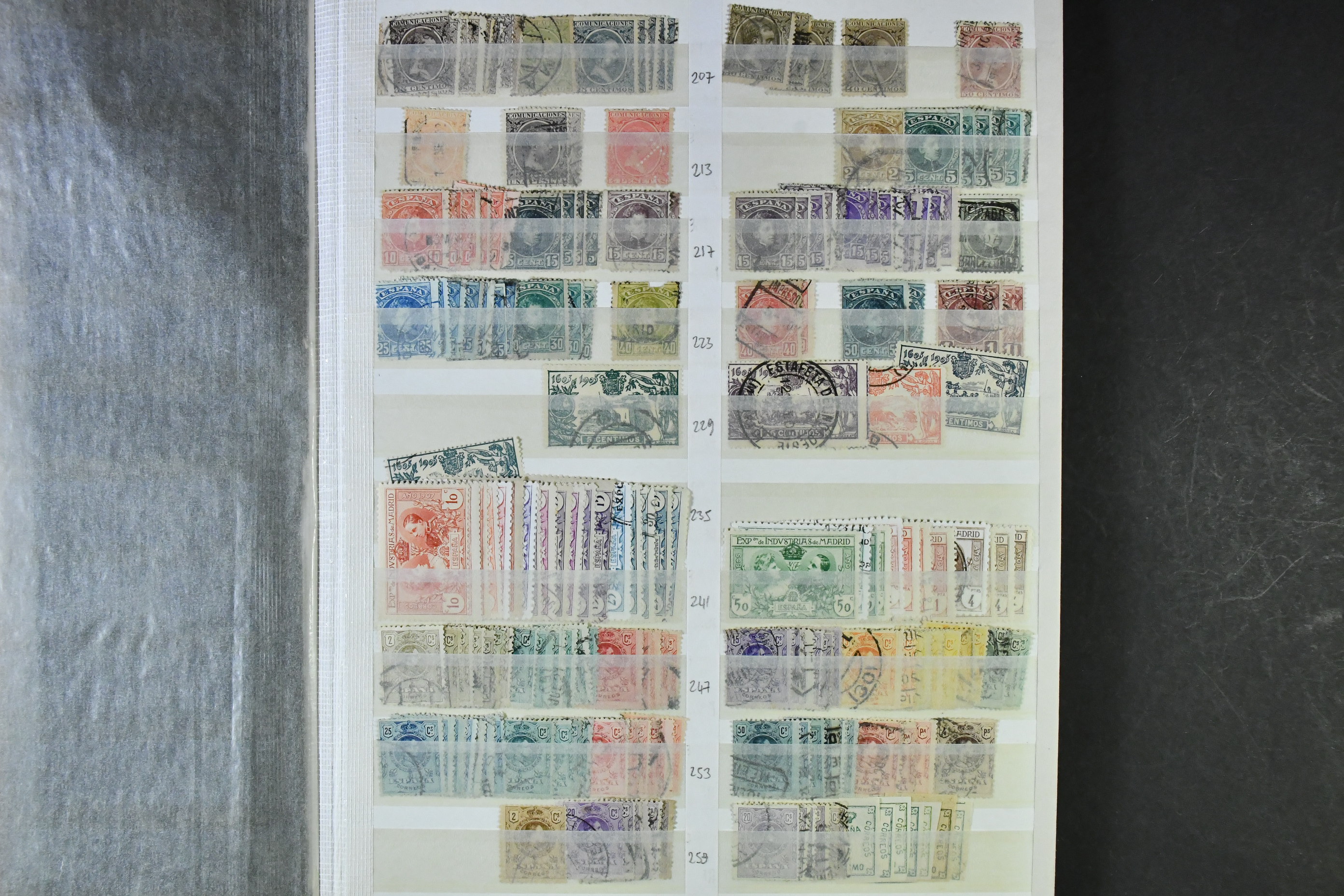 Spain. Accumulation ★★/★/⊙ 1850–1999 in large stockbook. Dealer remainder stock inclding a reasonable represented older section with better stamps, many modern in good variation and also some back of the book material. Much to go through. Fine quality.