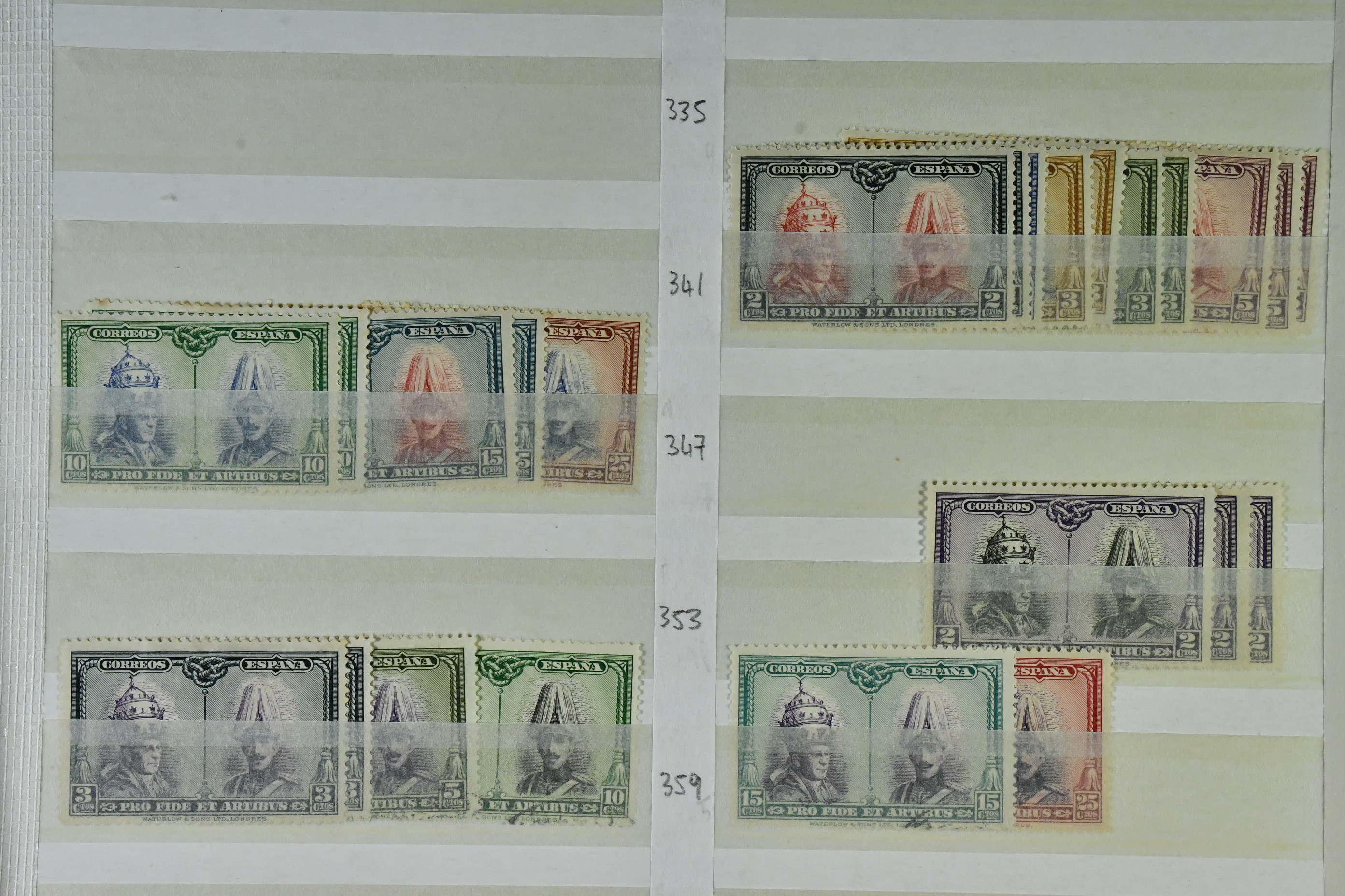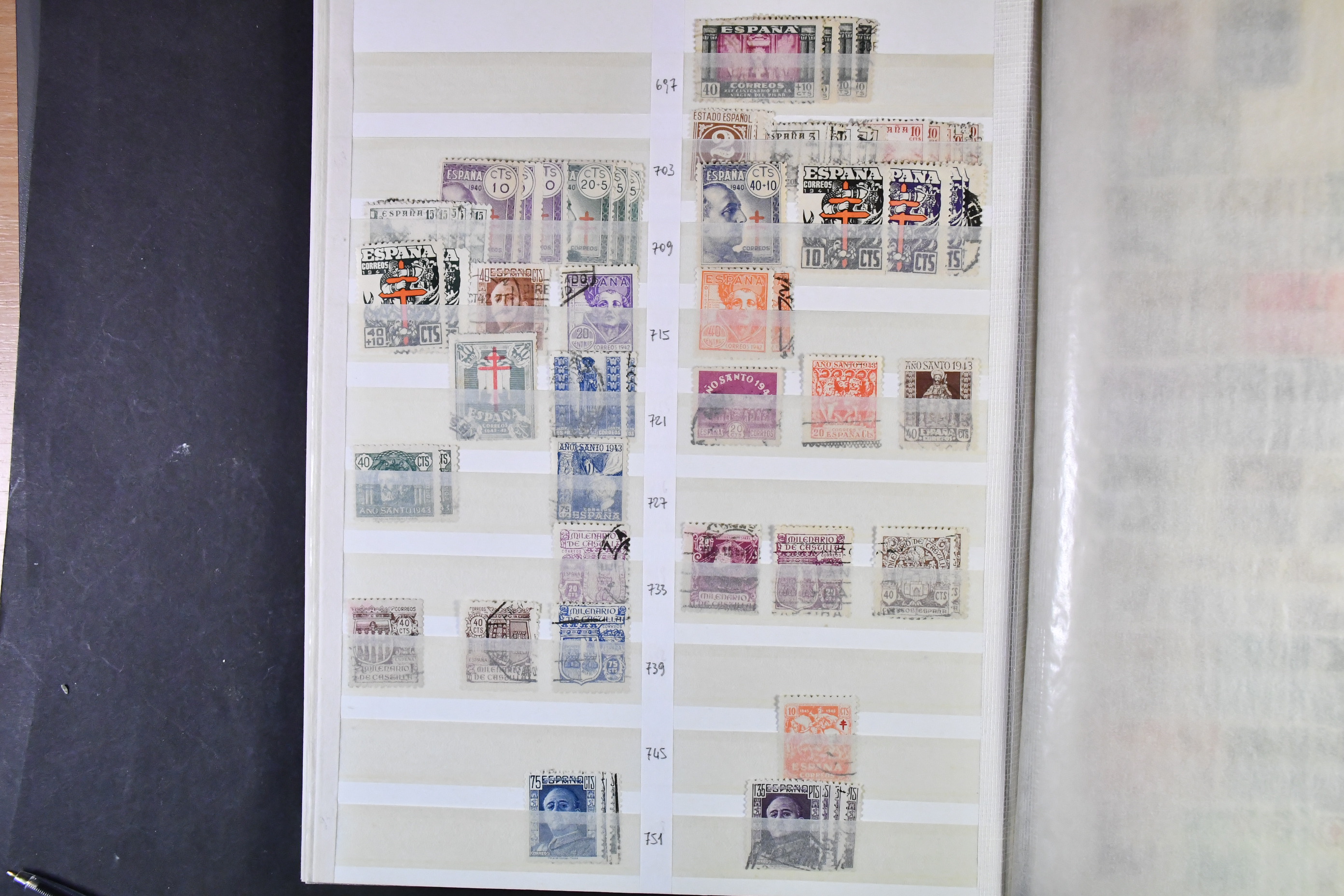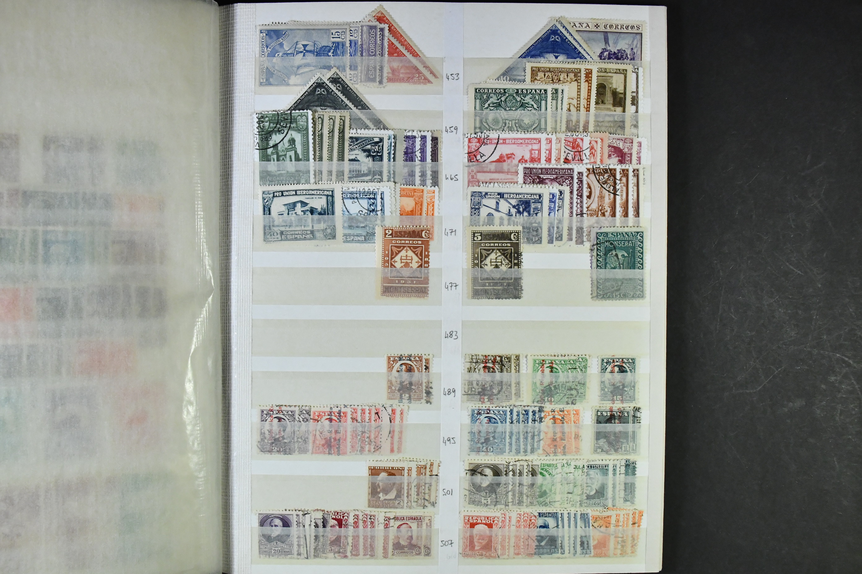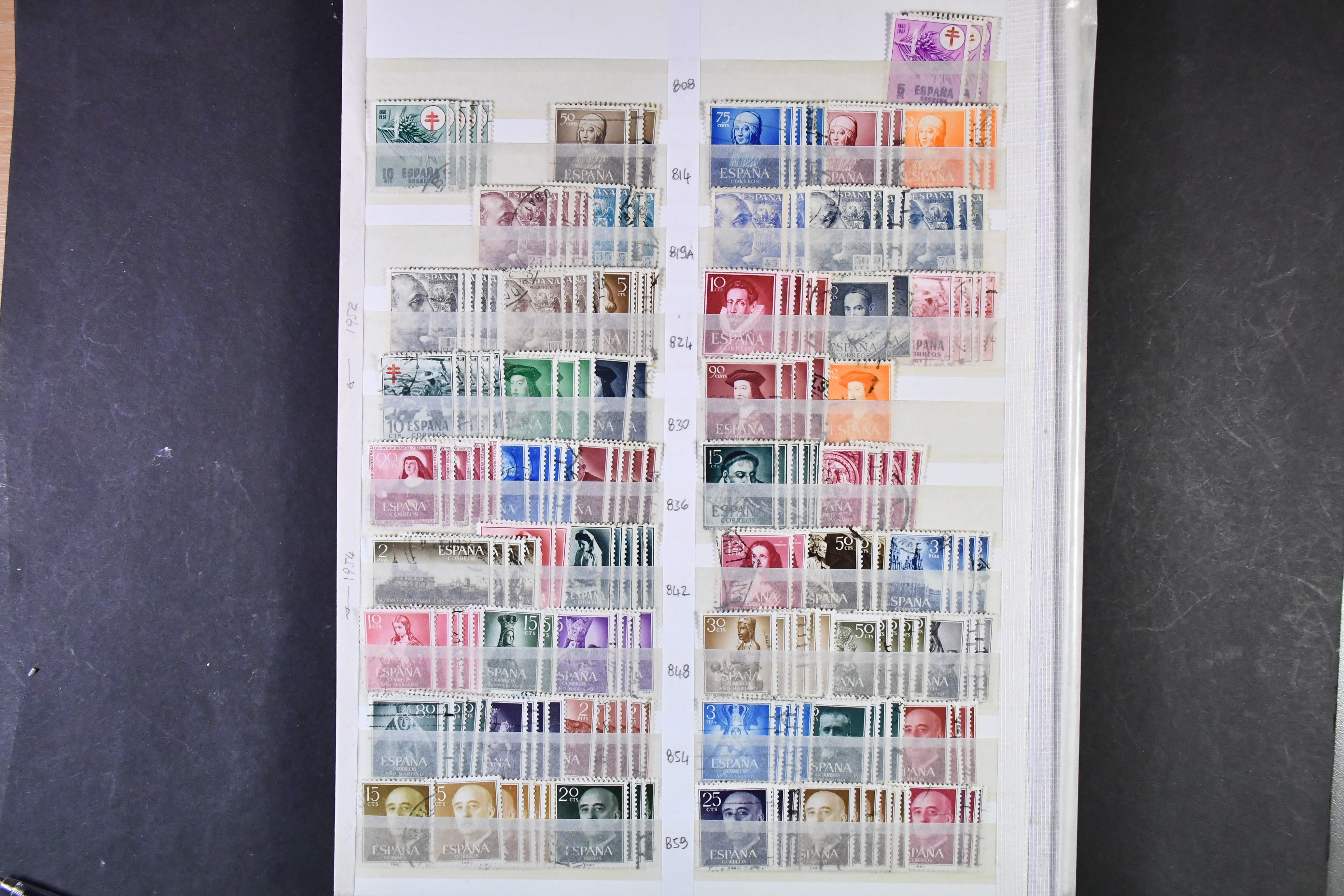 Spain. Accumulation ★★/★/⊙ 1850–1999 in large stockbook. Dealer remainder stock inclding a reasonable represented older section with better stamps, many modern in good variation and also some back of the book material. Much to go through. Fine quality.