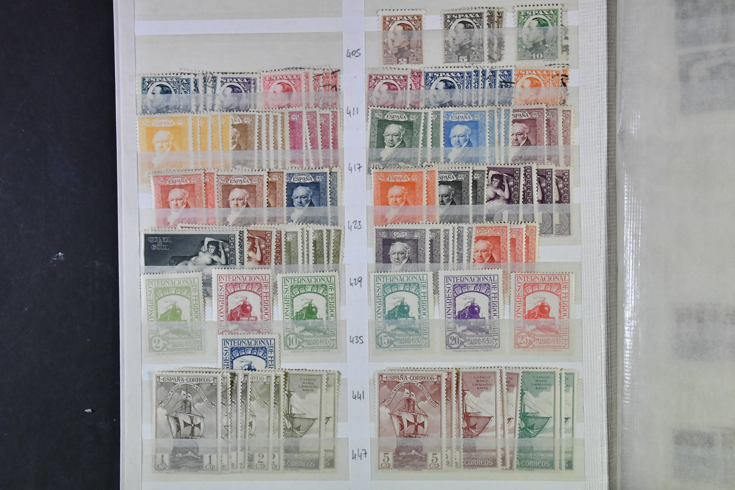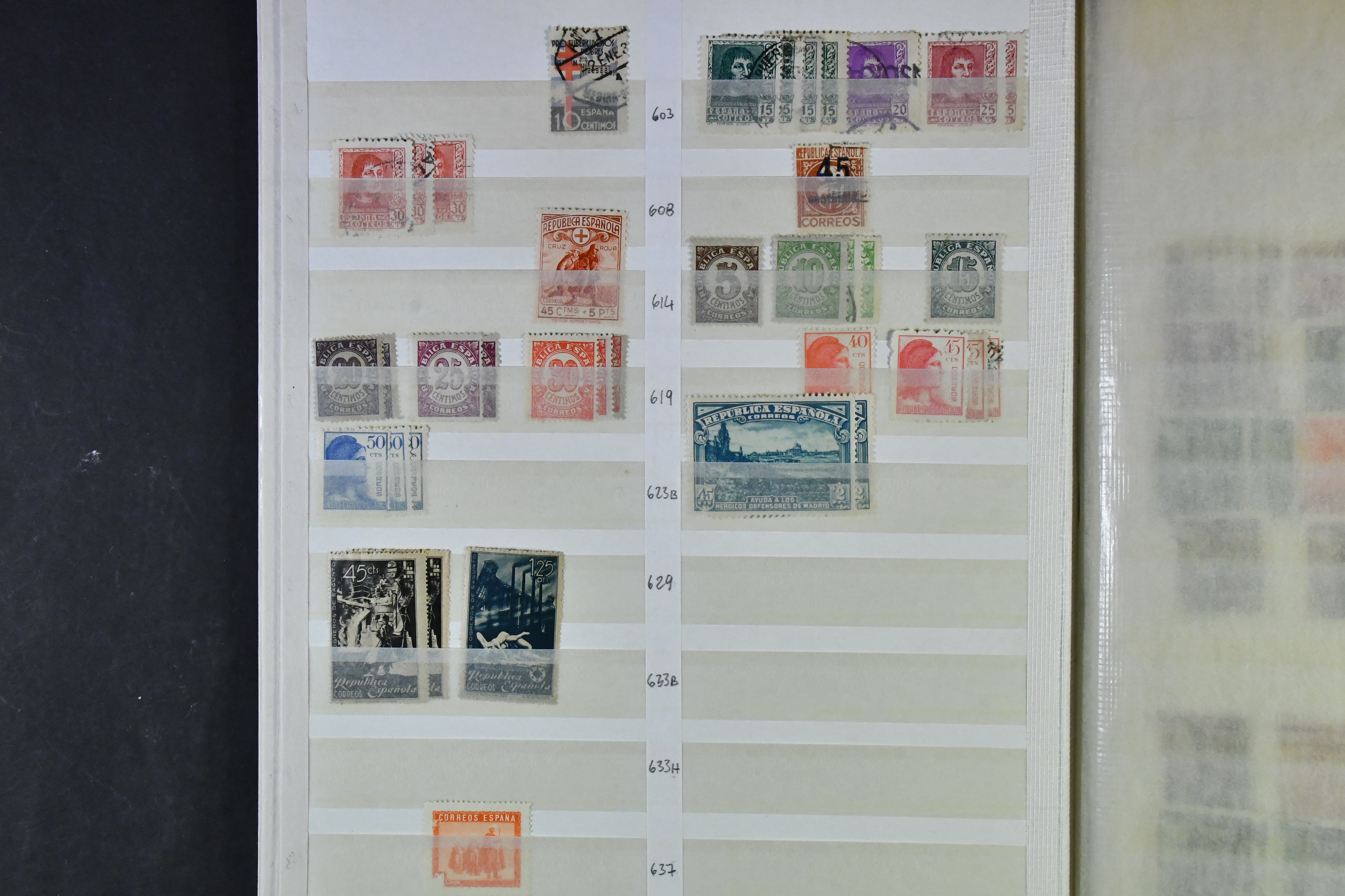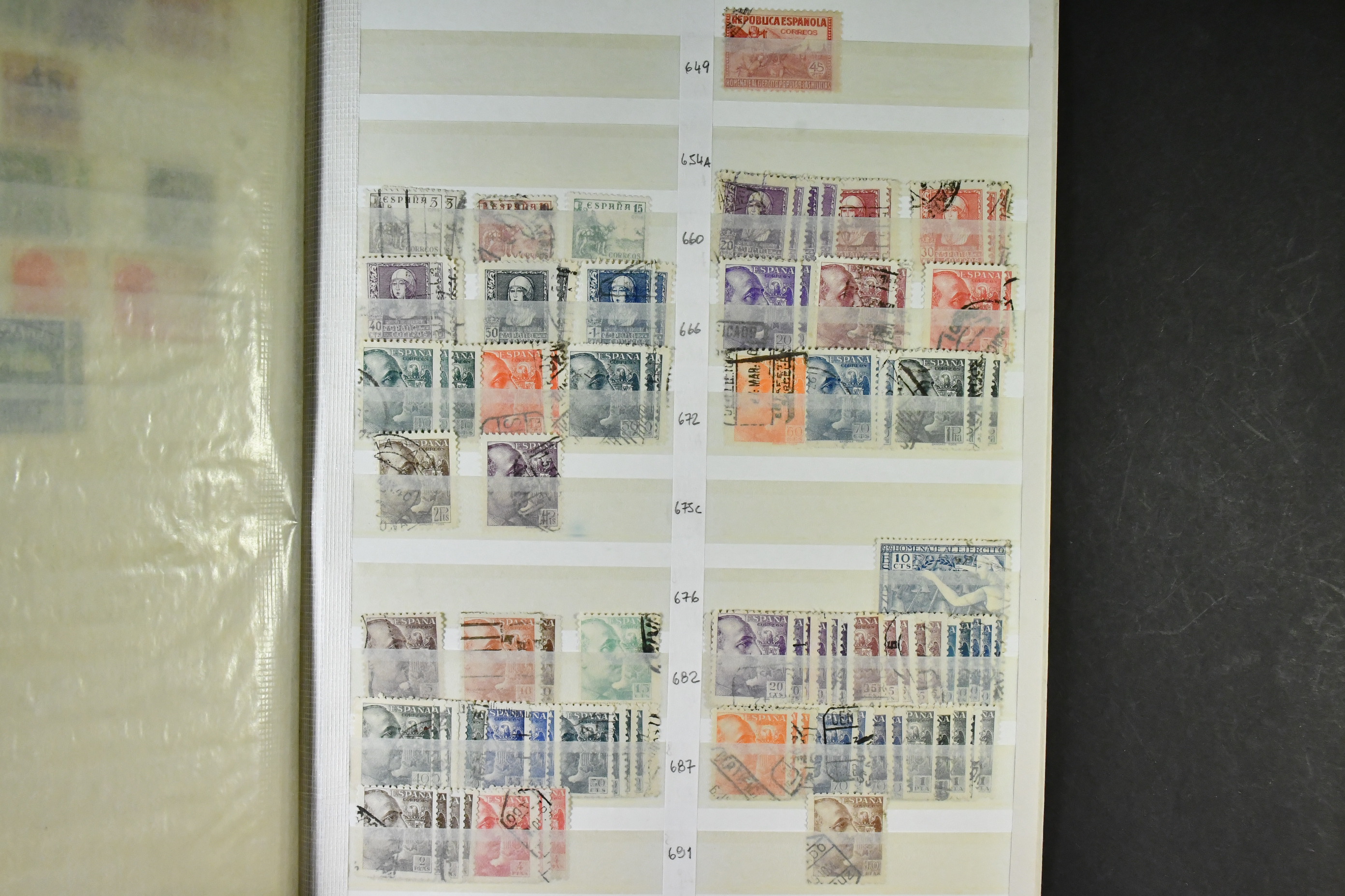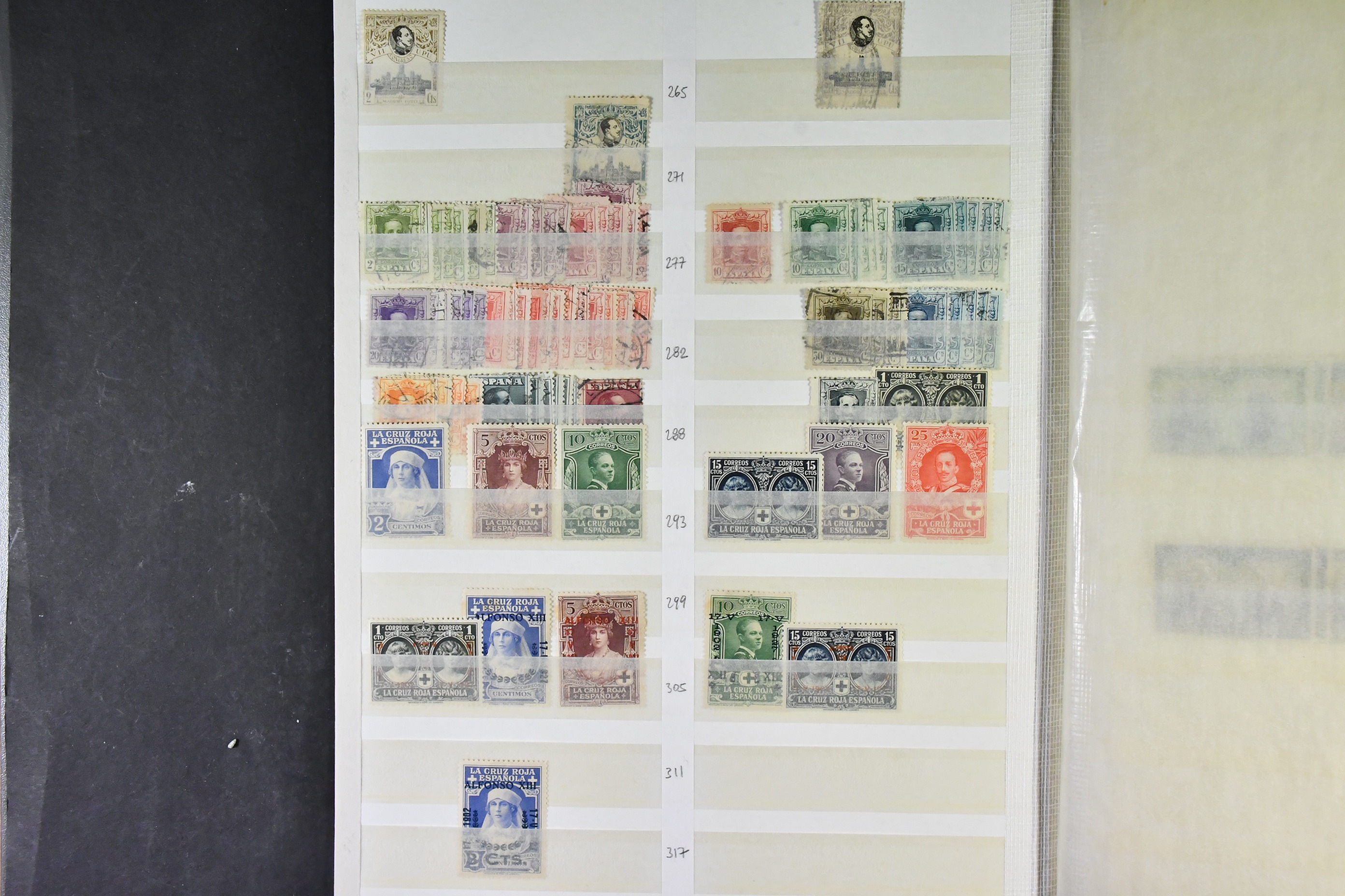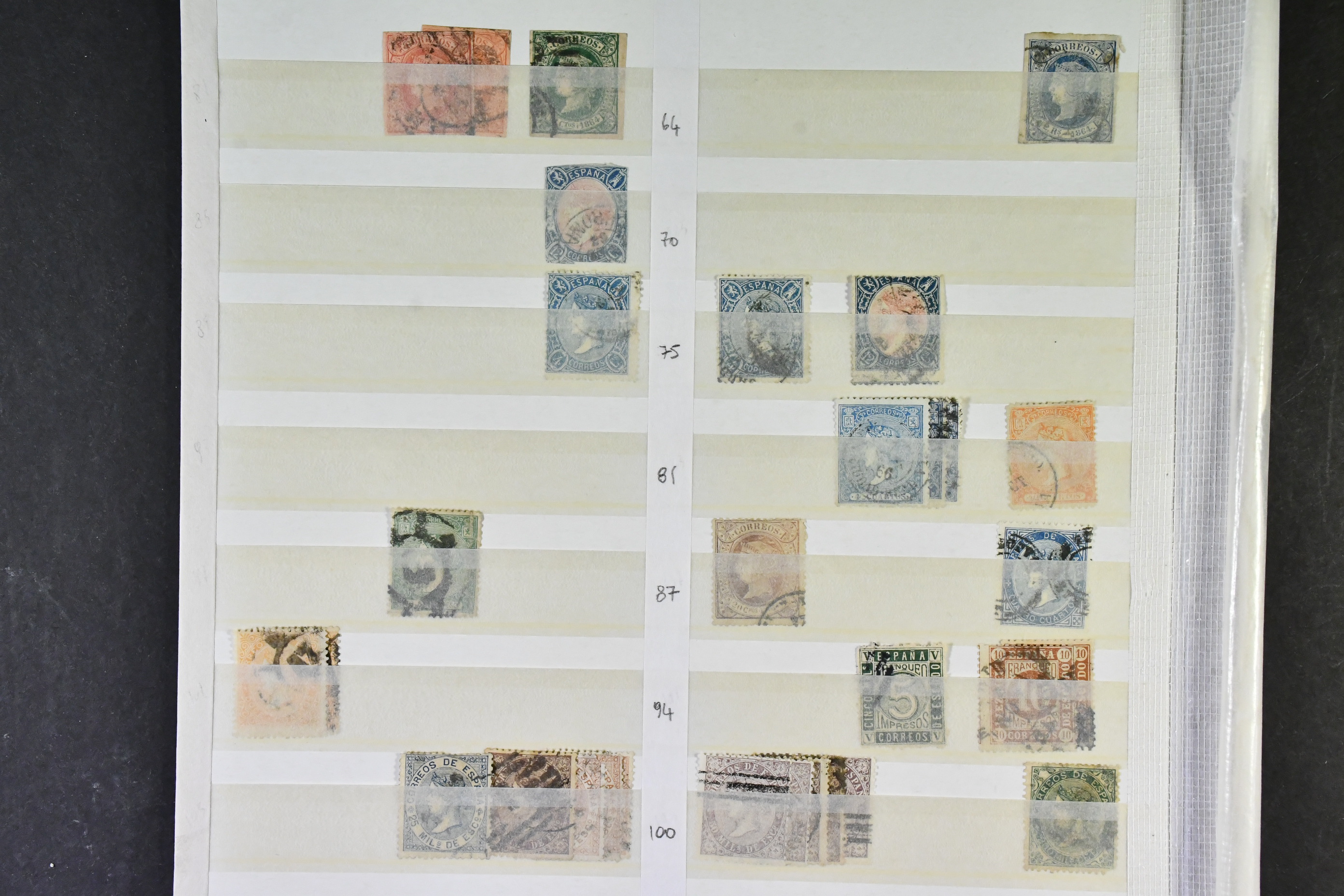 Spain. Accumulation ★★/★/⊙ 1850–1999 in large stockbook. Dealer remainder stock inclding a reasonable represented older section with better stamps, many modern in good variation and also some back of the book material. Much to go through. Fine quality.
