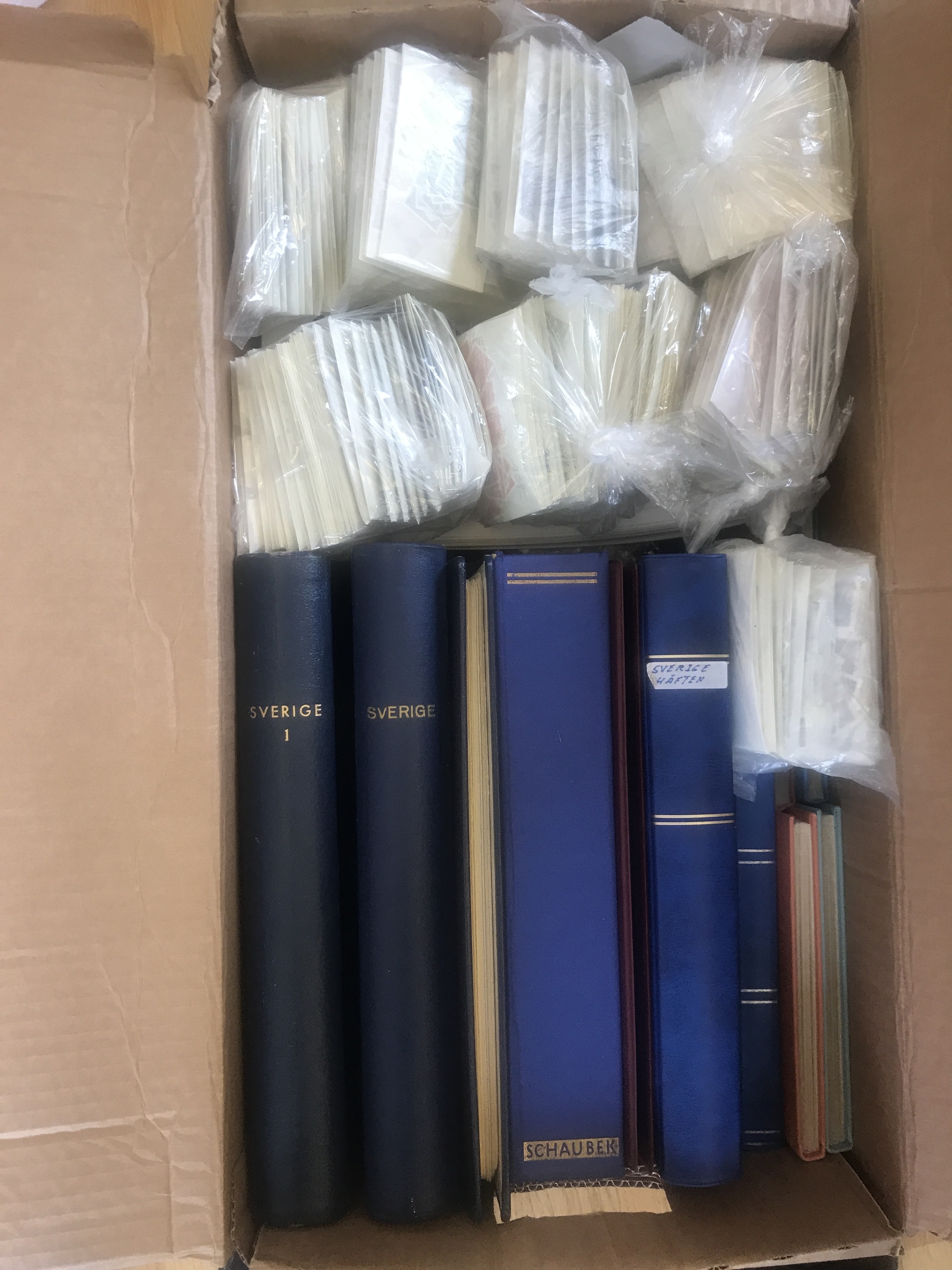 Sweden. Mostly used. Accumulation old–modern in 12 albums/binders+ 1000s of stamps in envelopes old–modern, some covers and cards, etc. Approx. 17 kg.