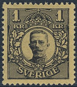 Sweden. Facit 96bz ★★, 1 Kr black with KPV. Superb. SEK 3000++