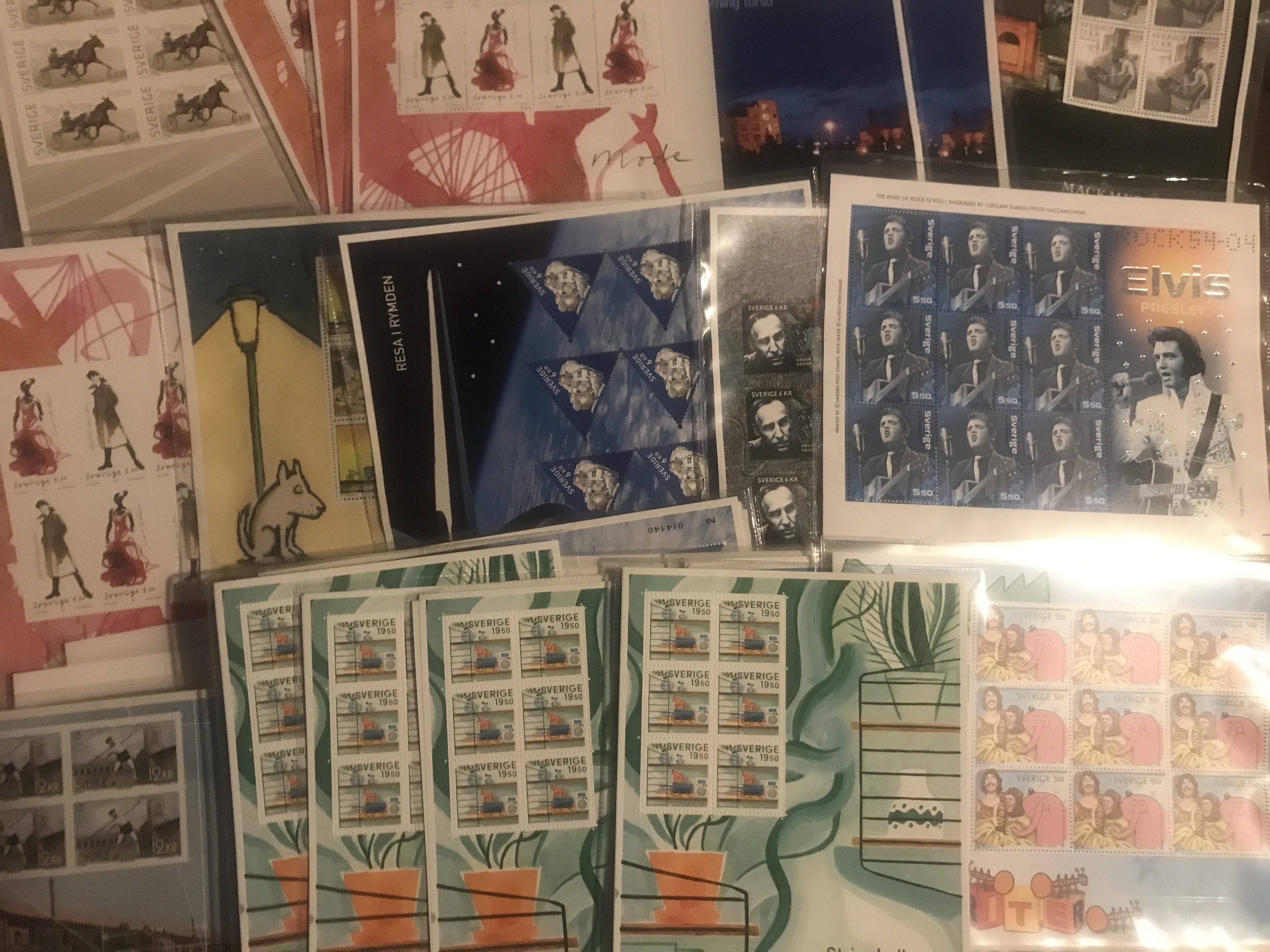 Sweden. Face value. 31 souvenir sheets (some without description), e.g. four SS33 Retro. Face value ca 1870.