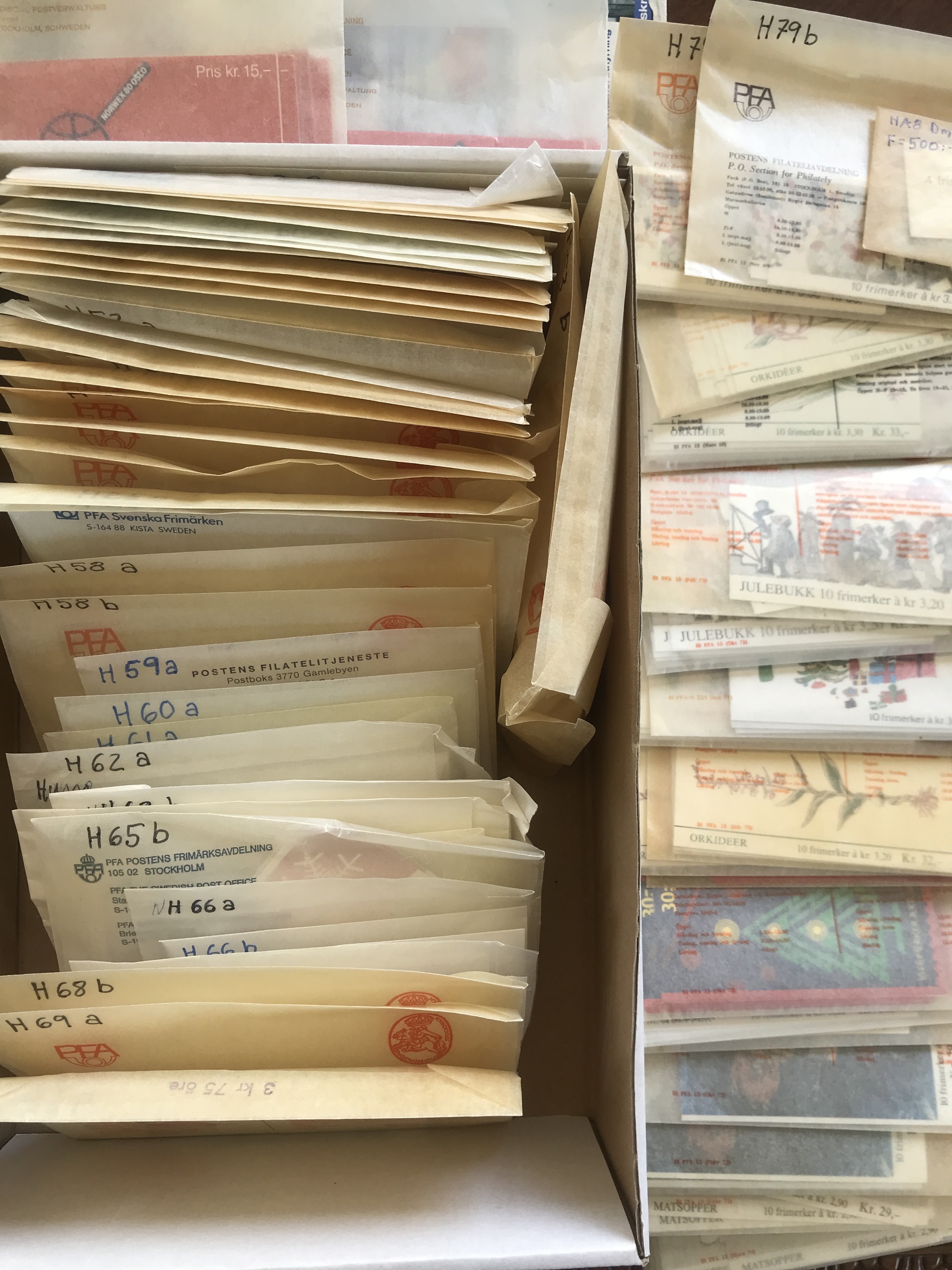 Norway. Booklets. Box with booklets H42–79 incl. all types a+b. Face value approx. 11500. Good quality.