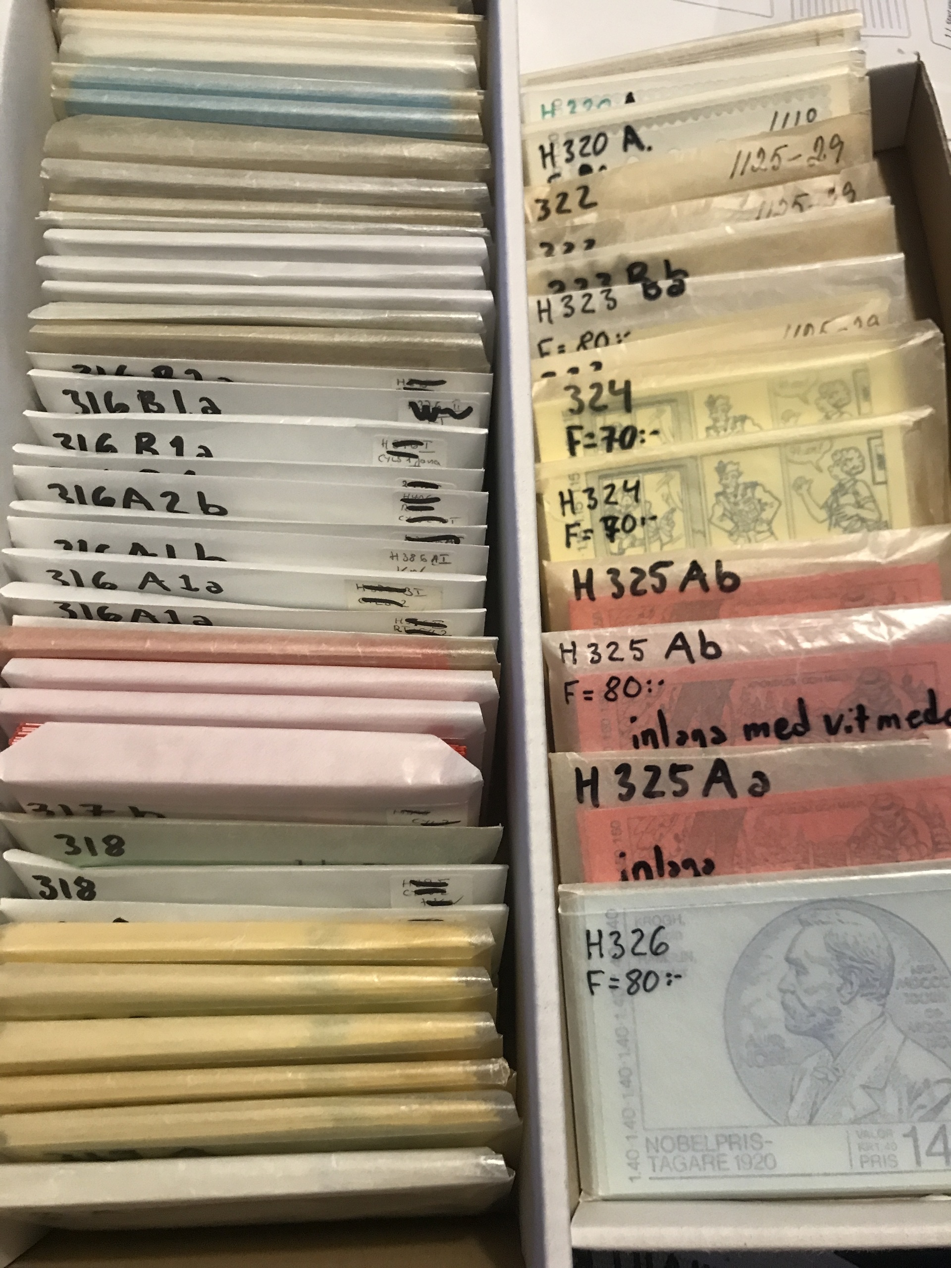 Sweden. Face value. Box with booklets sorted by types H311–326. Face value >5300.