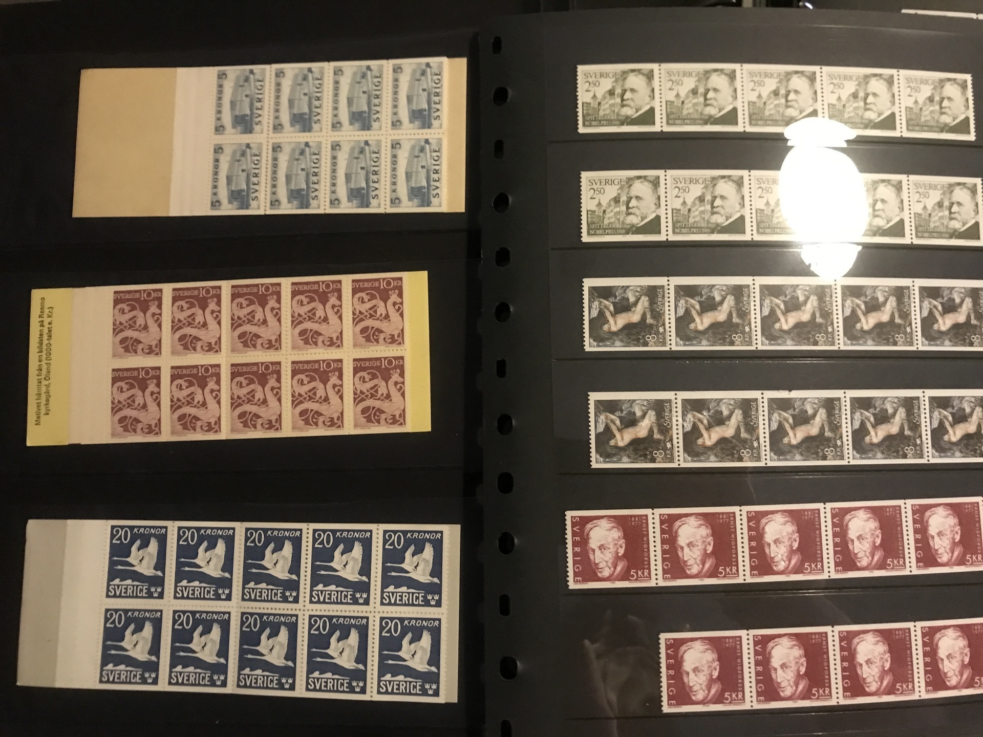 Sweden. Face value. Five albums/binders with stripes and booklets mostly 1950's–1980's, e.g. five discount booklets 1979–83. Face value ca 7350. Approx. 10 kg.