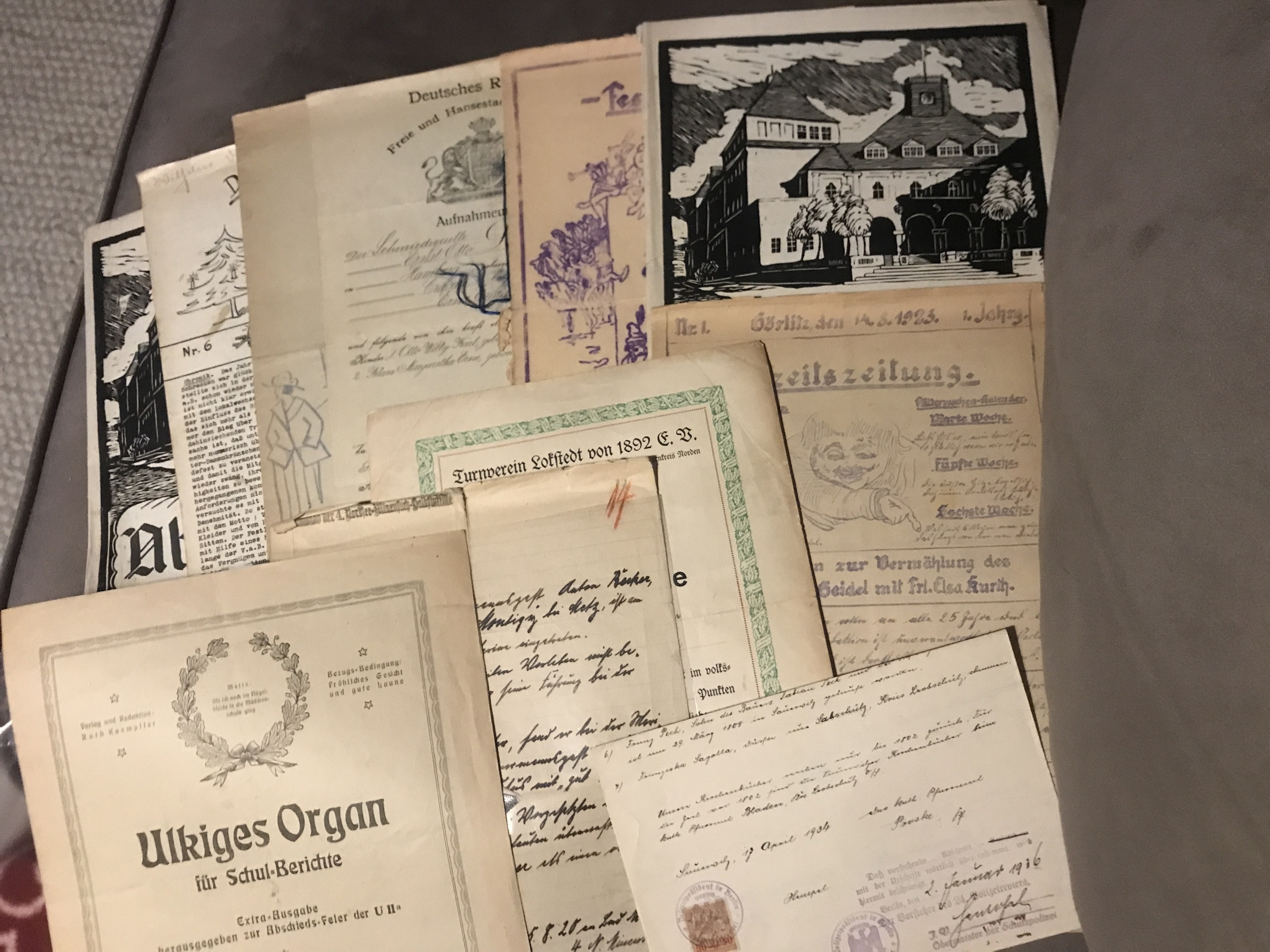 Documents, Germany. Lot with various documents ca 1920–1960 incl. some telegrams and two school atlases, etc. (45).